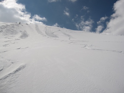 Les skis « fat » sont des skis souvent très sympas à skier. Leur portance élevée leur permet de se jouer de neiges potentiellement difficiles et en poudreuse c’est un régal. Vu qu’on enfonce moins, il n’est pas besoin d’aller chercher des pentes raides pour avancer et se faire plaisir, c’est un avantage par rapport aux skis plus étroits. En effet skier des pentes moins raides en hiver (en condition de neige poudreuse) est un plus pour la sécurité : moins de risque d’avalanche. A la montée, ils sont certes plus lourds, mais maintenant on voit apparaître des skis « fat » avec des poids très raisonnables. Montés en Low Tech, leur poids correspond sensiblement à des skis de randonnée plus classiques montés en Diamir. A la montée, on enfonce moins dans la poudreuse pour faire la trace. Bref ces skis ont beaucoup d’avantages. Gros plaisir à la descente pour pas tant d’inconvénients que ça à la montée.