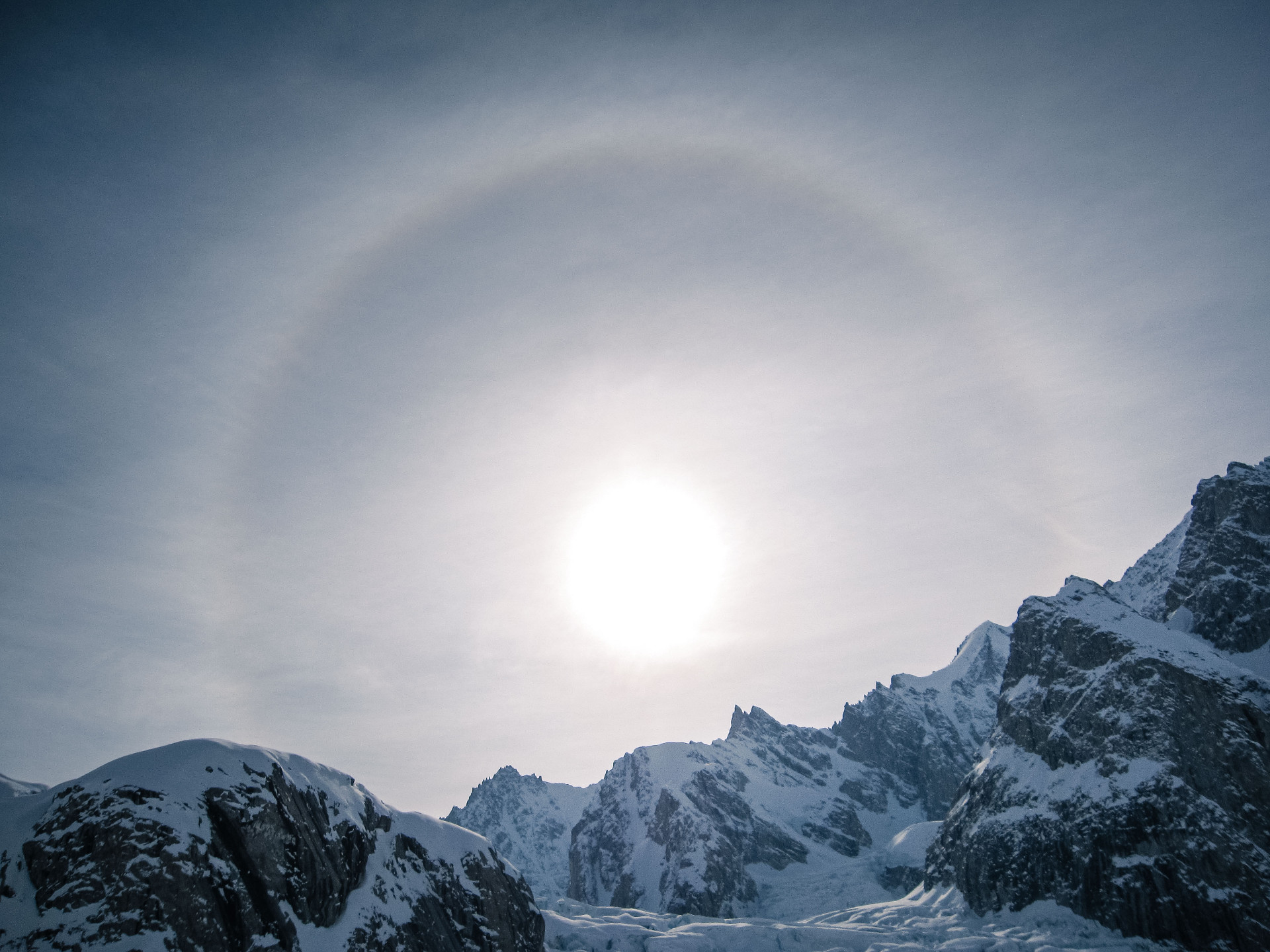 Le ciel est une source de contemplation infinie et variée. Il est impossible de s’en lasser. Outre les nuages et leurs formes improbables, disparates, on peut y observer de magnifiques phénomènes optiques, les photométéores. L’arc-en-ciel en fait partie, il est visible dès qu’un rideau de pluie est éclairé par le soleil ; on l’observe donc (tout comme les gloires et spectres de Brocken), dans la direction opposée au soleil (soleil dans le dos de l’observateur, arc-en-ciel devant). Les halos, eux, sont une famille de cercles et d’arcs de cercle lumineux que l’on observe dans la direction du soleil, autour de celui-ci. Ces halos sont plus discrets, leur aspect spectaculaire vient plutôt de leur relative rareté, du fait qu’il faut les connaître pour les apprécier à leur juste valeur. Ils sont plus fréquents quand il fait froid : les balades en montagne, l’hiver, sont assez propices à ces observations.