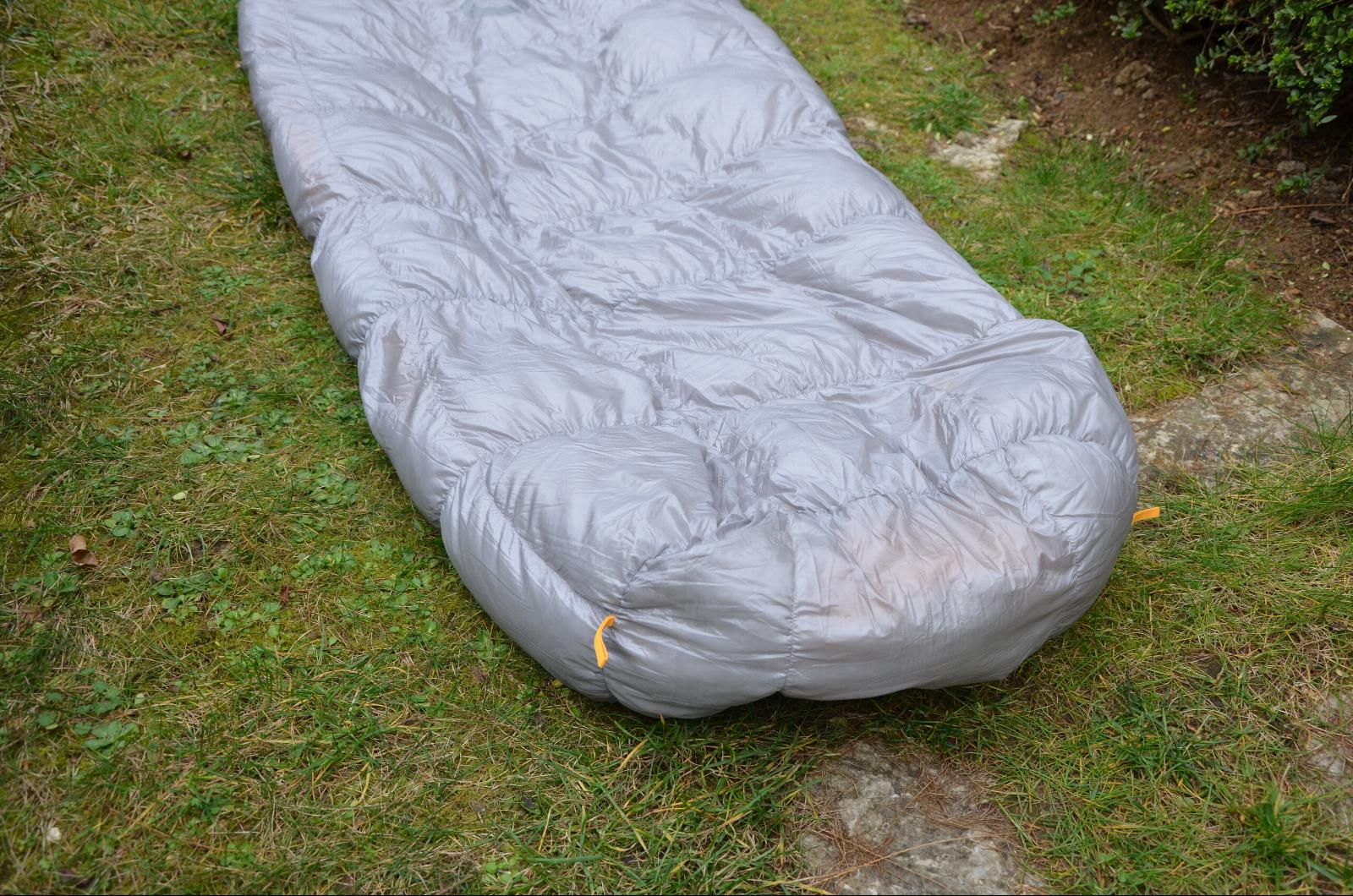 Sur la photo ci-dessus, on voit que les bords du quilt ne dépassent pas suffisamment sous le matelas pour éviter les fuites thermiques. D'autre part le footbox (zone fermée autour des pieds) n'est pas très profond (beaucoup moins que sur les autres quilts testés) : nous avons constaté quelques fuites thermiques à l'endroit où il s'ouvre.