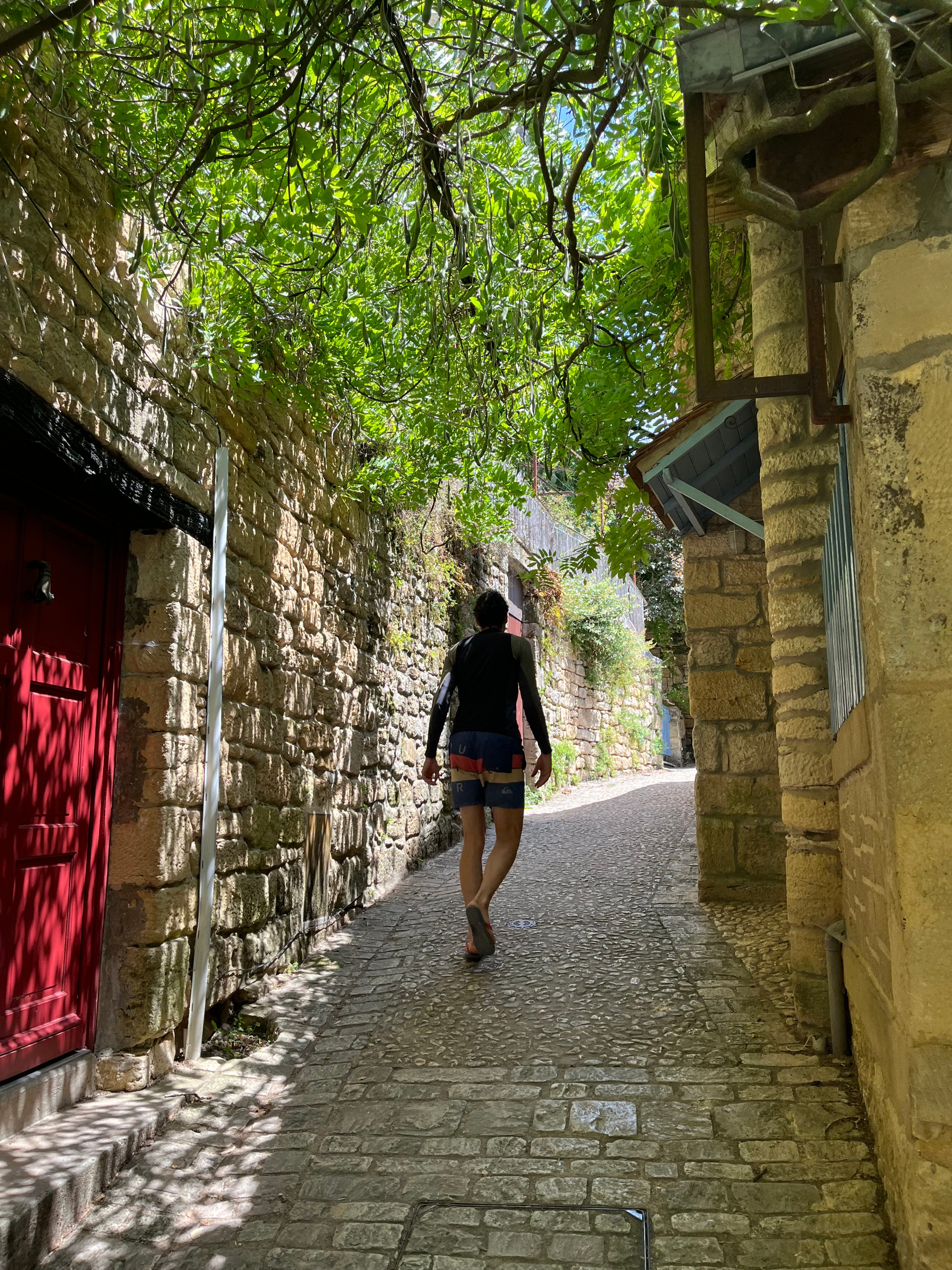 Il paraît que les plus belles aventures commencent tout près de chez soi. Avec Thibaut, nous avons voulu le vérifier, pagaie en main. En Corrèze, nous avons suivi la Dordogne, cette « rivière espérance », sur 140 km au fil de l’eau, du soleil et des rencontres. Le 1er juillet, la canicule s’installe dans les gorges, les quais d’Argentat brûlent au soleil, mais au club de canoë, c’est l’effervescence d’un début d’été prometteur. Notre embarcation, un canoë Old Town, est prête. Pieter, le moniteur, nous accompagne pour les premiers coups de pagaie. Il raconte la rivière comme on raconte une vieille amie : née sur les flancs du Sancy, apprivoisée par des barrages, et autrefois sillonnée par les gabariers qui descendaient le bois vers Bordeaux. Nous traversons le Malpas, un passage autrefois redouté, puis faisons halte au bord de l’eau pour écouter l’histoire de Jean Combe, braconnier devenu héros en 1789. Le soir, nous installons notre bivouac à Beaulieu, dont le reflet dans l’eau semble irréel. Puis la Dordogne s’élargit, la vallée s’ouvre. Quelques jeunes du coin se jettent à l’eau depuis des lianes accrochées aux arbres, rappelant la joie simple des jeux d’été au bord de la rivière. Plus loin, à Carennac, les ruelles dorées du village nous accueillent pour une nuit paisible au pied du bourg. Quand le soleil se lève sur les galets blancs, nous savons que 40 km nous attendent jusqu’à Souillac. La rivière est calme, presque méditative. Les hérons nous observent, les pêcheurs à la mouche patientent sur la berge. Le soir, sur une île déserte, nous montons la tente au son des crapauds. Le lendemain, on change de décor, encore. Les falaises s’élèvent, les châteaux apparaissent : La Treyne, Montfort, accrochés à la roche comme suspendus dans le temps, accueillant notre dernier bivouac sous un ciel d’encre. Cinquième et dernier jour, nous croisons les « Dragon Ladies » de Toulouse, pagayant avec courage avant de conclure cette longue balade à Beynac, majestueux village, gardien de la vallée. L’aventure s’achève ici, mais la rivière, elle, continue vers l’océan. Nous remontons vers la source, le cœur rempli de lumière. La Dordogne nous a offert bien plus qu’un voyage : une leçon de lenteur, de beauté et de liberté.