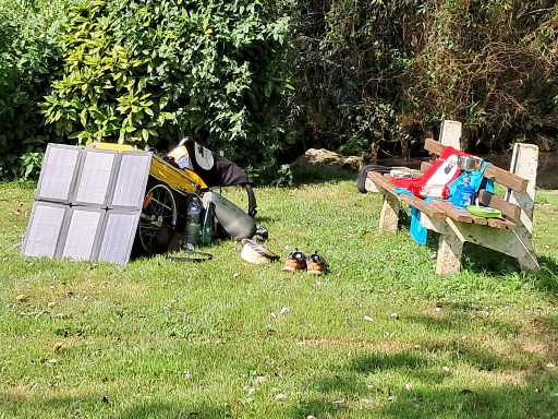 Sur 52 jours de traversée, j’ai dormi 52 nuits sous tente, essentiellement en bivouac. C’est ce qui s’appelle se jeter dans le grand bain pour quelqu’un qui n’avait jamais campé ! Partant de zéro, la progression a été fulgurante jusqu’à être complètement à l’aise avec ça. Dans le Nord, j'ai souvent planté ma tente dans des champs, puis je suis allé de plus en plus en forêt, mais surtout aussi sur les terrains communaux ouverts : stade, aire de pique-nique ou de camping-car, base de loisir, lac… Je n'ai jamais eu de problème, au contraire, certaines personnes me proposaient même de m'héberger, ce que j'ai toujours refusé, étant plus libre et à l'aise seul dans ma tente. Ce que je n’ai pas refusé en revanche, c’est l’aide de Didier, un homme rencontré dans un village en Occitanie. Après quarante jours de marche, le harnais de mon chariot a cassé et il me l'a gentiment réparé. Sans lui, je n'aurais pas pu réaliser les trois cents derniers kilomètres qu’il me restait jusqu'à Lamanère, village le plus au sud de la France. Les habitants m'y ont accueilli merveilleusement bien, avec champagne s’il vous plaît ! Ils m'ont aussi offert le gîte, le couvert, et la médaille du village.
