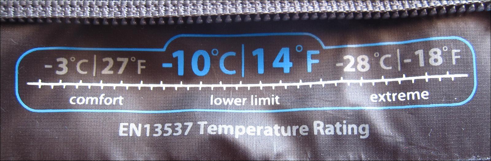 Les fabricants qui extrapolent des résultats de la norme devraient d’ailleurs indiquer une mention de type « en accord avec la norme EN 13537 » (Ref6), mais peu le font, et au contraire, seul le sac Exped Lite 900 de notre test est indiqué « en accord avec » alors qu’il est réellement testé EN 13537.