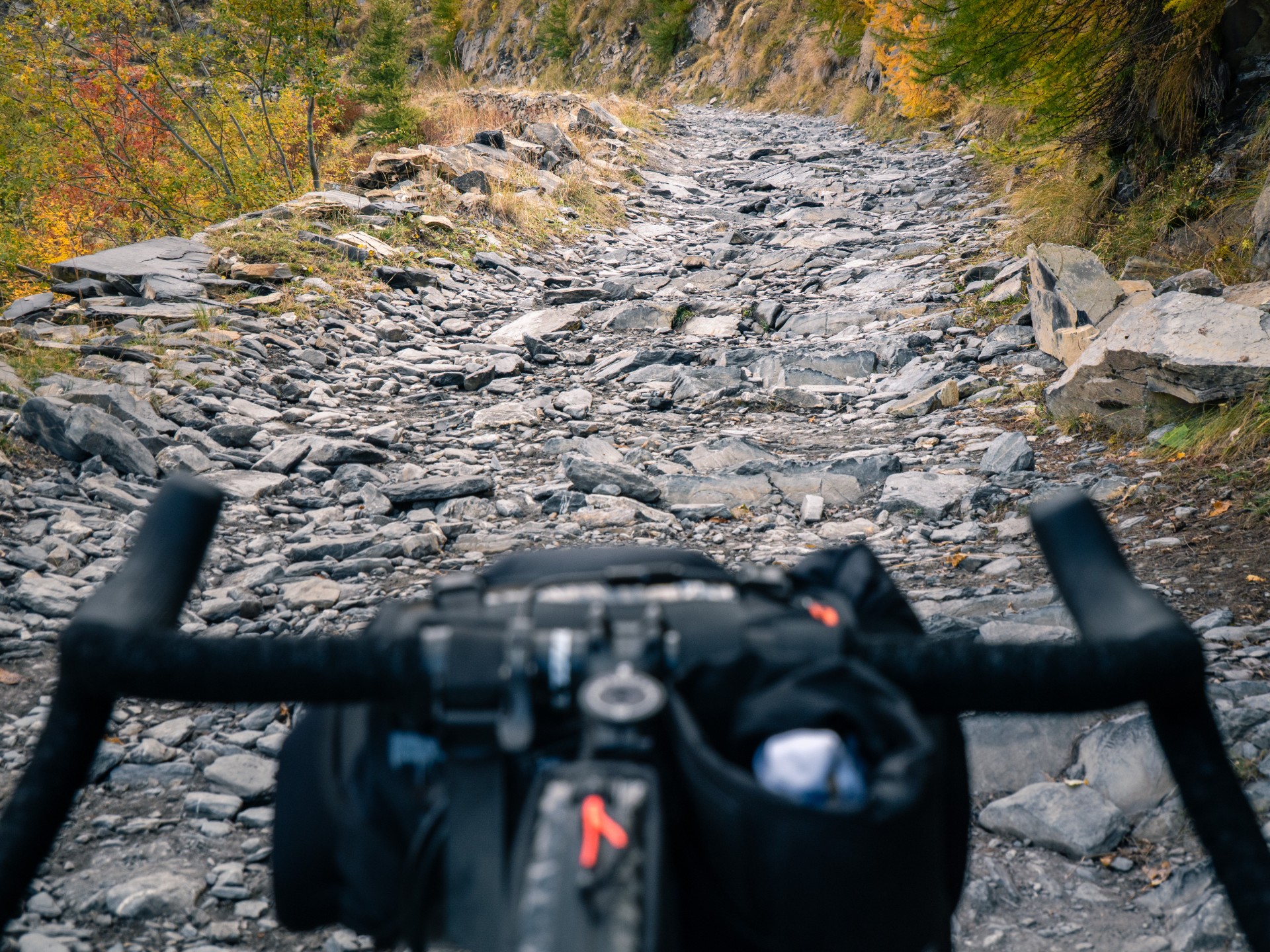 Il fallait valider ça grandeur nature. Direction les Alpes du Sud. Le programme ? Libre. J'avais repéré quelques pistes, mais je voulais laisser l’humeur décider, et le vélo faire le reste. Mais dès qu'une piste se présentait, j'avais l'impression qu'il me suppliait d'y aller. Résultat : des journées (très) majoritairement hors des routes, dont plusieurs sections sur un gravier frôlant la catégorie 5 – sur l'échelle de Richter du gravel, de 1 (l'allée de château) à 5 (le lit de rivière asséché). Quand le topo-guide disait : « Attention, section typée VTT, beaucoup de cailloux, on est sur les freins », j'y allais avec sérénité. Était-ce une sinécure ? Non. Mais ce n'était pas un calvaire non plus.