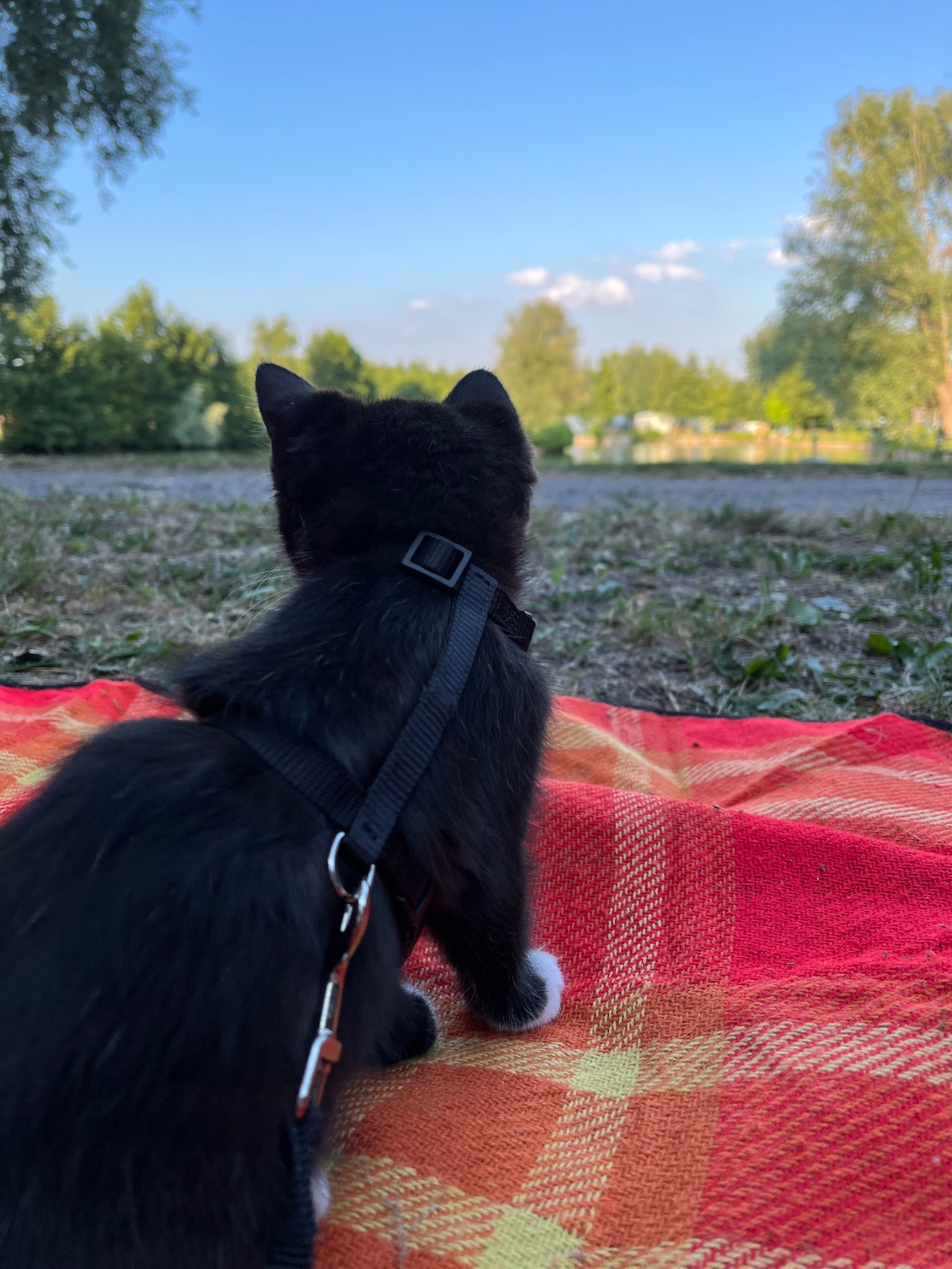 Kira nous a fait une frayeur. En revenant du brossage de dents, plus de Kira… on l’appelle. On entend un miaulement et Augustin l’aperçoit en haut d’un arbre… elle ne peut plus descendre, elle est coincée à cause de sa laisse … Mission ninja 🥷🏼 / mowgly de la forêt activée ! Le sauvetage se passe bien. Kira a les pattes sur terre. On laissera juste une guirlande dans l’arbre, histoire de se remémorer une prochaine fois cette anecdote.