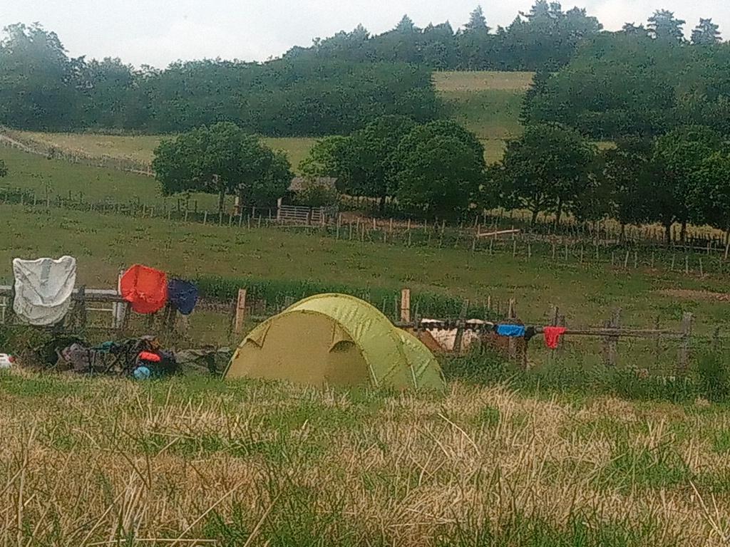 Réveil humide près de la ferme du Futeau. Nous avions mis nos vêtements à l'abri dans la tente. Donc pas de catastrophe.. La tente est au top.