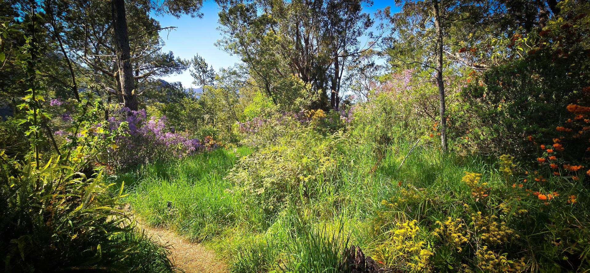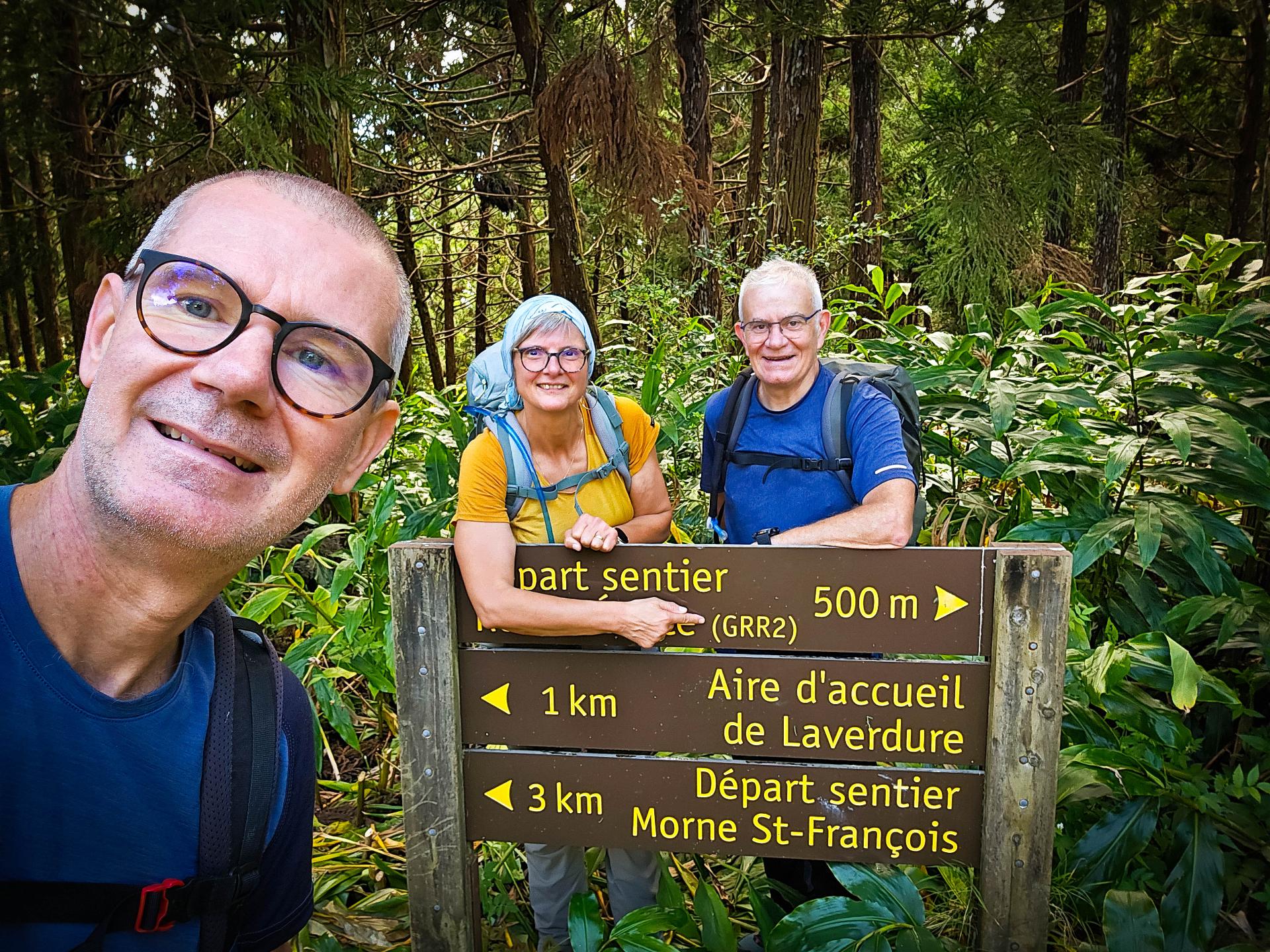 Pour cette étape, on triche un peu: nous avons fait le choix de la raccourcir. En effet, normalement le GR commence à la Providence, proche du centre de St Denis. Mais cela ferait une très grosse étape avec 17km presque 1600m de dénivelée: un peu trop pour nous pour la première étape. D'autant qu'il semblerait qu'il y ait de longues portions de routes. Sur ce point, nous apprendrons plus tard qu'en fait il y a moyen d'éviter la route avec un chemin en parallèle. Donc nous prenons un bus (dans le mauvaise sens) jusqu'au Brulé. Suite à un éboulement de la chaussée, le bus ne peut pas aller jusqu’au départ. Nous marchons donc 3 km pour atteindre le début de notre première étape.