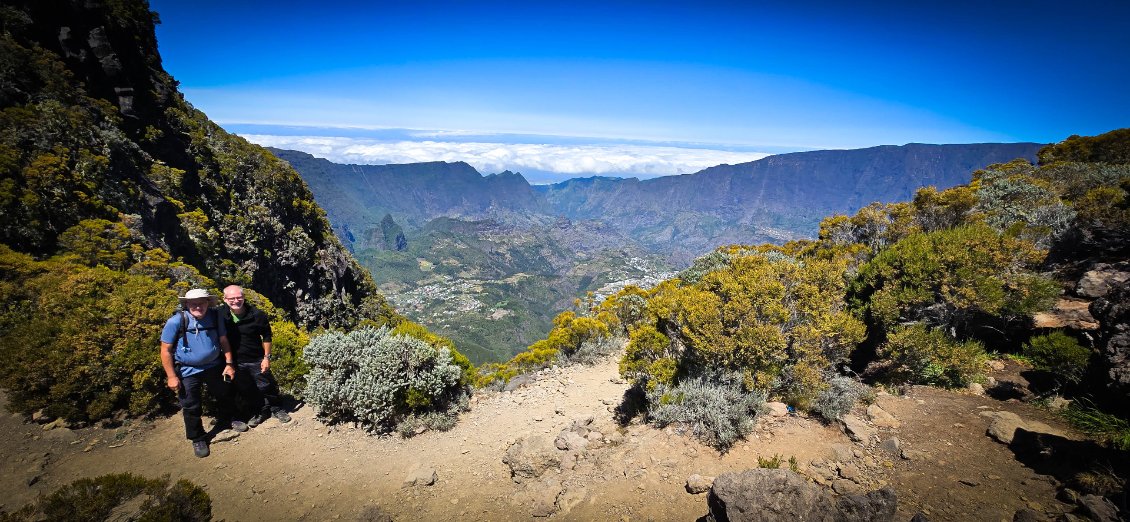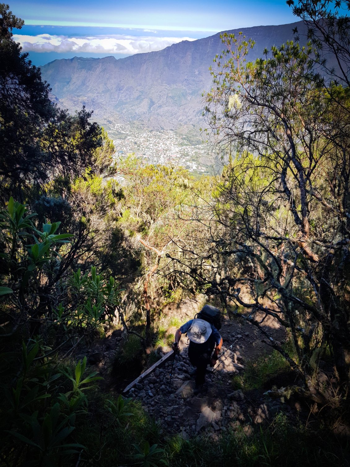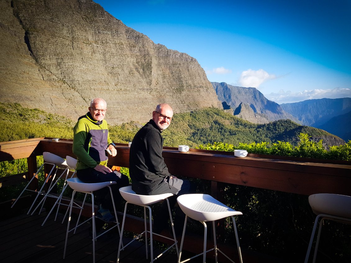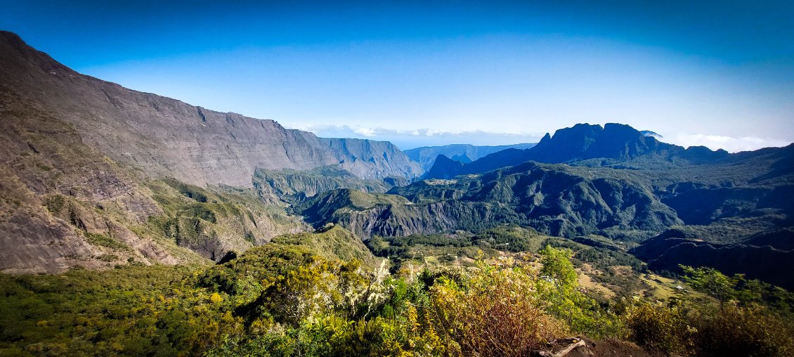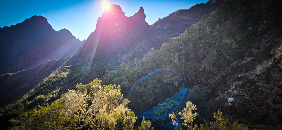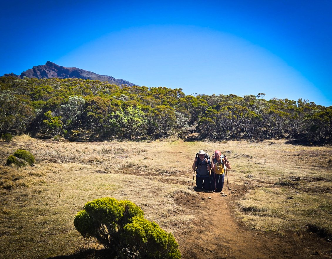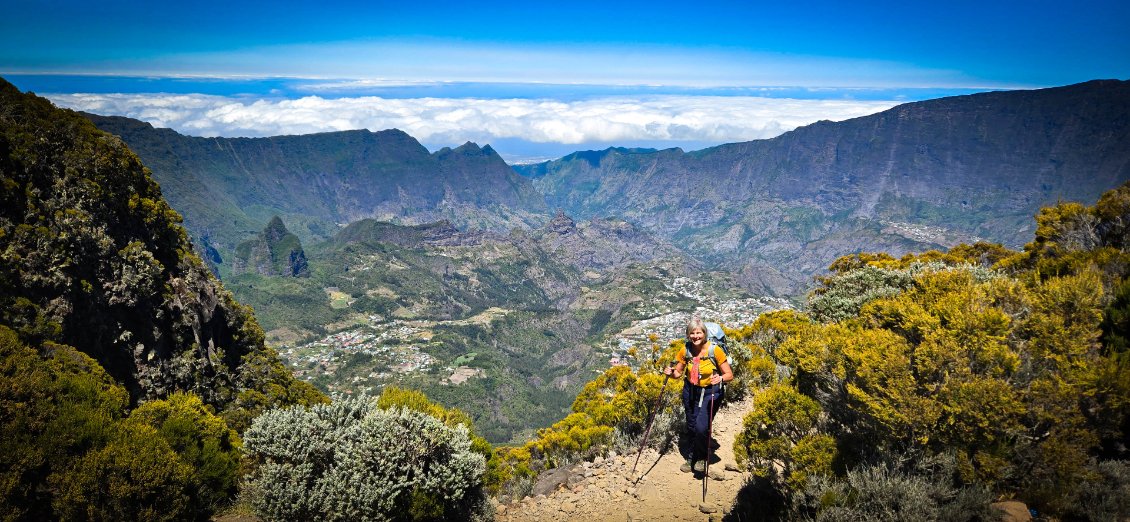 L'étape du jour nous fait quitter cet endroit magnifique qu'est le cirque de Mafate. Dans ce cirque, on aura vraiment vu des choses extraordinaires et, le moins que l’on puisse dire, c’est qu’elles se méritent. Les montées mais également les descentes sont abruptes et éprouvent nos petits corps.