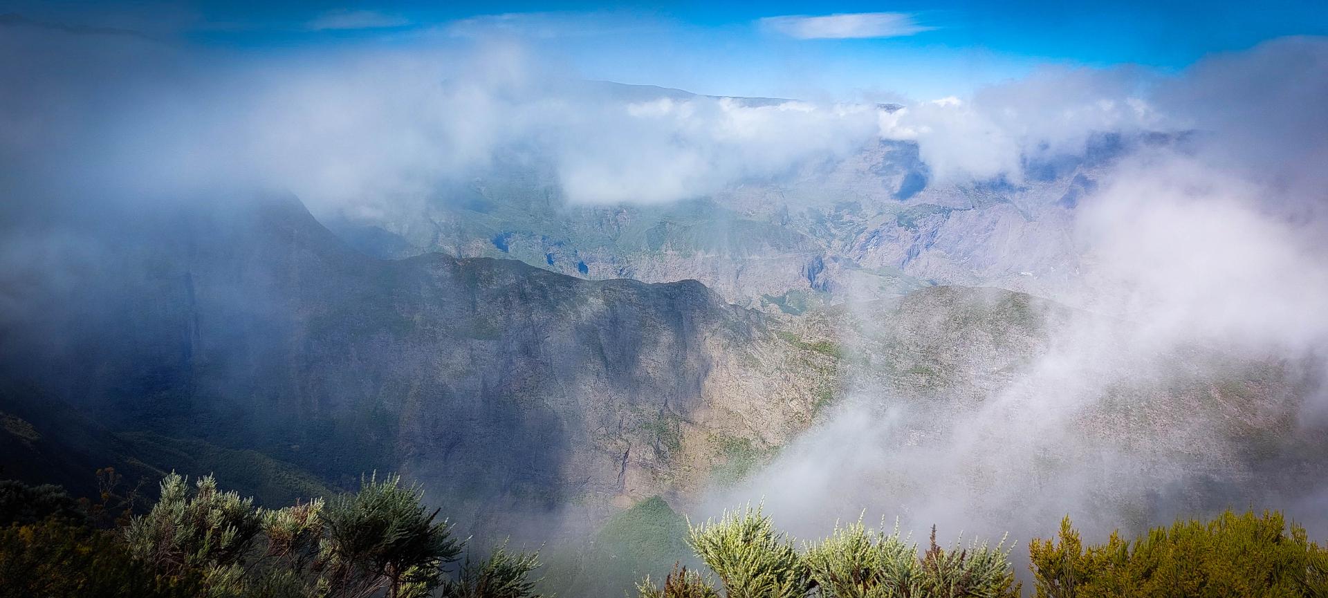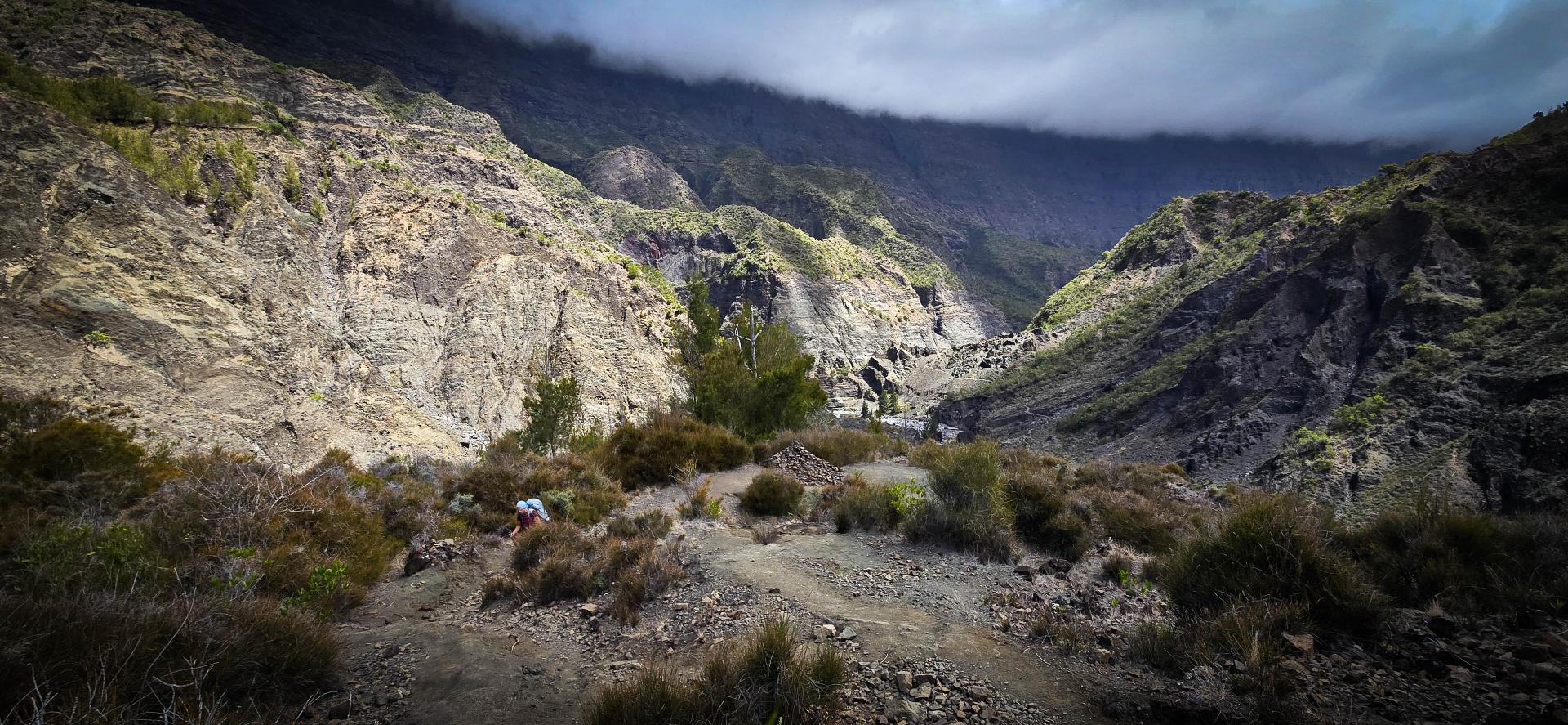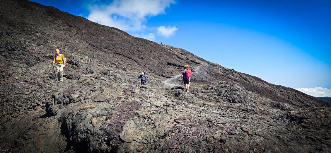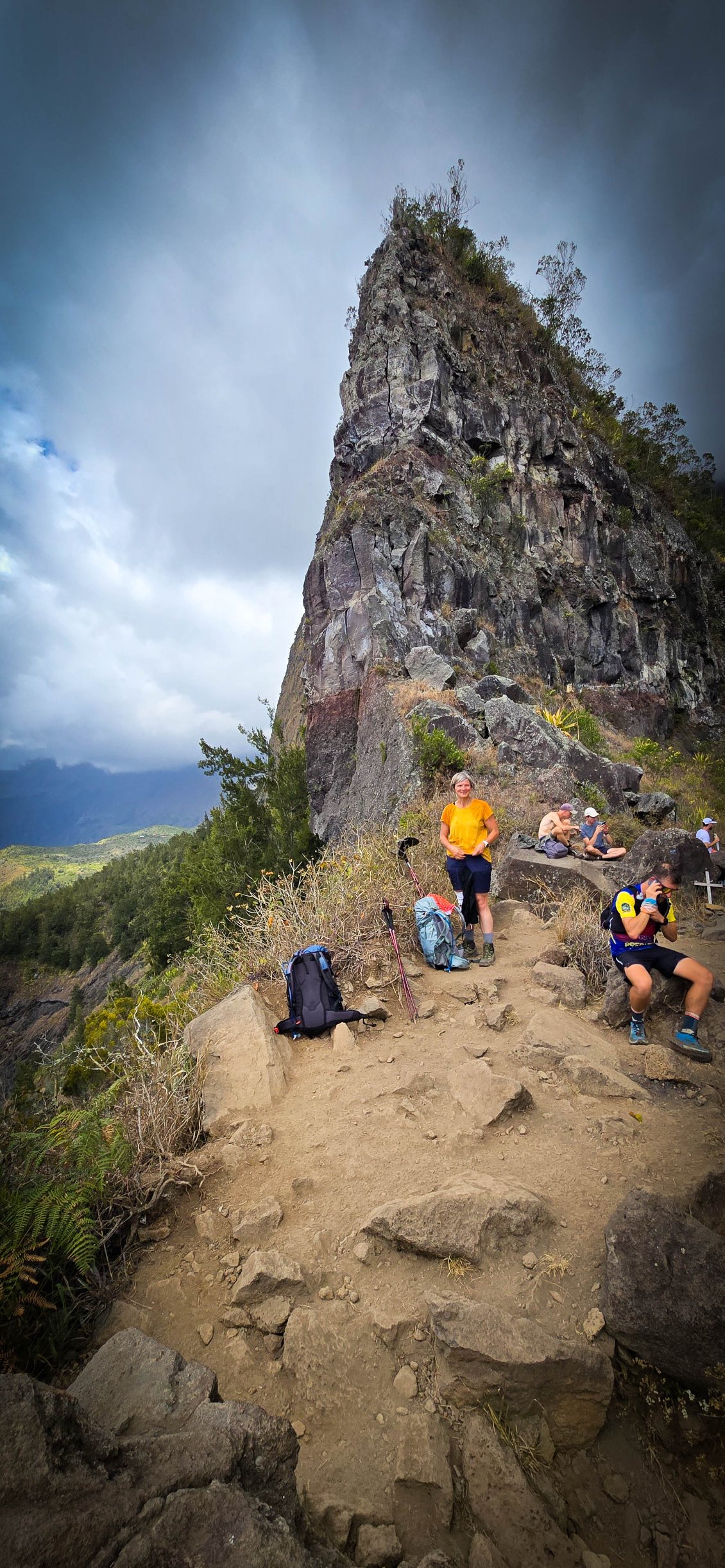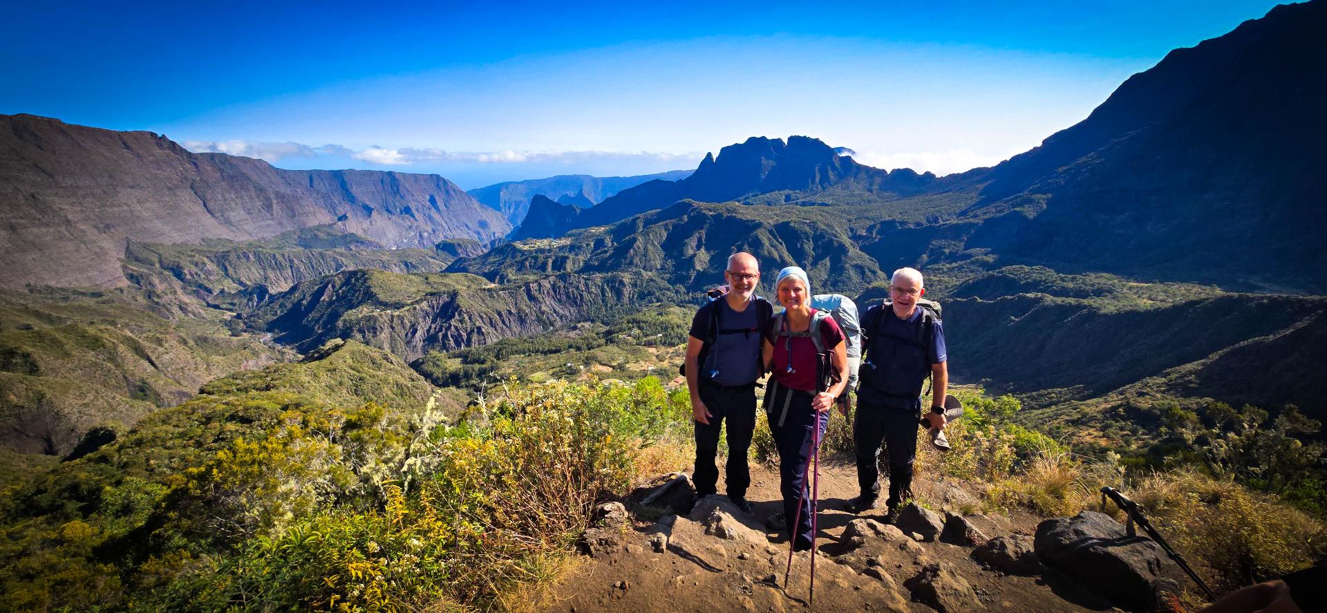 L'étape du jour nous fait quitter cet endroit magnifique qu'est le cirque de Mafate. Dans ce cirque, on aura vraiment vu des choses extraordinaires et, le moins que l’on puisse dire, c’est qu’elles se méritent. Les montées mais également les descentes sont abruptes et éprouvent nos petits corps.