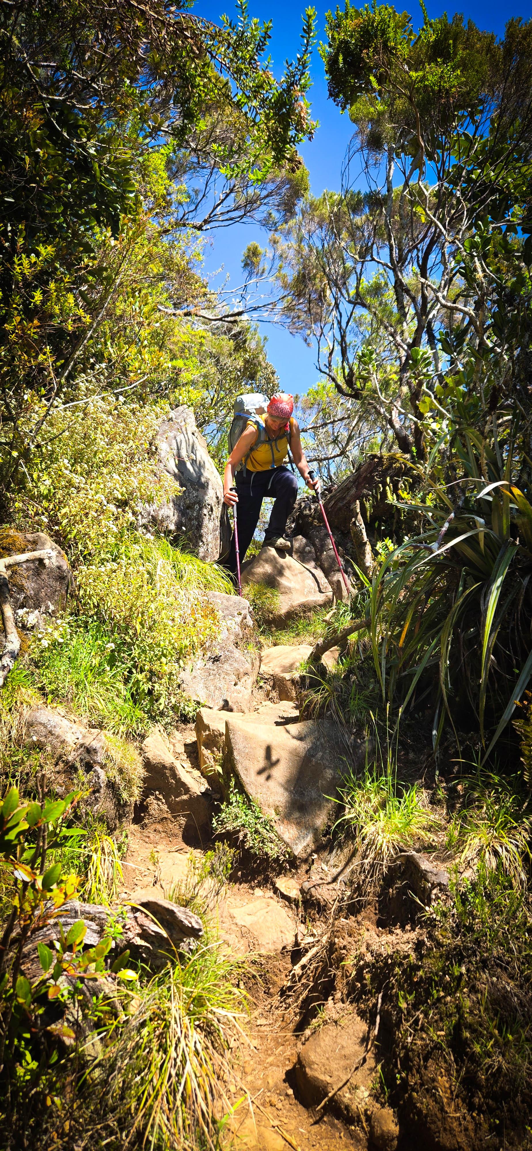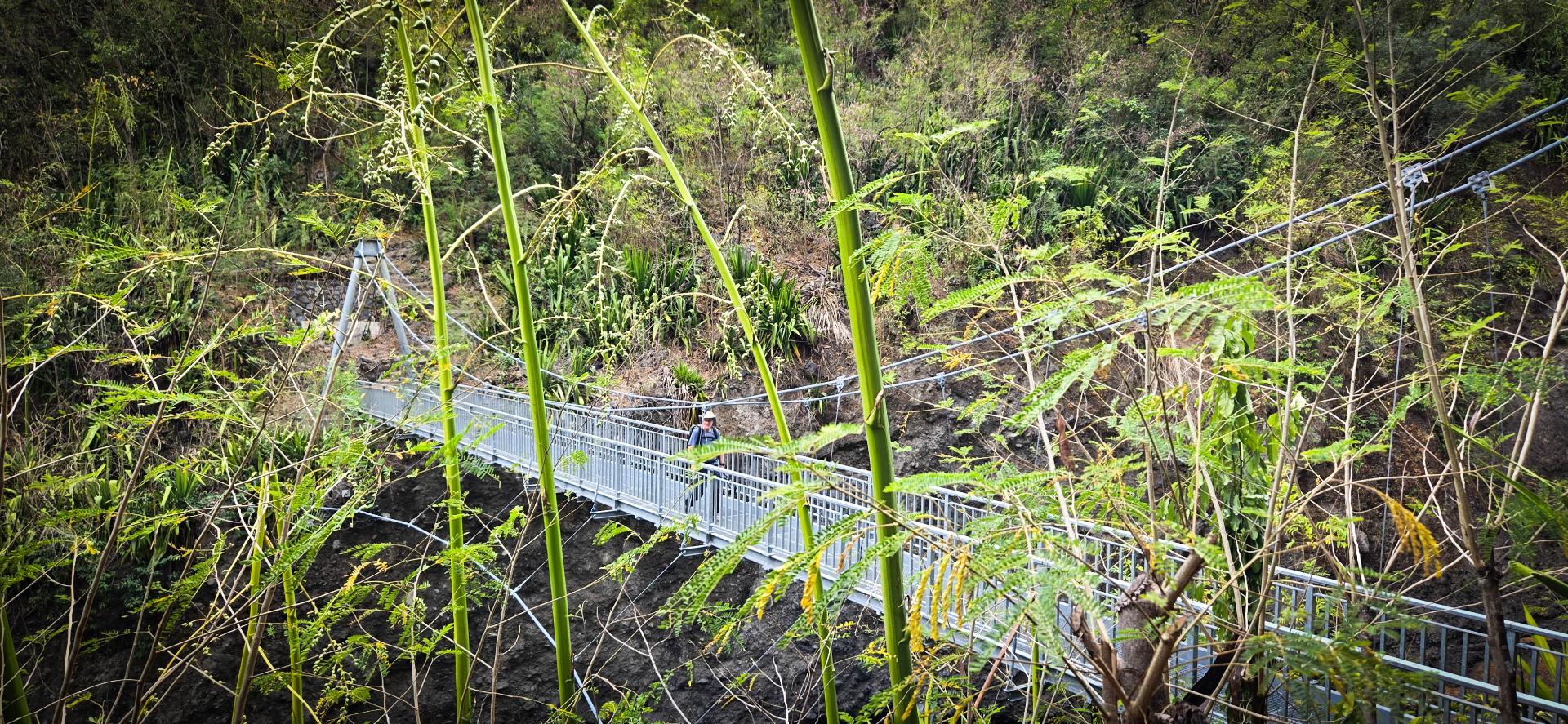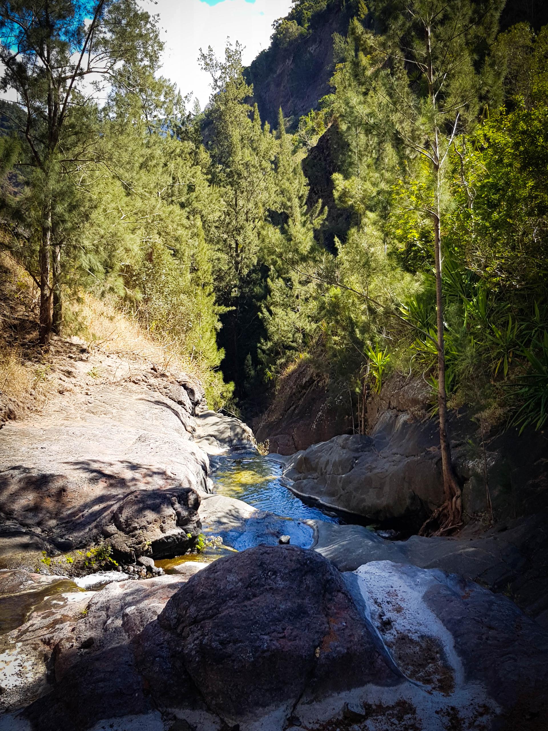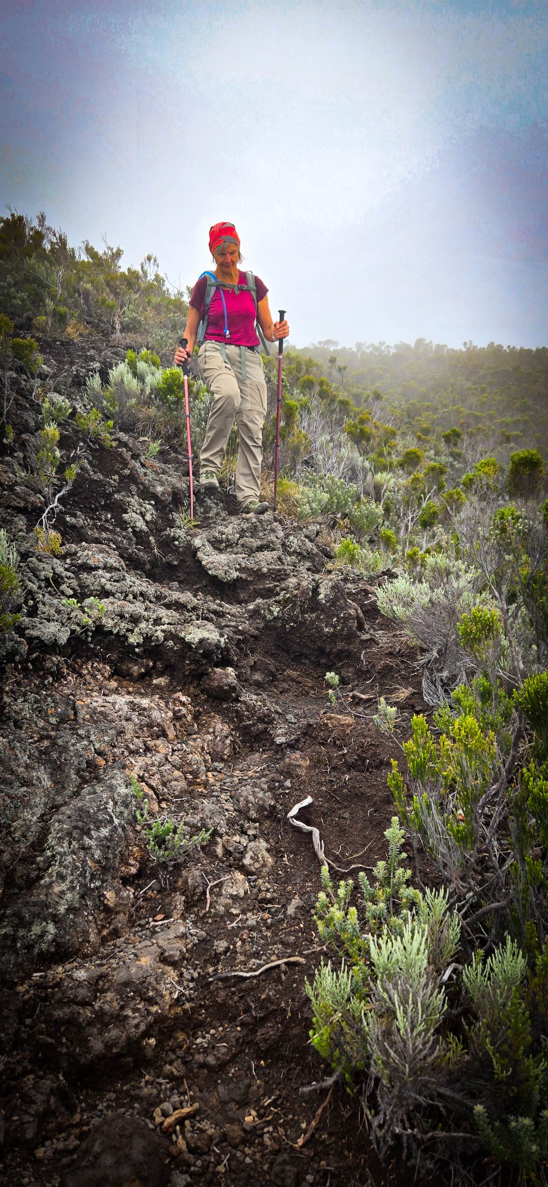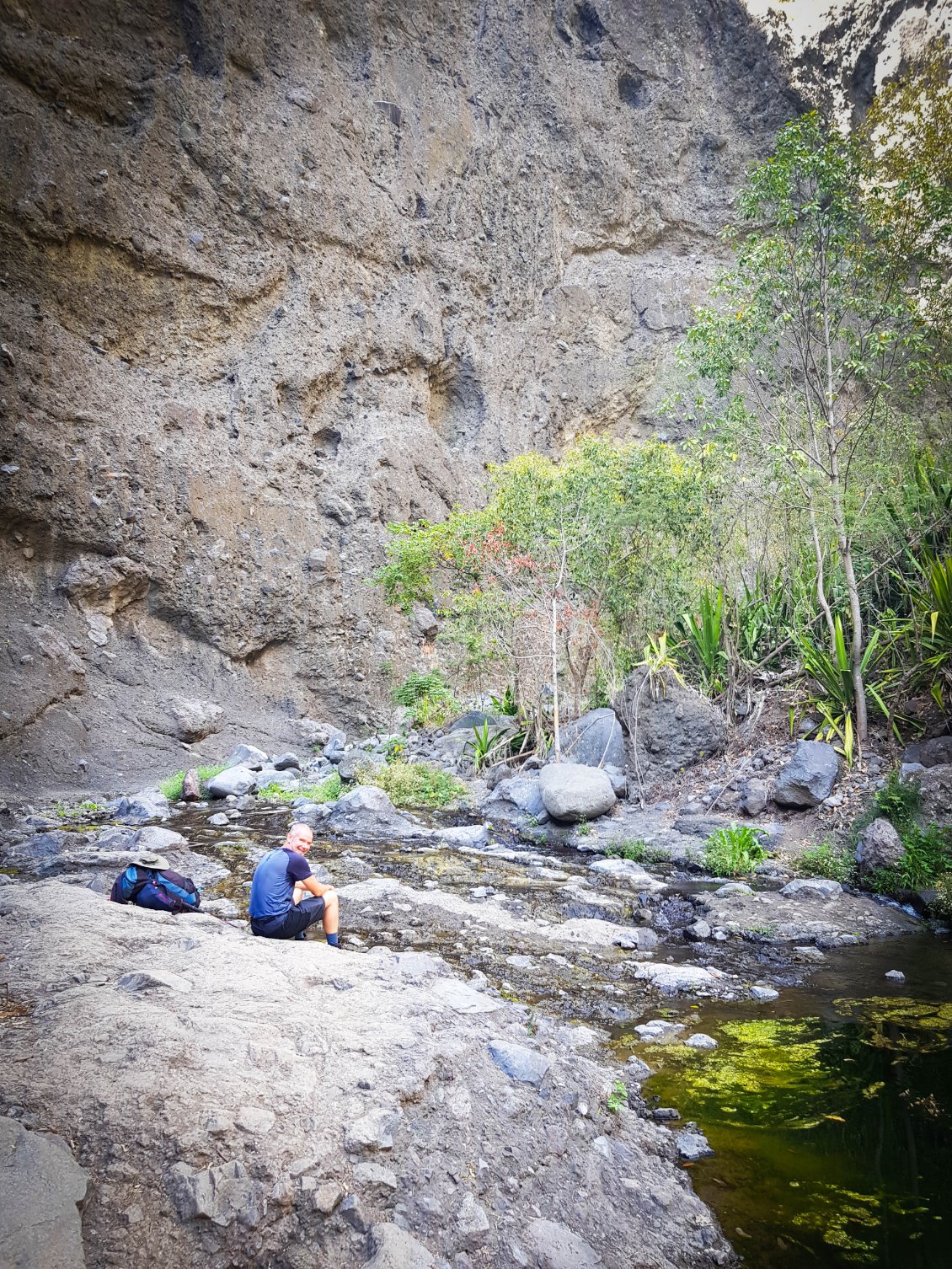 L'étape du jour nous fait quitter cet endroit magnifique qu'est le cirque de Mafate. Dans ce cirque, on aura vraiment vu des choses extraordinaires et, le moins que l’on puisse dire, c’est qu’elles se méritent. Les montées mais également les descentes sont abruptes et éprouvent nos petits corps.