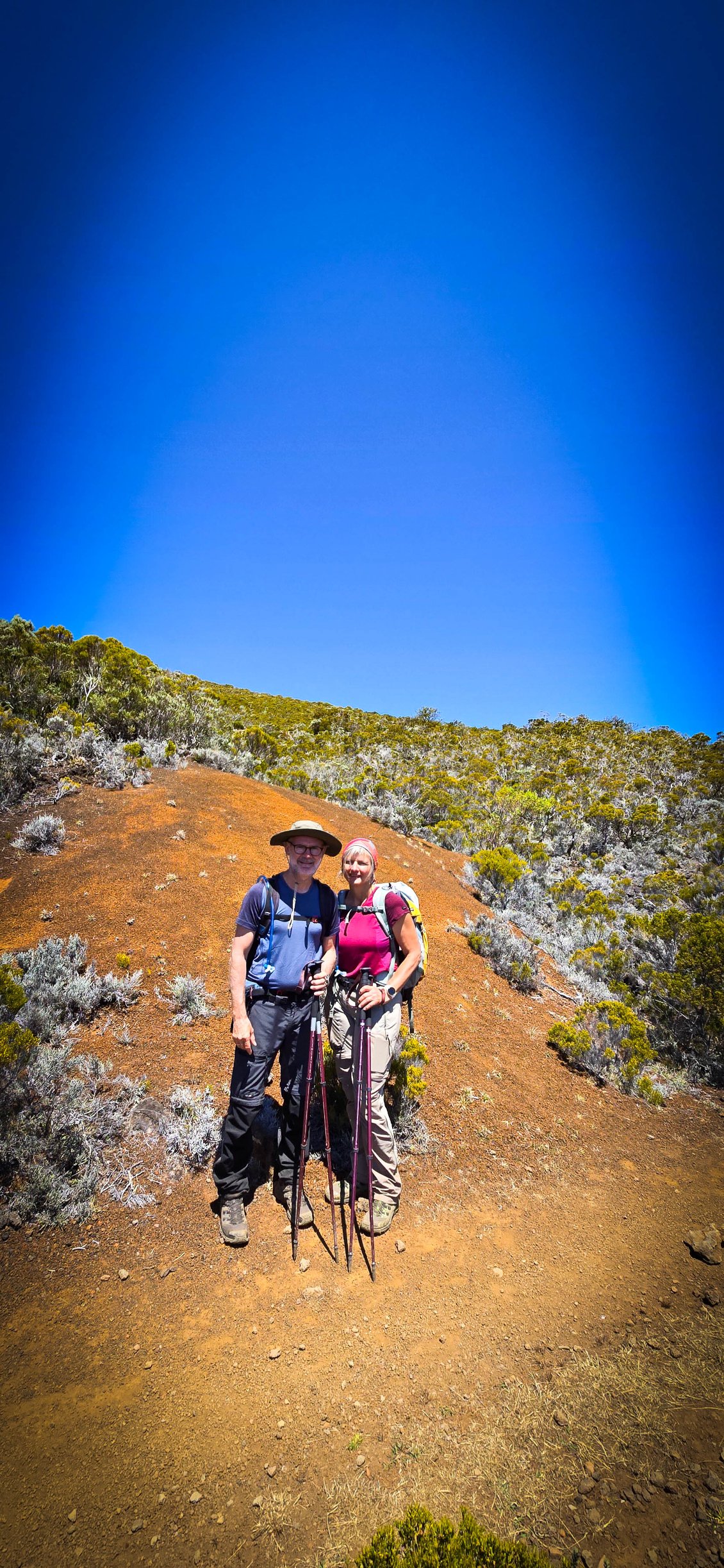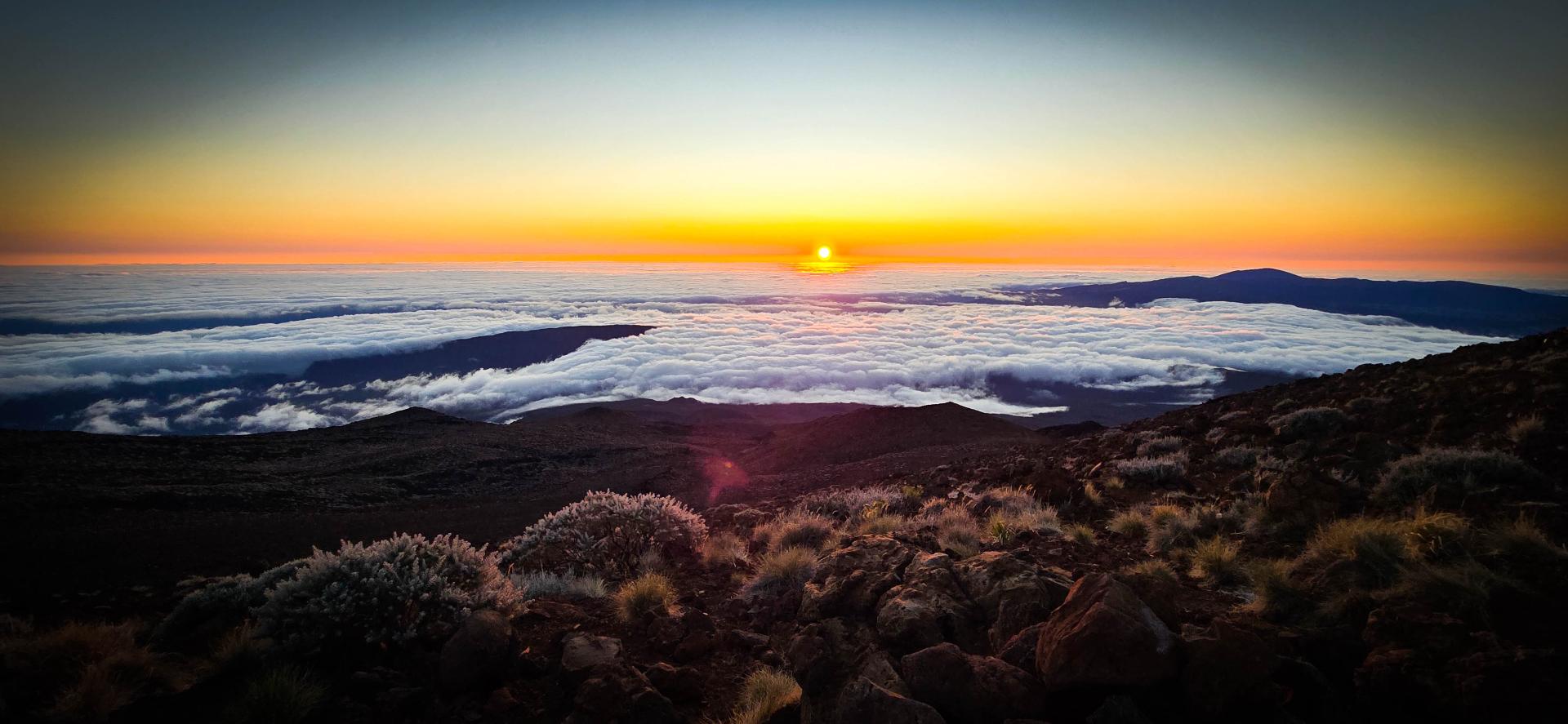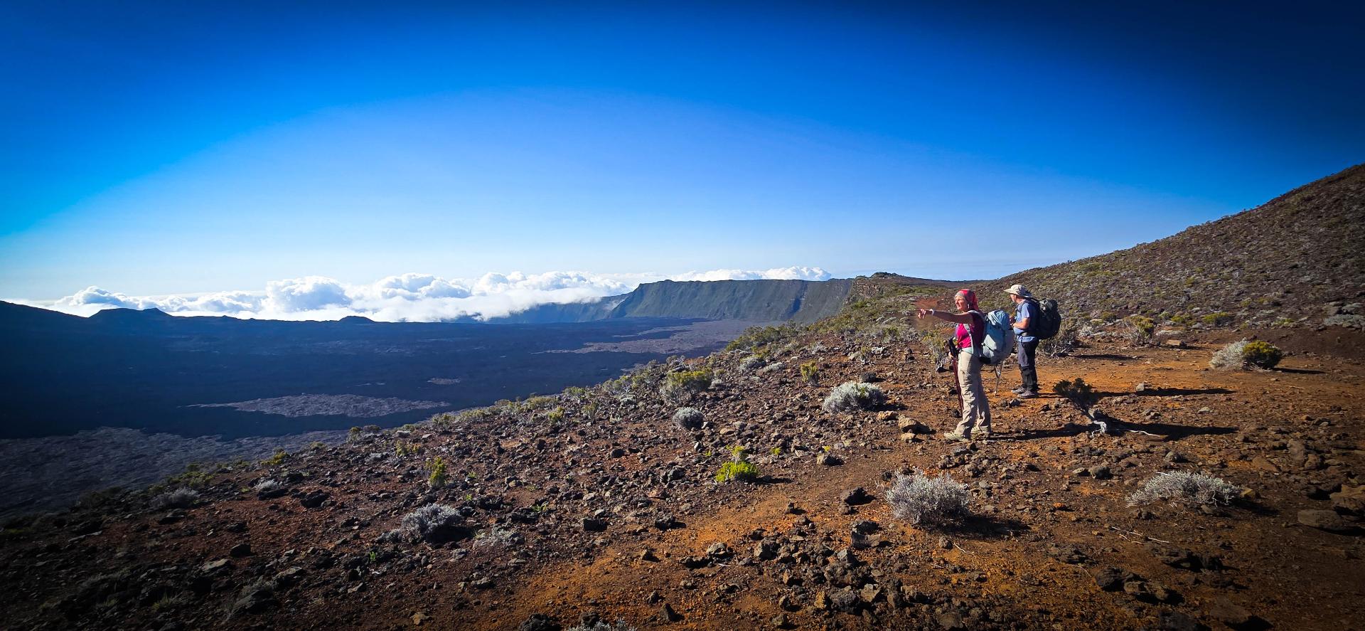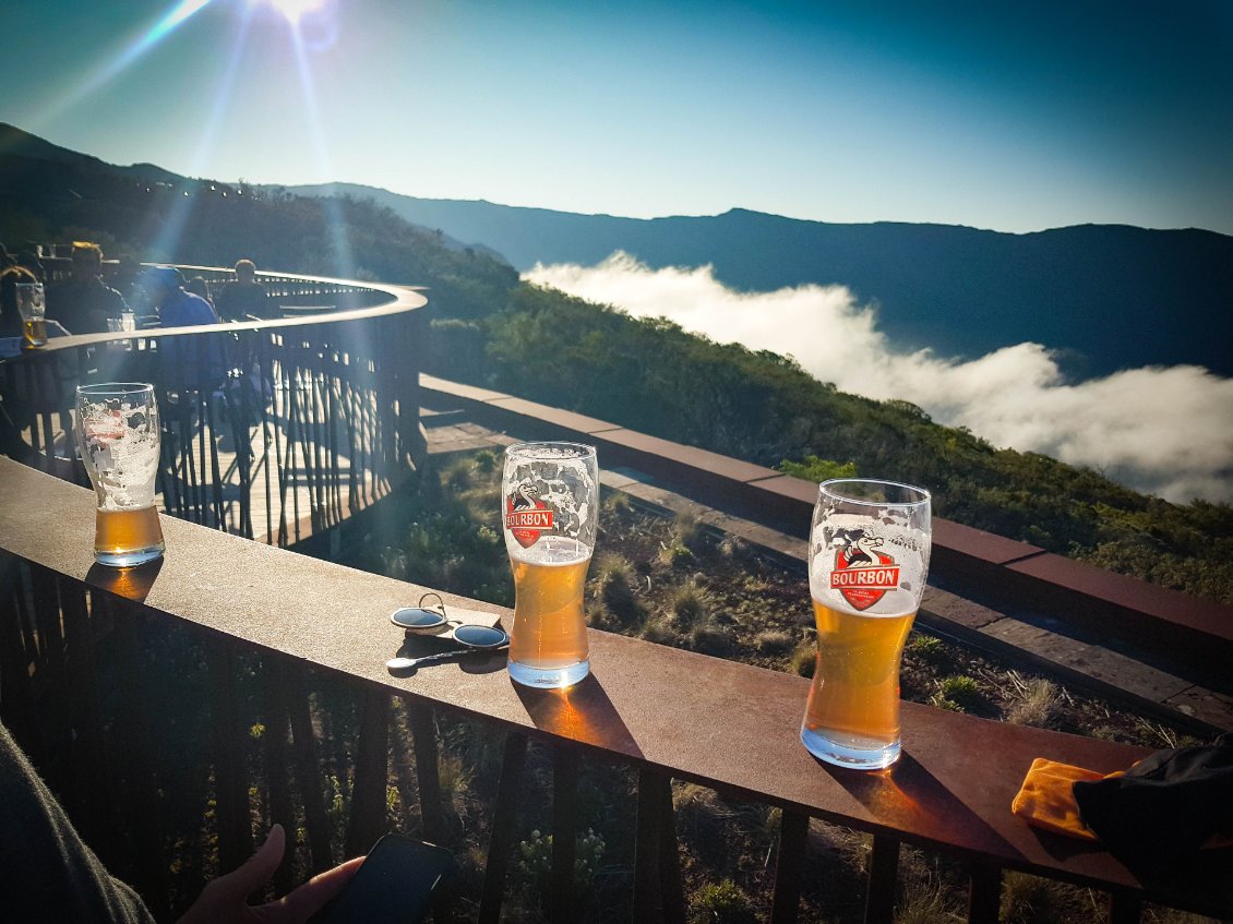 Houla…. La nuit fut courte. Quand le réveil sonne, nous serions bien restés au lit car ce ne fut pas la meilleur nuit. Mais bon, on sait qu’aujourd’hui l'étape est comme qui dirait intéressante et compliquée. Intéressante car on ne met pas un réveil à 3h30 du matin pour rien: on espère un beau levé de soleil au sommet du Piton des neige. Et compliquée car c'est l'étape redoutée de toute notre traversée. Elle va être trèèèès longue. On nous annonce 25km et surtout 1700m de dénivelé négatif.