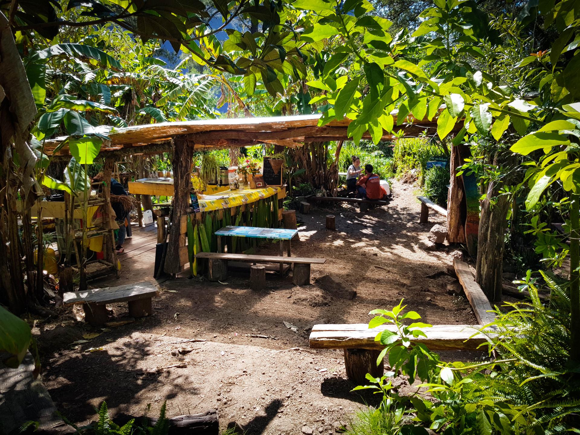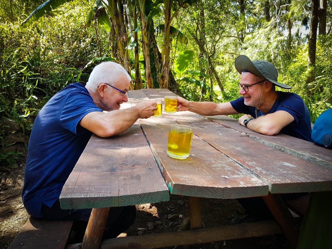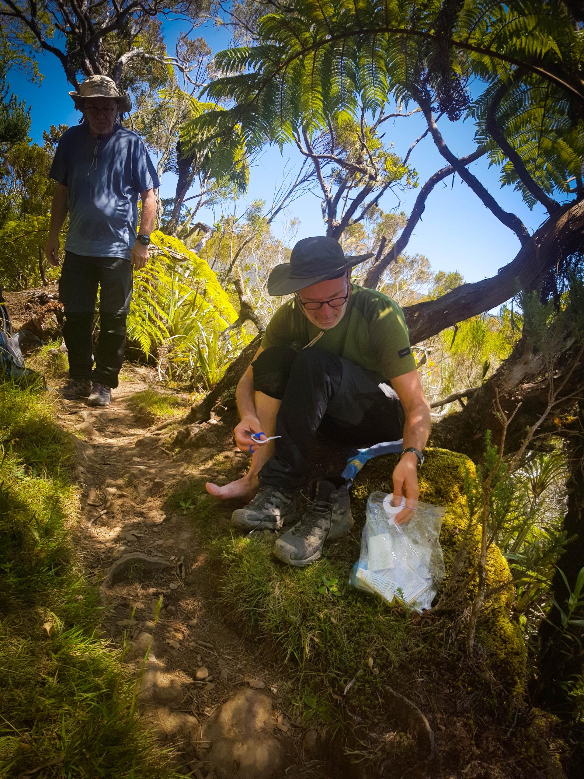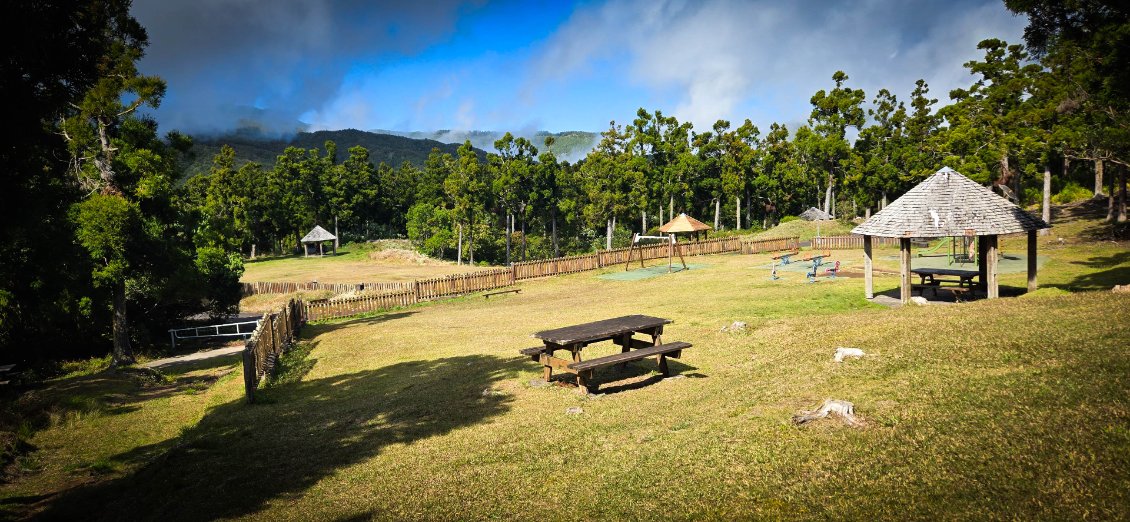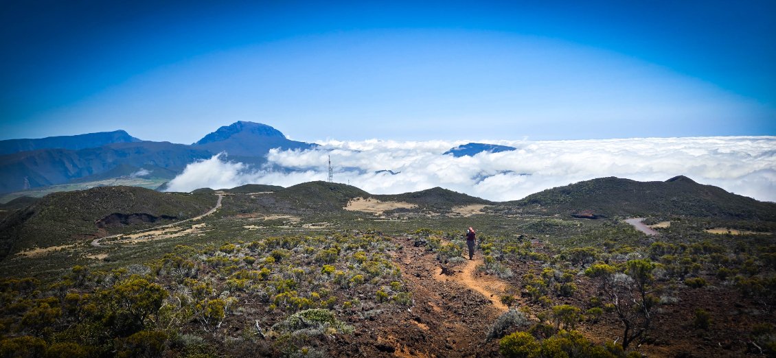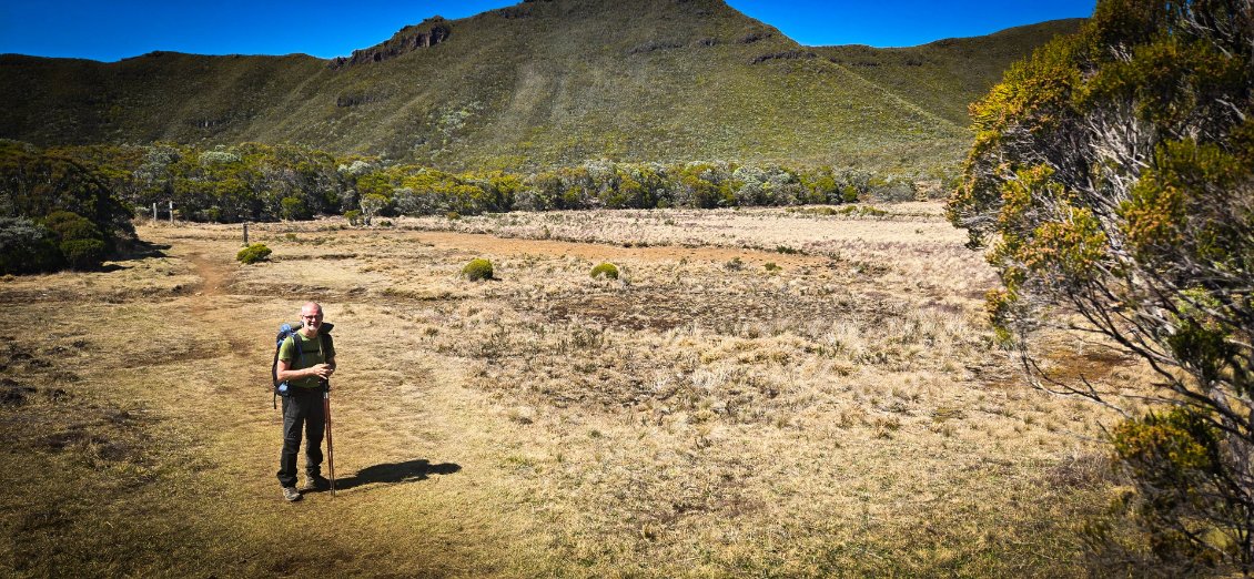 Aujourd'hui, étape de transition: normalement on ne devrait pas trop souffrir. L'étape est courte et le dénivelé peu important. Mais bon, on a appris à rester vigilant. La Réunion réserve souvent des surprises. Départ tranquille à 8h après un petit bon petit déjeuner.