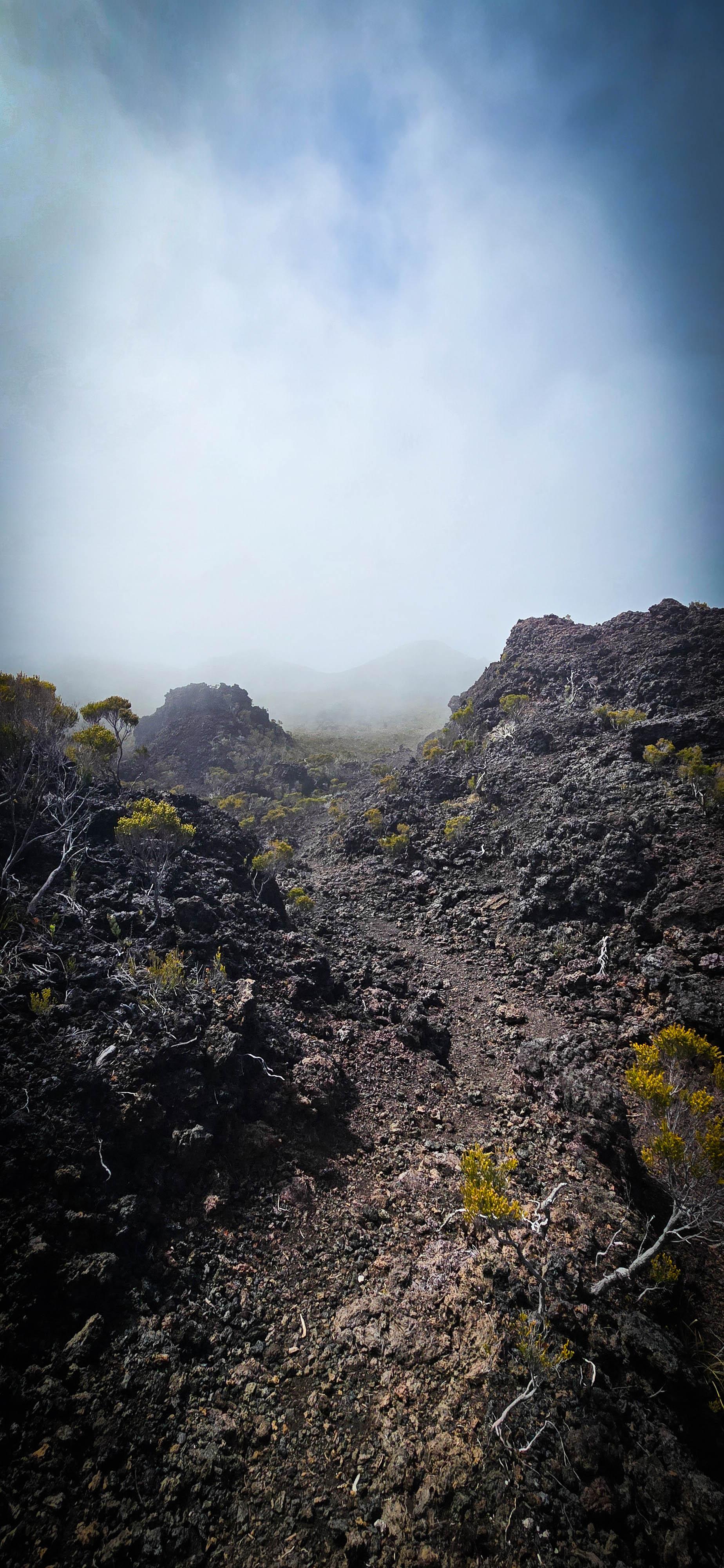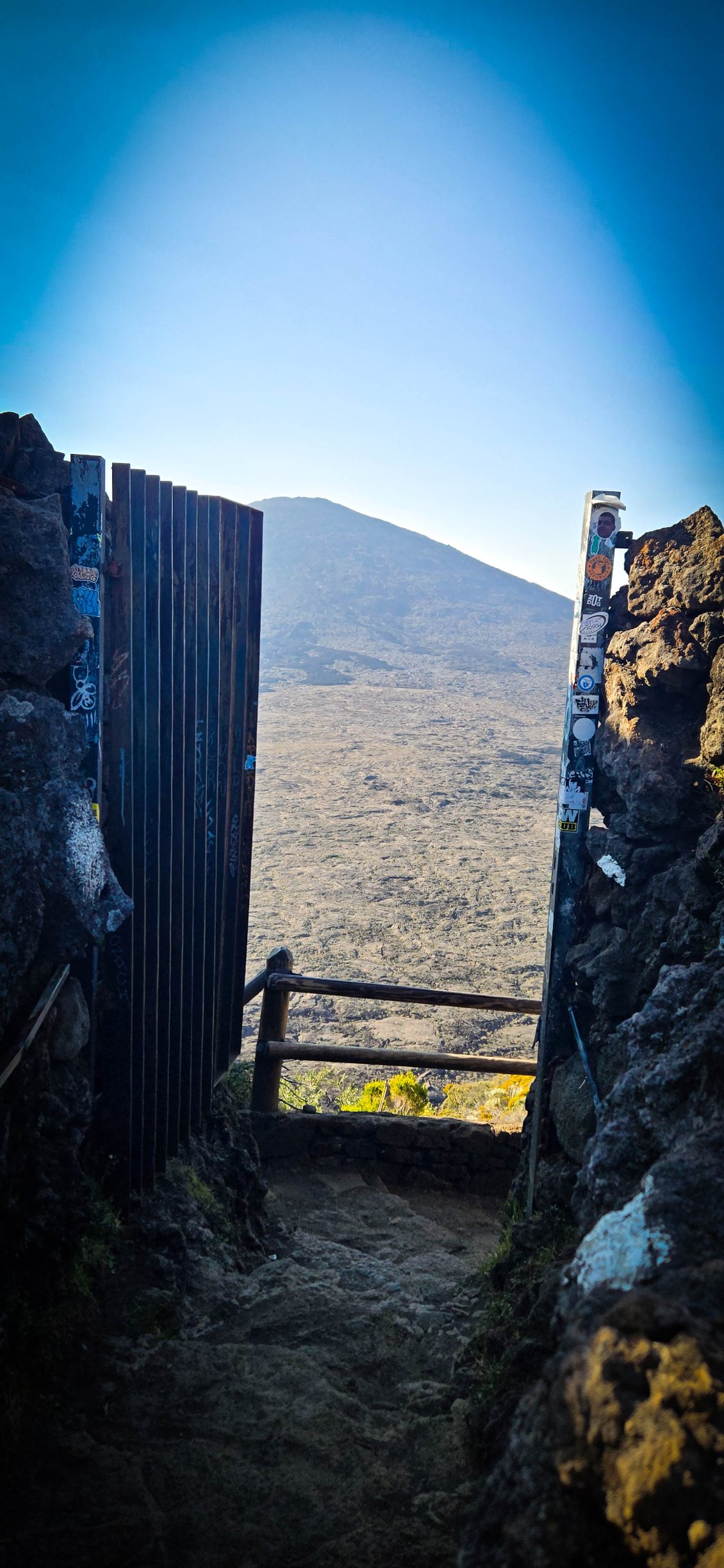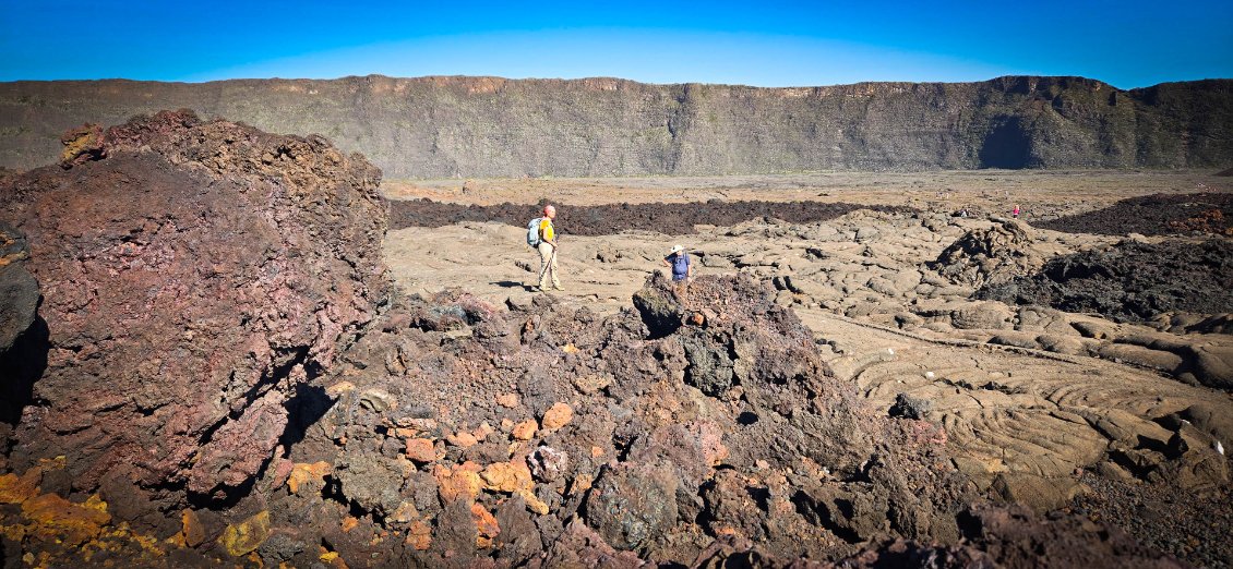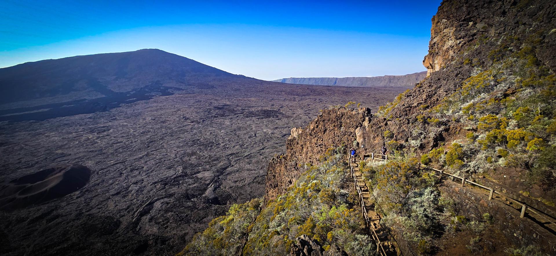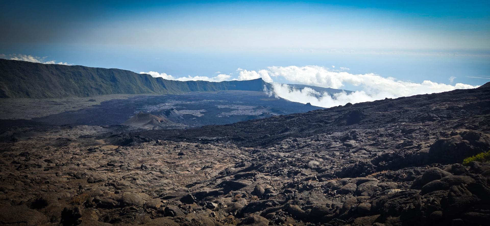 Il serait dommage de ne pas profiter d'être à proximité du Piton de la Fournaise et de ne pas monter voir le cratère. Donc, nous voilà partis en tout début de matinée pour rejoindre le bord de l'enclos avec le passage du Pas de Bellecombe et son portail.