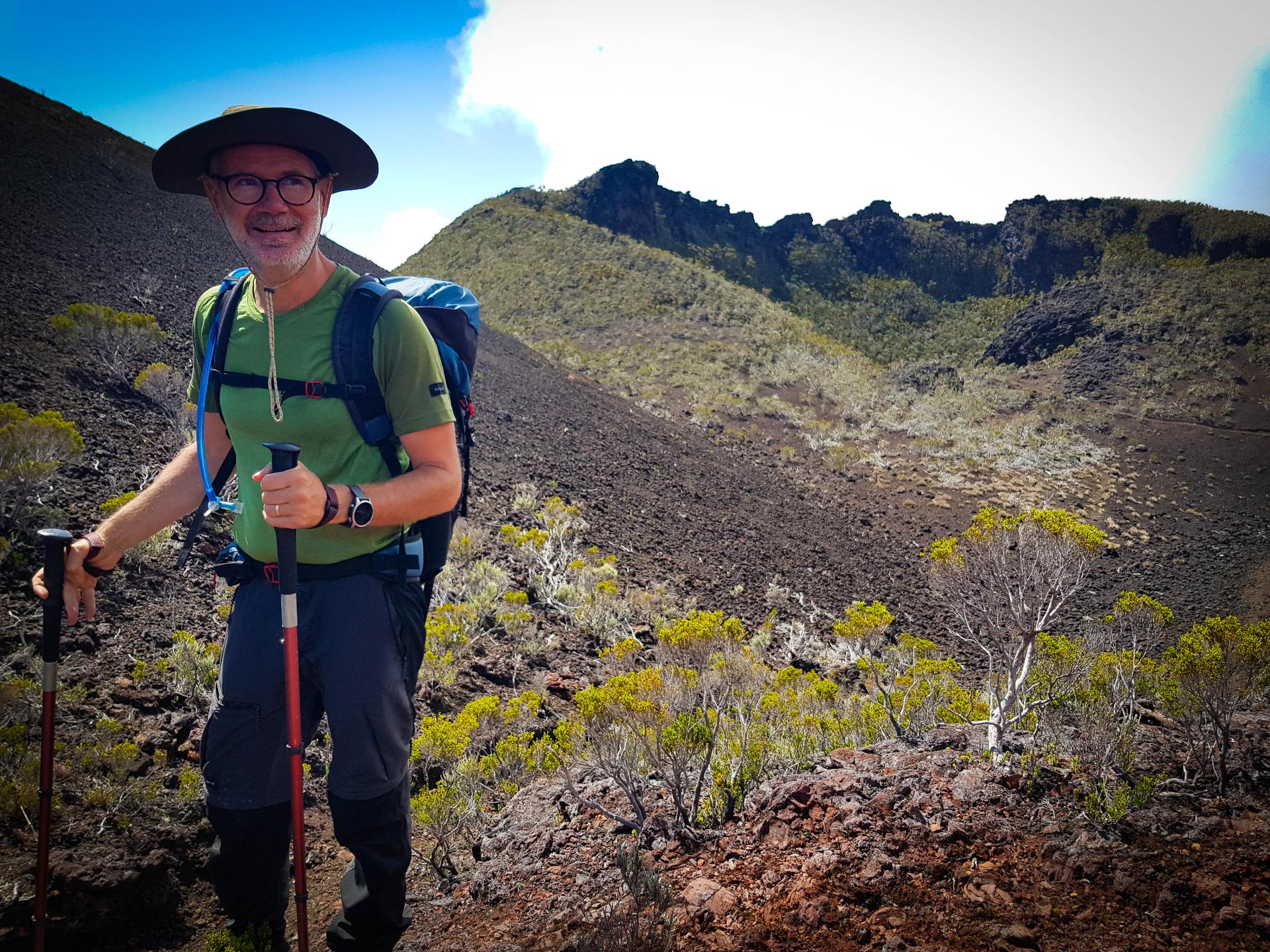 A la sortie de son GR20, Gwen s’est dit que dans les 2 à 3 ans qui suivraient, il se lancerait un nouveau défi sur une randonnée longue distance et quelque peu technique car il aime bien se challenger. Dans les années 80/90, il a vu un reportage sur un facteur un peu fou qui faisait sa tournée en marchant dans des paysages extraordinaires. Il ne savait alors pas encore que c'était sur l'île de la Réunion.