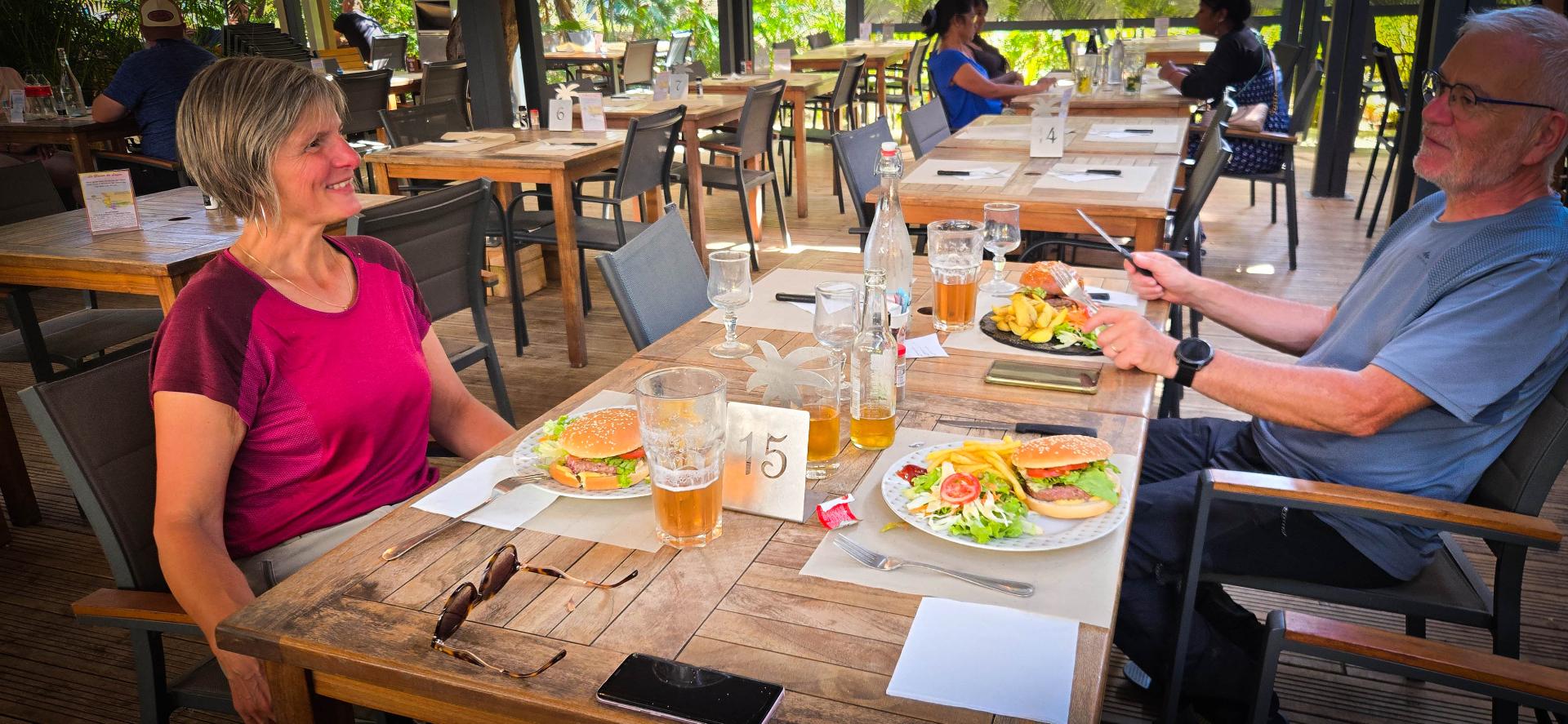 Une nouvelle fois, il est tôt, alors nous trouvons un petit resto pour profiter d'un bon burger/frites. Ça nous a manqué: ras le bol du riz et du poulet. Etonnant les désirs après une telle aventure.