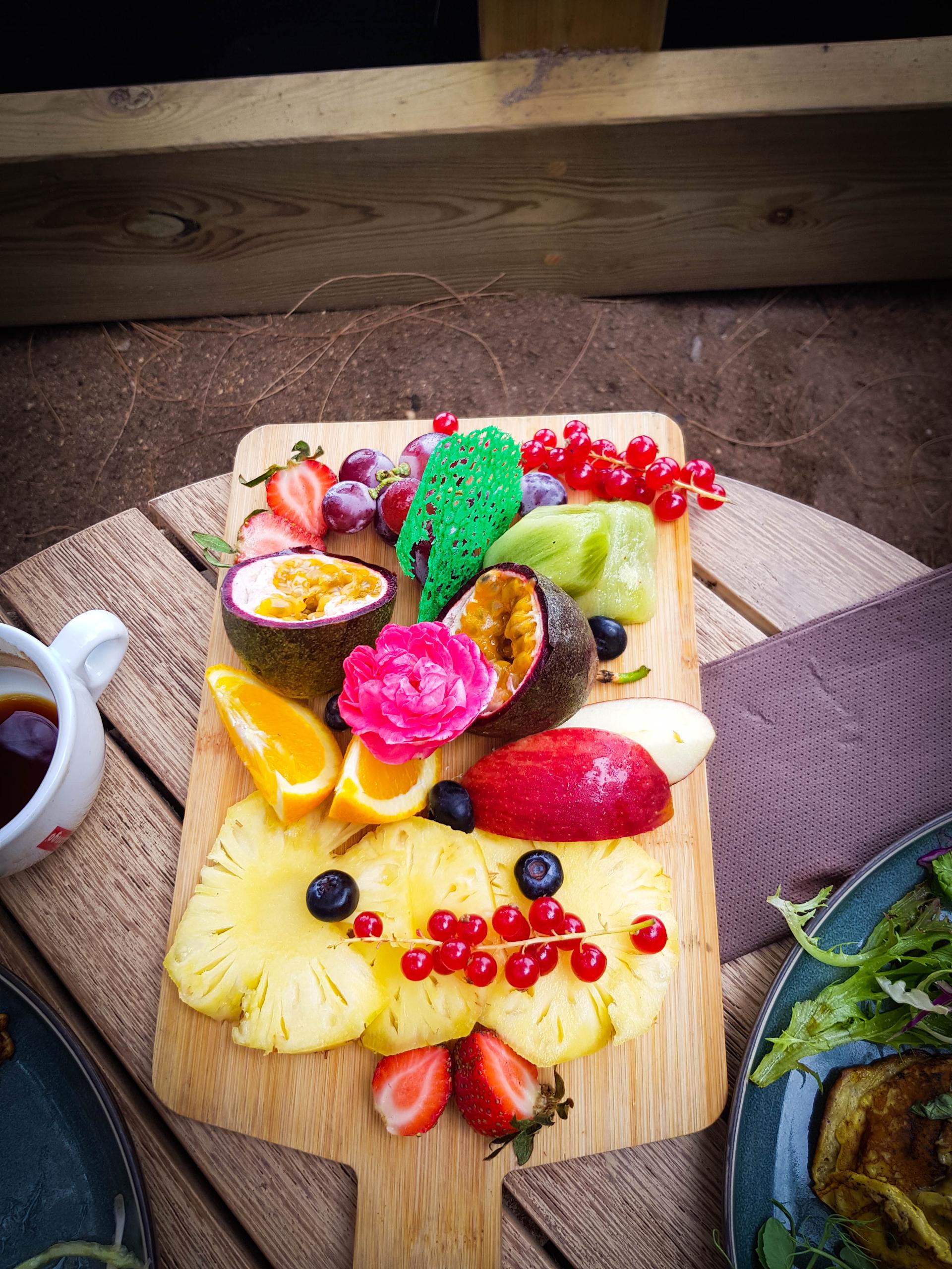 Comme la veille pour le repas, le déjeuner est incroyable: petits morceaux de fruit, miche de pain avec des pépites de chocolat. Dans ce gite, on est aux petits soins pour nous. L'accueil est vraiment top, parfait pour attaquer cette journée.