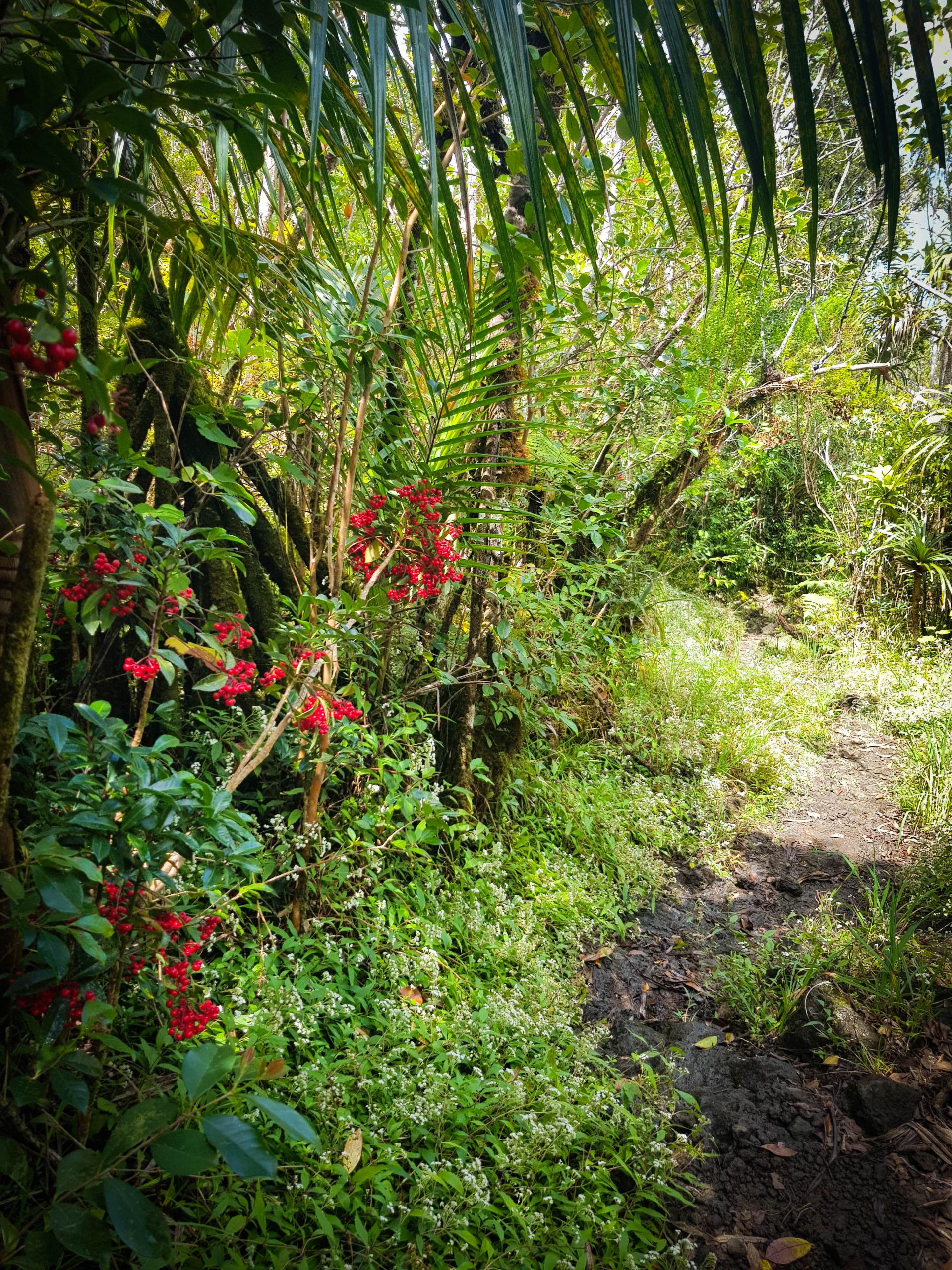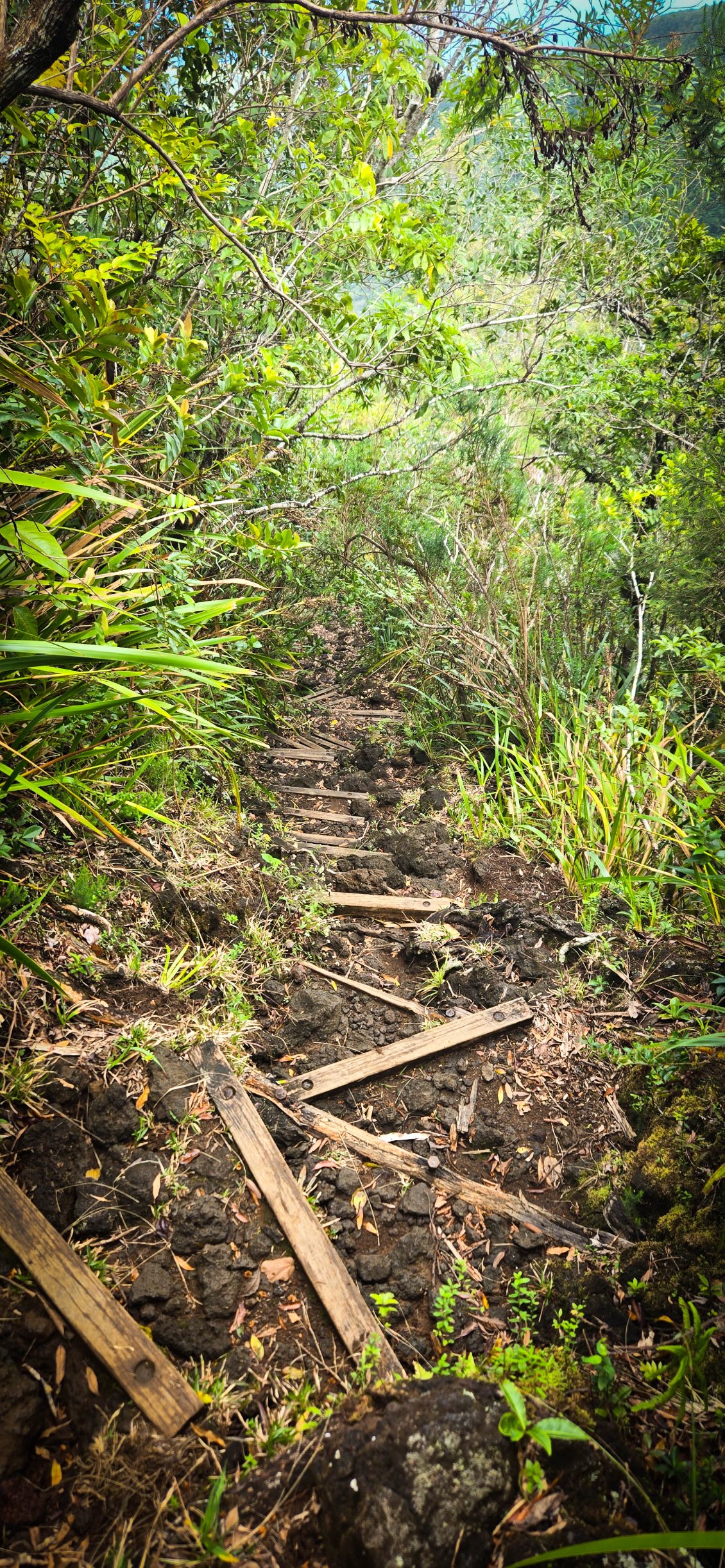 On n'ose imaginer parcourir le sentier sous des trombes d'eau, ce qui est relativement courant de ce côté-ci de l'l'île. Toujours notre chance qui nous accompagne, d'autant que les marches sont de retour et elles ne font pas rire.