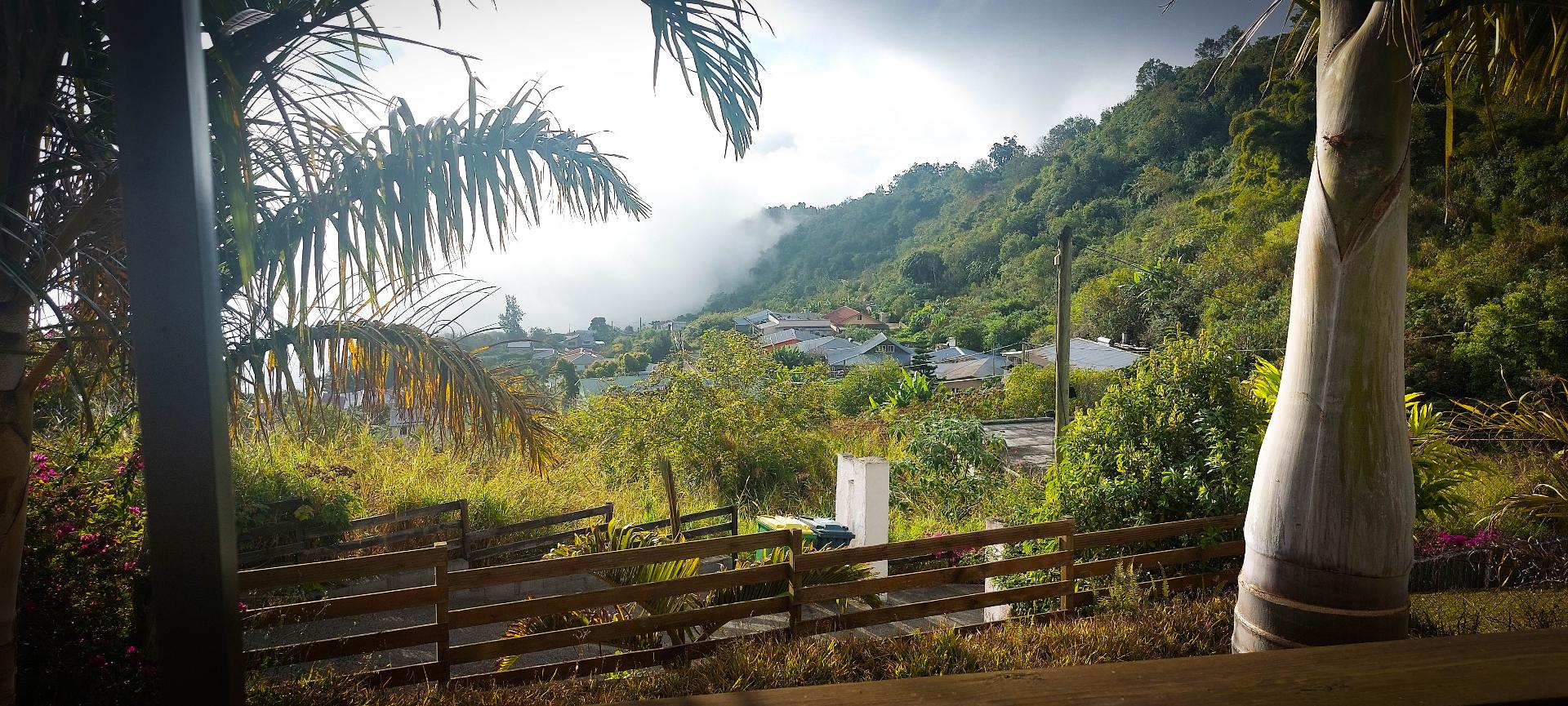 Réveil 6h, petit déjeuner 6h30. Départ sous la bruine à 7h. Nous voici à l'aube de cette deuxième étape. En début de matinée, nous avons prévu de faire la première variante de notre périple: cela consiste à faire un aller-retour au sommet de la Roche Ecrite. La Roche Écrite (2 276 m) est située au nord de La Réunion entre le cirque de Mafate et celui de Salazie. Elle offre un panorama spectaculaire sur ces cirques et l’océan. Site protégé du Parc national, il abrite une flore et faune endémiques. Plusieurs sentiers permettent d’y accéder, de Mamode Camp ou Grand Ilet. Pour nous, ce sera depuis le refuge.