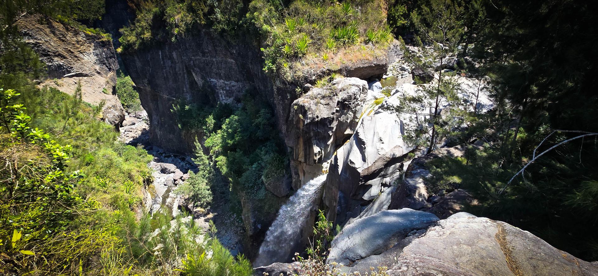 Beaucoup de monde ici: il faut dire que son accès est aisé depuis Cilaos. Dommage, pas de coin de baignade. Mais bon, on n’a pas trop cherché car ce que nous attendons est un peu plus loin sur le parcours.