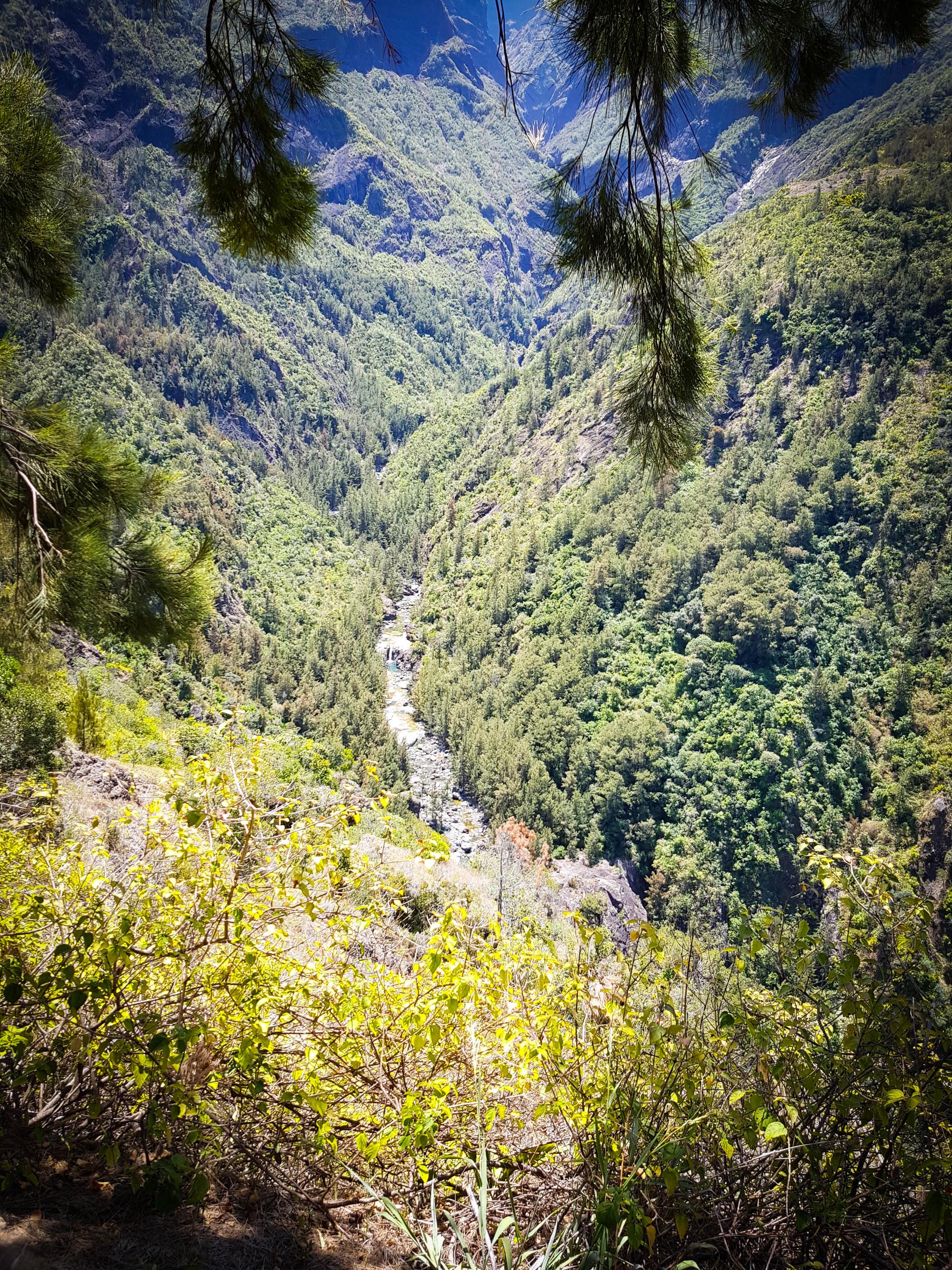 Après le col, nous effectuons une longue descente en direction de Cilaos. Ici aussi la vue n'est pas à jeter. Toute la descente sera faite avec le cirque en point de vue. Il faut bien ça pour faire oublier les 1300m de dénivelés négatifs (et le marches bien sûr).