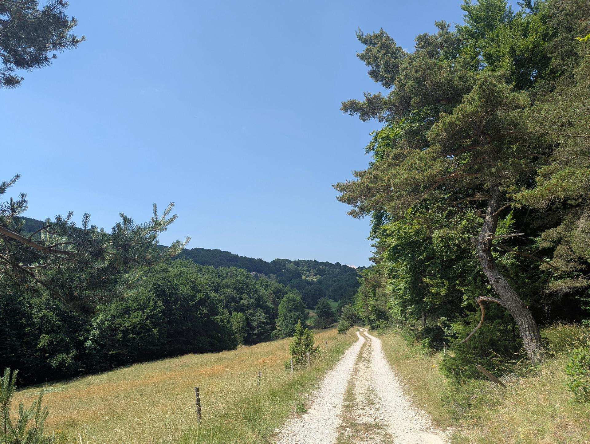 Puis je monte en direction du lieu-dit du Pecher, pour rejoindre Léoncel par une première section de piste de qualité, ombragée et très roulante.