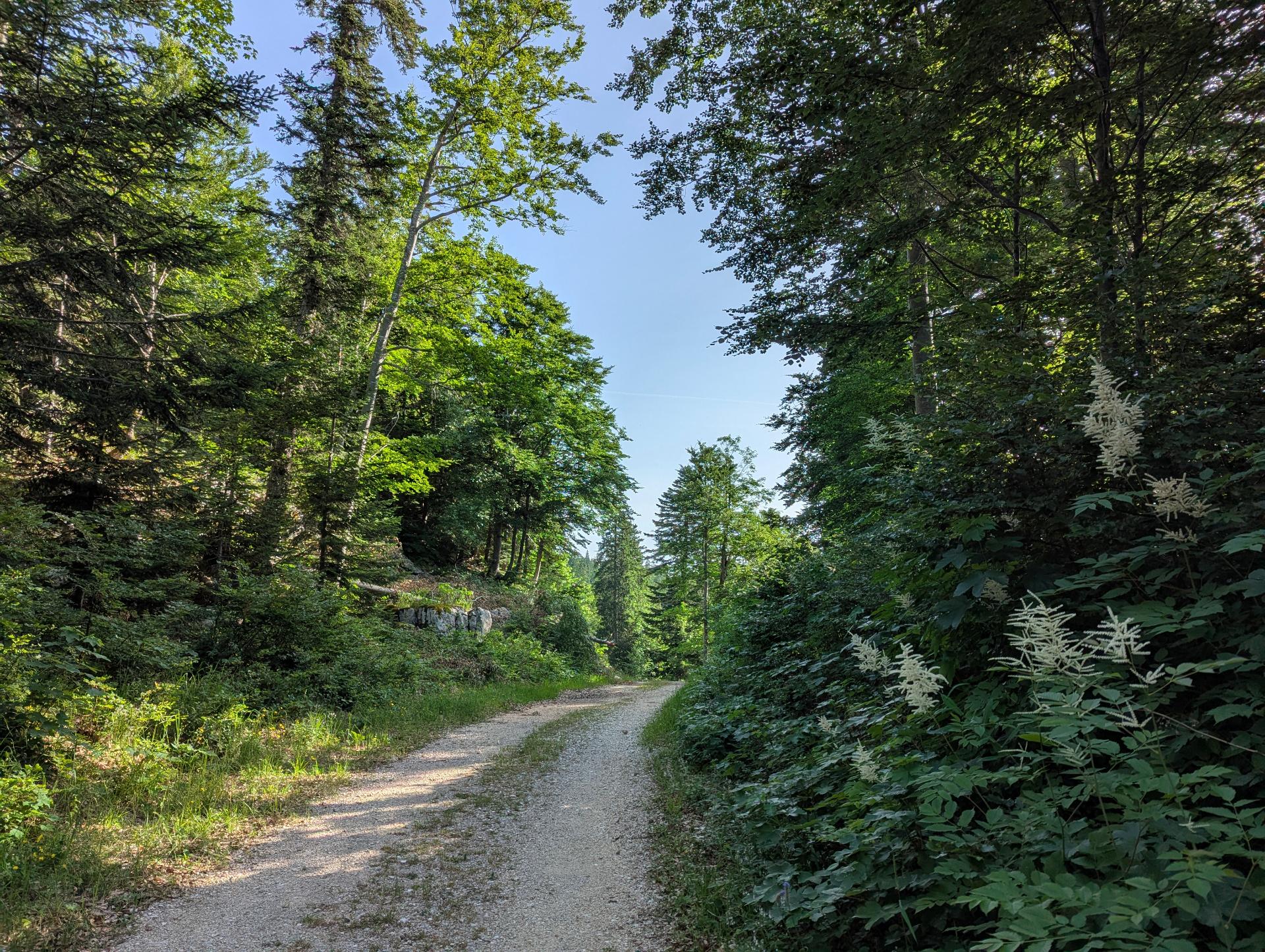 Une fois la traversée du golf de Corençon faite, je m’élève par une piste forestière (encore une), direction le haut plateau.