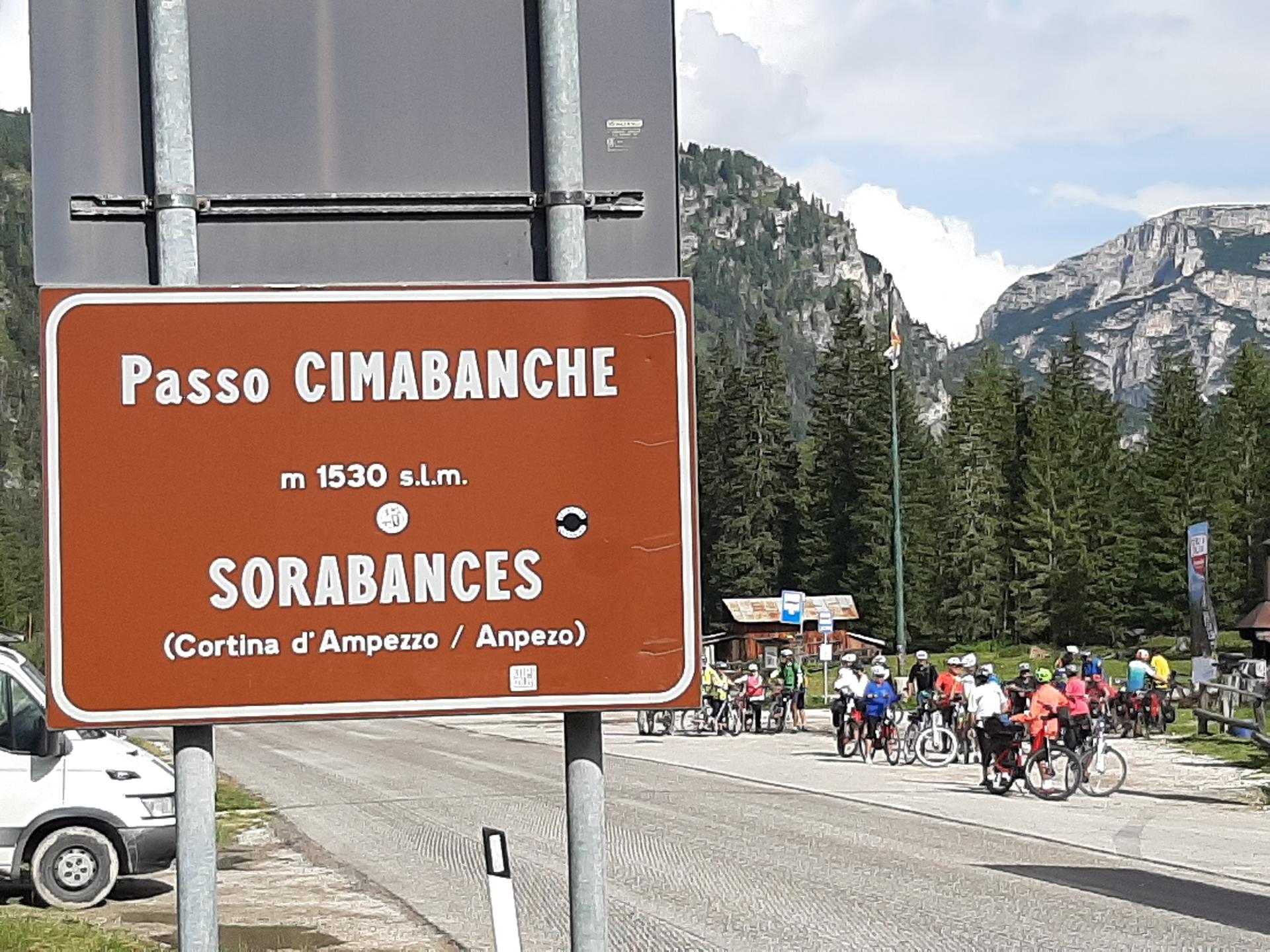 Après-midi : montée vers le col de Cimabanche par la piste, à travers bois. C’est plutôt tranquille et bien ombragé. Josiane et moi décidons de rejoindre la route juste avant le col. Erreur car celle-ci est en travaux et c’est pire que la piste. Nous rejoignons le reste de l’équipe juste avant le col. Cela tombe bien, il y a un bar juste au col.