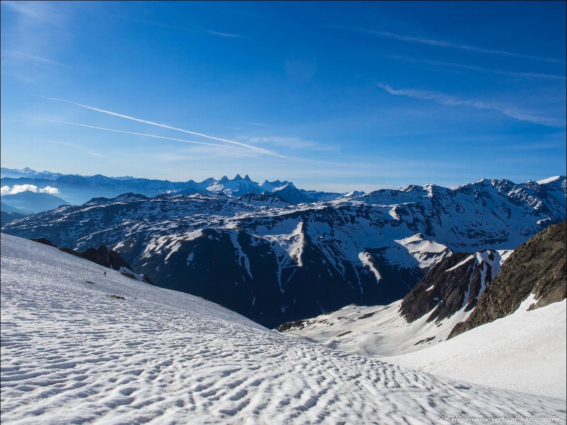 Sur cette classique de la fin de saison, nous improviserons un itinéraire nous permettant de basculer en versant nord et de boucler par les sauvages Aiguilles de l’Argentière. On aura presque plus vu de chamois que de skieurs ce jour!