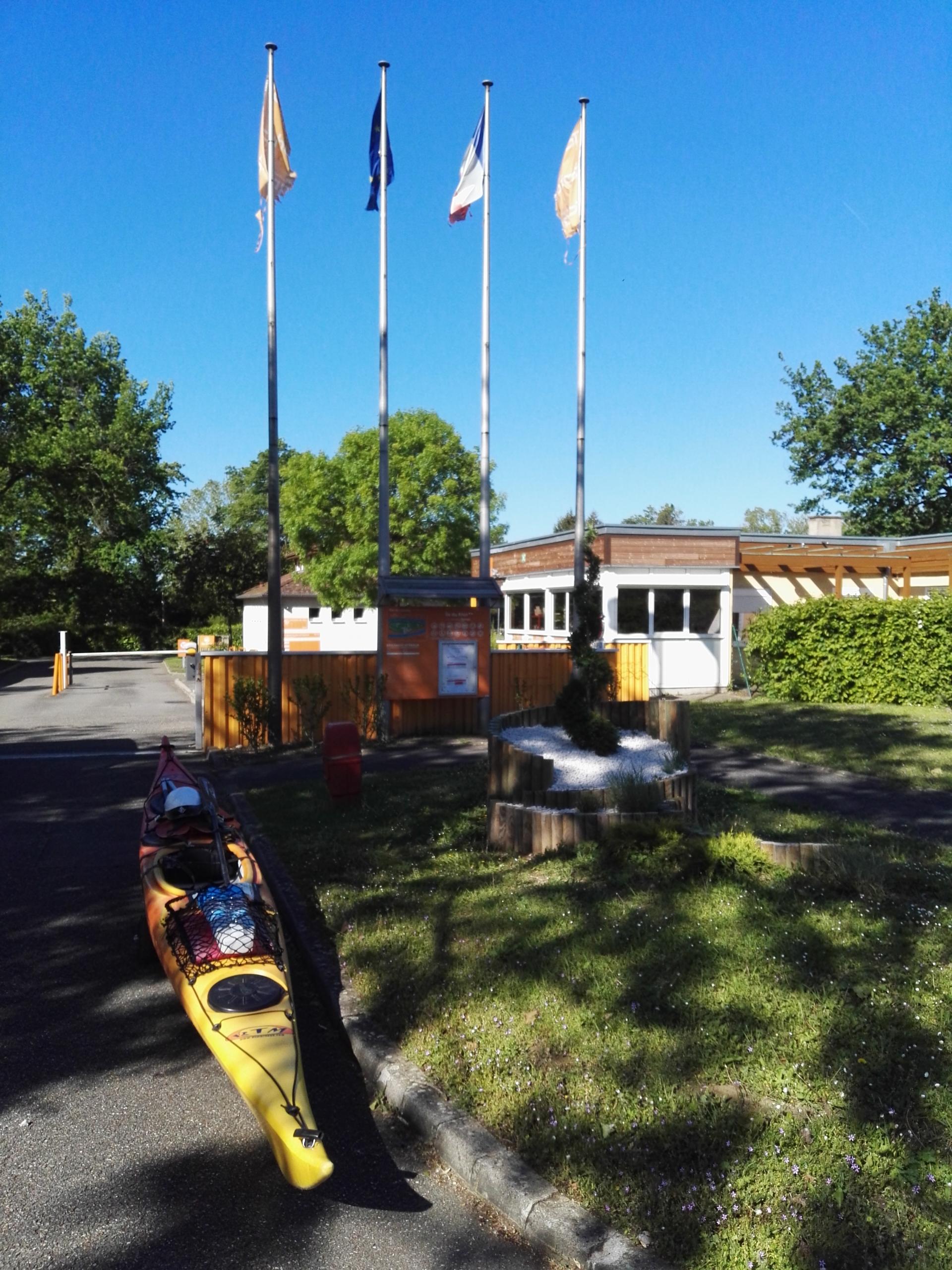 Seul bémol à mon enthousiasme, je n'ai pas trouvé de rampe pour sortir facilement le kayak de l'eau, en arrivant au barrage de la centrale électrique de Vogelgrun. J'ai fait à un peu à l'arrache, à travers la végétation.