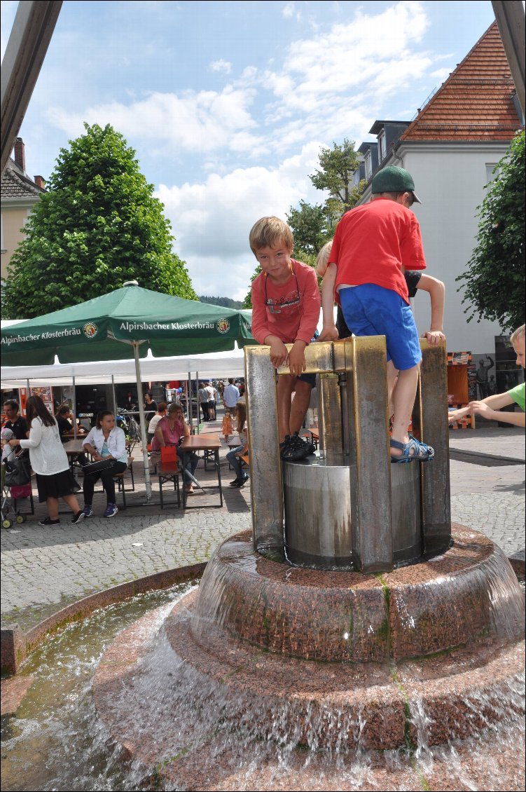 Nous quittons Tuttlingen où c’est la fête de la street-food… juste de quoi nous chatouiller les narines avant d‘attaquer 25O m de dénivelé en moins de 5 km…. Nous dominons désormais la forêt noire, directions le lac de Constance ou Bodensee (en réalité le lac inférieur) que nous voyons au loin. Le paysage change et ce n’est pas pour nous déplaire malgré de bonnes suées et… de superbes descentes ! Nous doublons même dans la descente un groupe de copines venues faire une journée de vélo dans le coin.