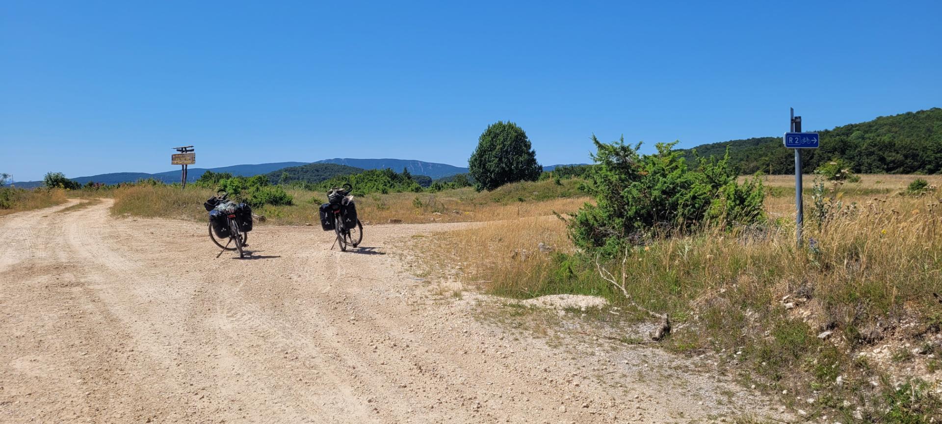 Une fois la frontière croate passée, ce sera une journée VTT avec nos vélos de cyclotourisme par l'itinéraire du Lynx. Ne pouvoant poursuivre jusqu'au camping suivant, nous camperons dans une clairière sans eau (et oui, le karst absorbe l'eau) avec une petite crainte de voir les ours dans la nuit.