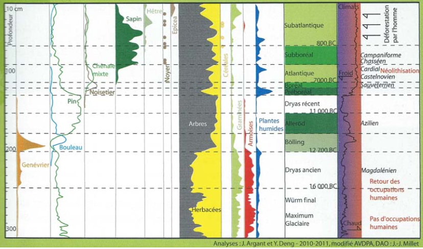 Cette tourbière résulte en fait d’un lac formé au fil des dernières glaciations et réchauffements. Ainsi, il y a 200 000 ans, la glaciation du Riss a provoqué un éboulement de la falaise à l’origine de la formation du plateau du Peuil, puis lors de la dernière glaciation de la période du Würm, un énorme glacier recouvrait la vallée du Drac dont il est difficile d’imaginer la taille : il y a plus de 25 000 ans, sa glace laissait tout juste émerger le haut des falaises qui se trouvent sous mes yeux… et c’est donc lors du dernier retrait glaciaire il y a 16 000 ans que le lac est naturellement apparu avant de se refermer comme c’est le destin de tout lac sur notre planète.