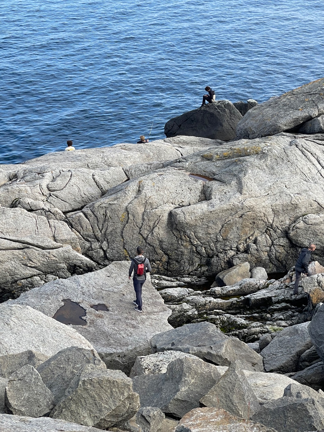 Bien à l’abri à l’intérieur d’un tunnel je suis surprise de la violence du vent m’attendant à la sortie. La vue n’en reste pas moins splendide à l’extrémité de ce bras de mer. Tout est en mouvement ; les vagues sur le fjord, l’herbe et les buissons se balançant en une danse effrénée, et moi, cheveux au vent, filmant afin de faire participer mes proches au mouvement et aux bruits magiques orchestrés par le vent.