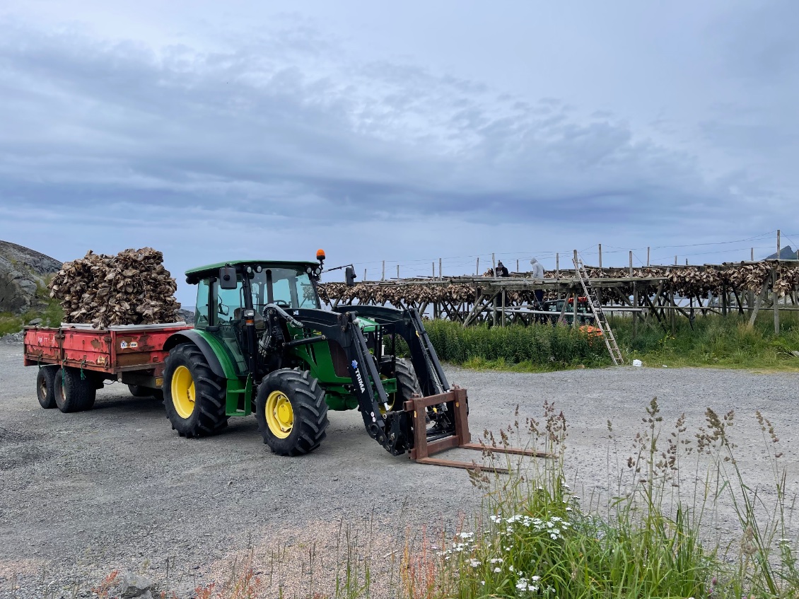 L’arrivée d’un tracteur nous occupe un bon moment. C’est le tracteur de Hans qui est parti de sa ferme en Allemagne, pour une longue boucle passant par le cap Nord. En tracteur, oui ! J’en fais le tour et à ma grande surprise, je vois sur son flanc, accroché à hauteur de ma tête, un Solex. Un vrai bon vieux Solex des années soixante-dix, en état de fonctionnement. Un grand coffre est fixé à l’arrière du tracteur. Il s’avère qu’il renferme une minuscule cabine couchette et un fatras d’affaires. Je commence à penser que Hans est un vrai zinzin du cap Nord. C’est lui le plus fêlé d’entre nous. Avec simplement nos vélos de voyageurs, nous restons bien sobres, modérés et discrets. Hans récolte des fonds pour une cause humanitaire, il donne du sens à son voyage.
