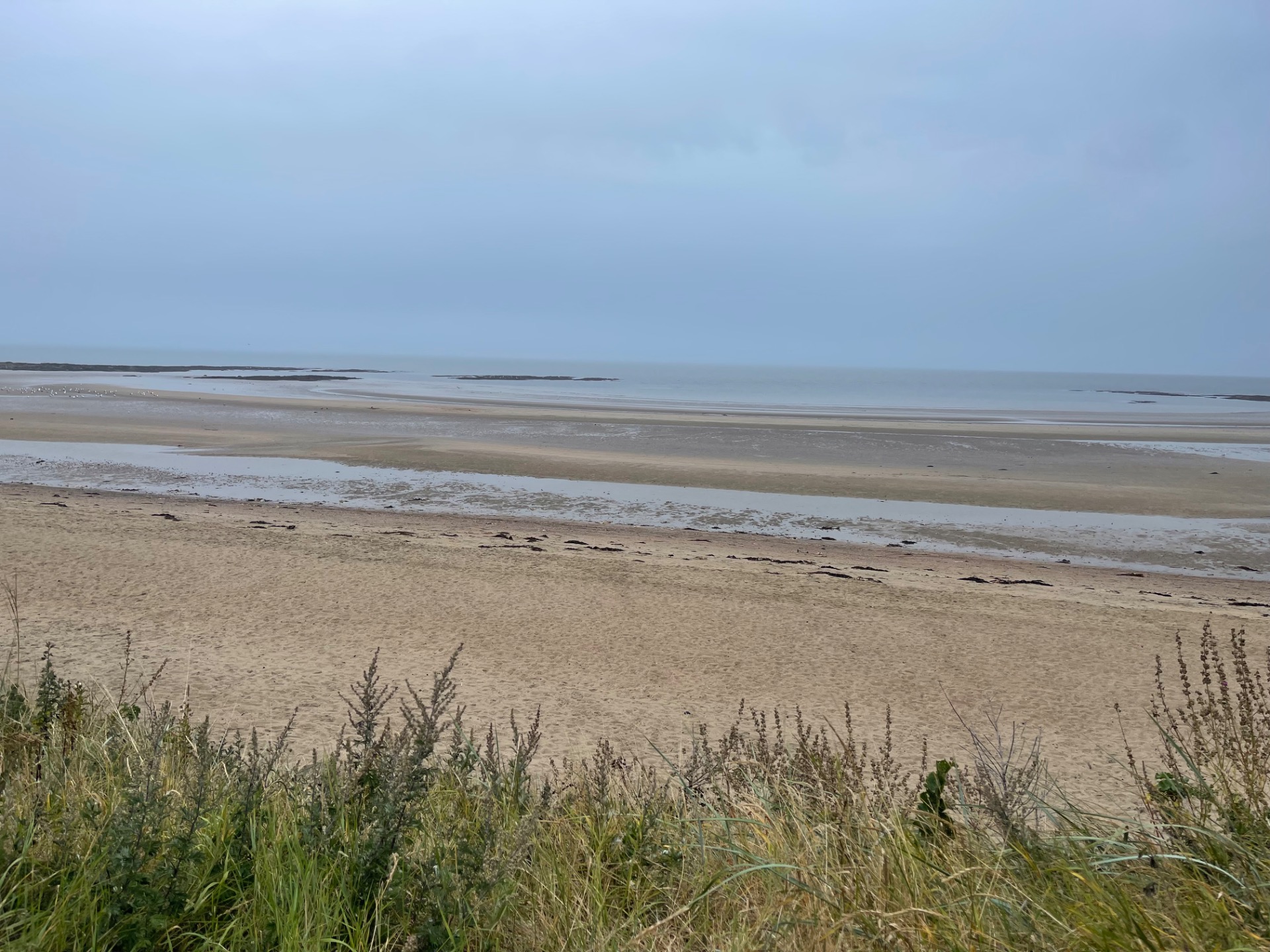 Dune, plage, mer, ciel font partie de ce qui pourrait être une véritable œuvre d’art. Sur la dune, je peux m’imaginer, intégrée au tableau réalisé, à côté de la tente, avec différents tons de beige, de gris et de vert.