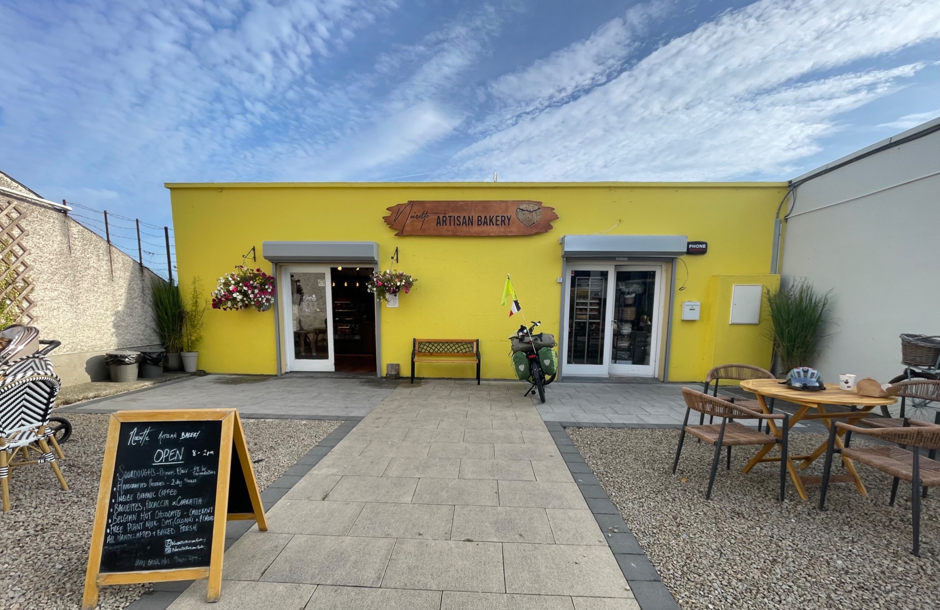 À Rush, au niveau de la rue principale, celle qui partage le village en deux et mène au port, une agréable terrasse attire les habitants. L’enseigne Noisette Artisan Bakeri indique clairement la fonction de la boutique. En ce début de matinée de dimanche, hommes et femmes de tous âges, seuls, en famille avec ou sans enfants dégustent café, thé et viennoiseries.