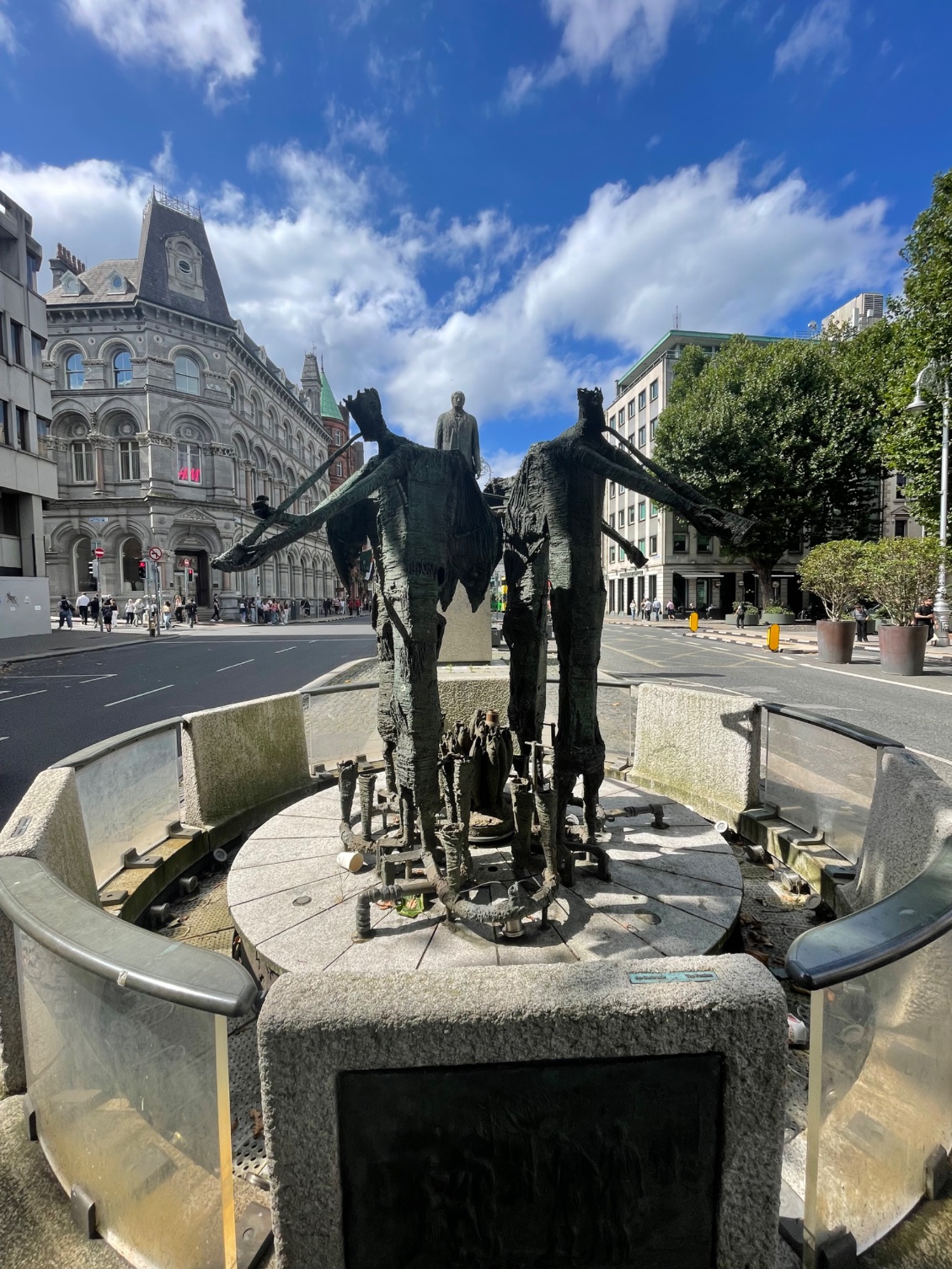 La sculpture reflète parfaitement l’ambiance et l’atmosphère de la ville. Je m’assieds à côté d’elles et pense à ma journée. J’ai vu si peu de Dublin, si peu de Belfast. Mais j’ai voyagé dans mes souvenirs.