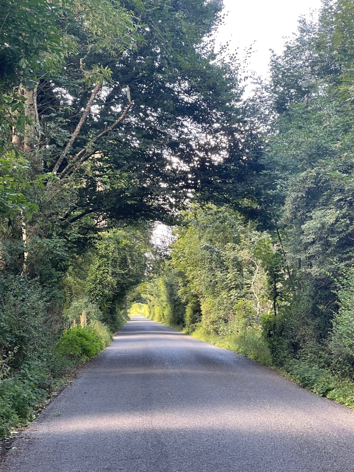 À plusieurs reprises, les arbres forment un passage naturel sur la route. Leurs branches se rejoignent au sommet pour créer une voûte. C’est toujours un bonheur pour moi de franchir ces corridors naturels.