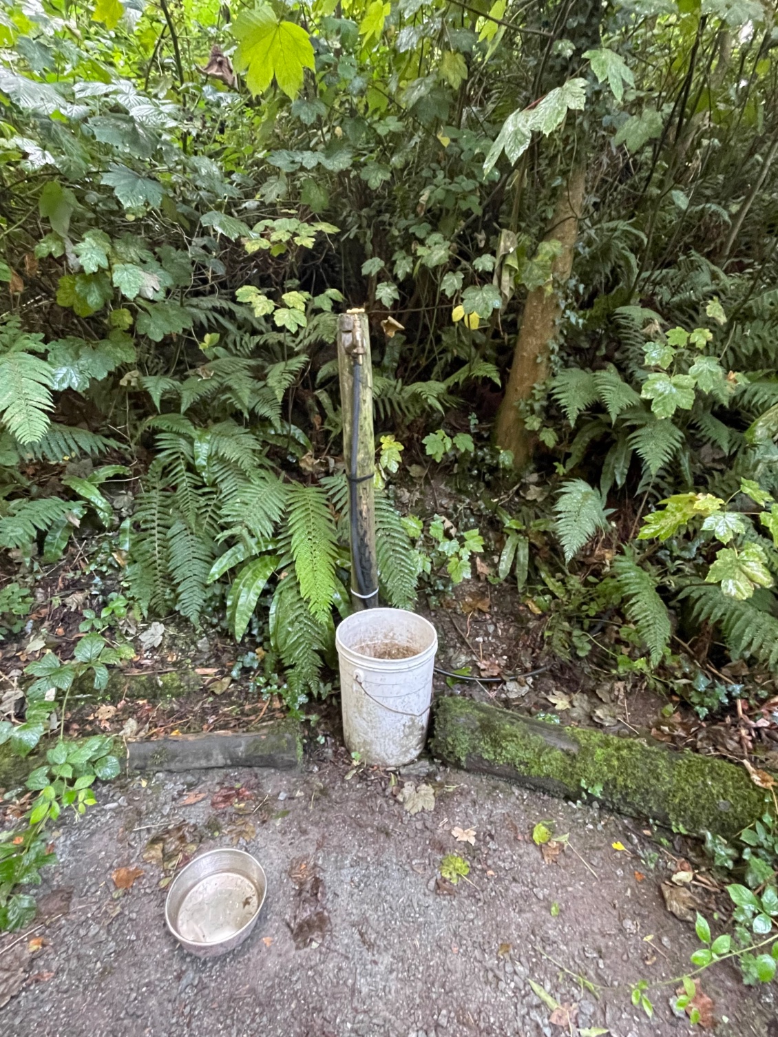 Un point d’eau a été prévu. Il s’agit d’un simple robinet accroché à un piquet en bordure d’un chemin. Je prends ainsi une douche à l’eau glacée pensant que je suis vraiment esseulée dans cette forêt. Je verrai un peu plus tard que ce n’était pas le cas !