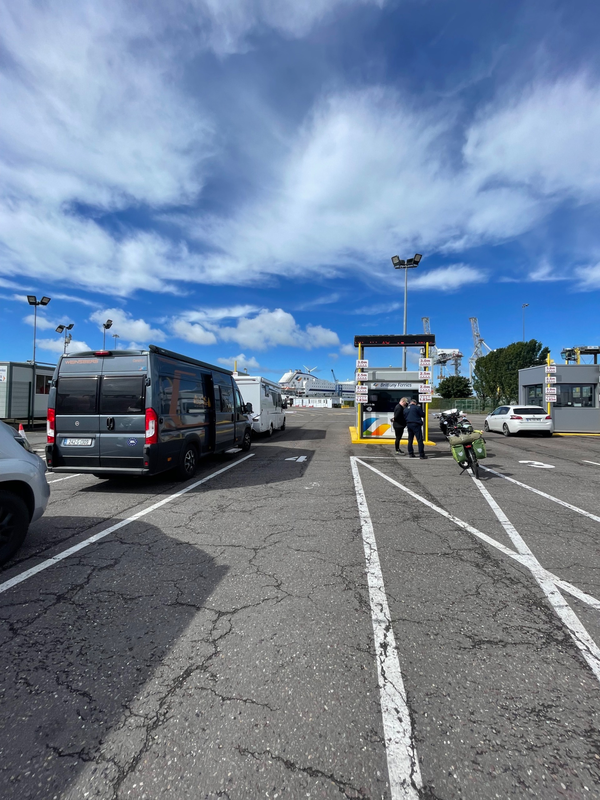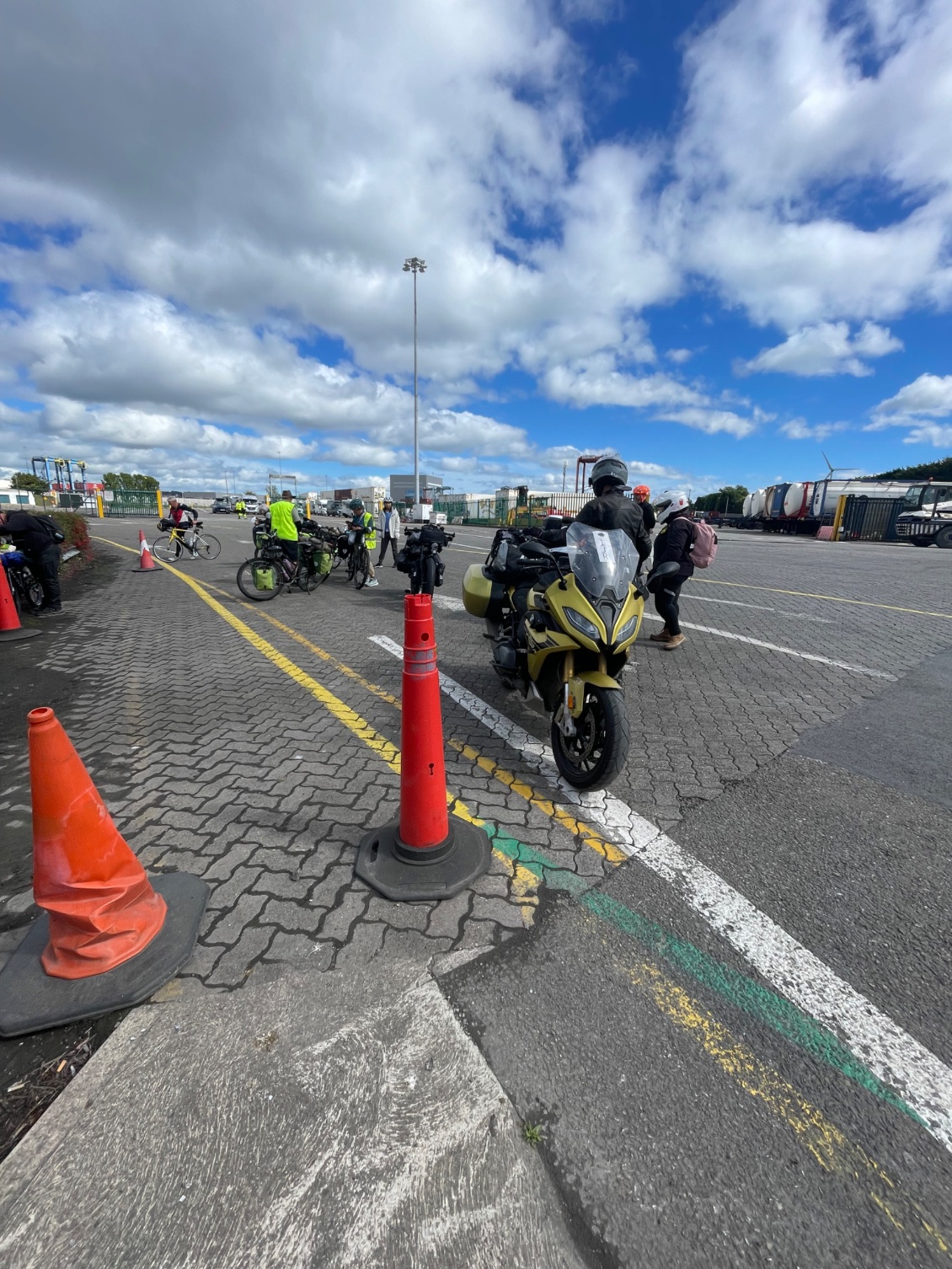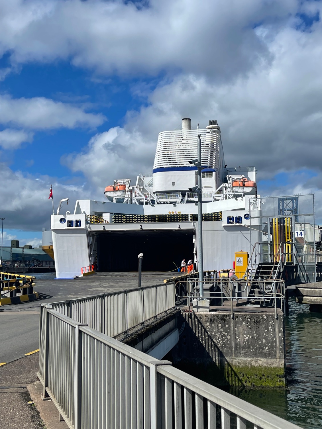 Je parcours en sens inverse le chemin emprunté dimanche, puis je poursuis sur la R610 en empruntant le trottoir et le bas-côté de la route suffisamment large et en bon état. Les derniers kilomètres sur la N28 me mettent à l’épreuve. C’est la nationale sur laquelle j’ai circulé à mon arrivée. Ce que j’imaginais être une voie cyclable en bordure des nationales, est tout simplement le bas-côté de ces routes très circulantes. Parfois il est aussi large que la route, mais le souci est qu’il n’a aucune régularité, jusqu’à devenir inexistant, ce qui m’oblige à rouler sur ces routes dangereuses, bruyantes, anxiogènes. Aujourd’hui, cette nationale est utilisée par des véhicules en grand nombre, voitures, camions et même des tracteurs. Elle prend fin à la gare maritime.