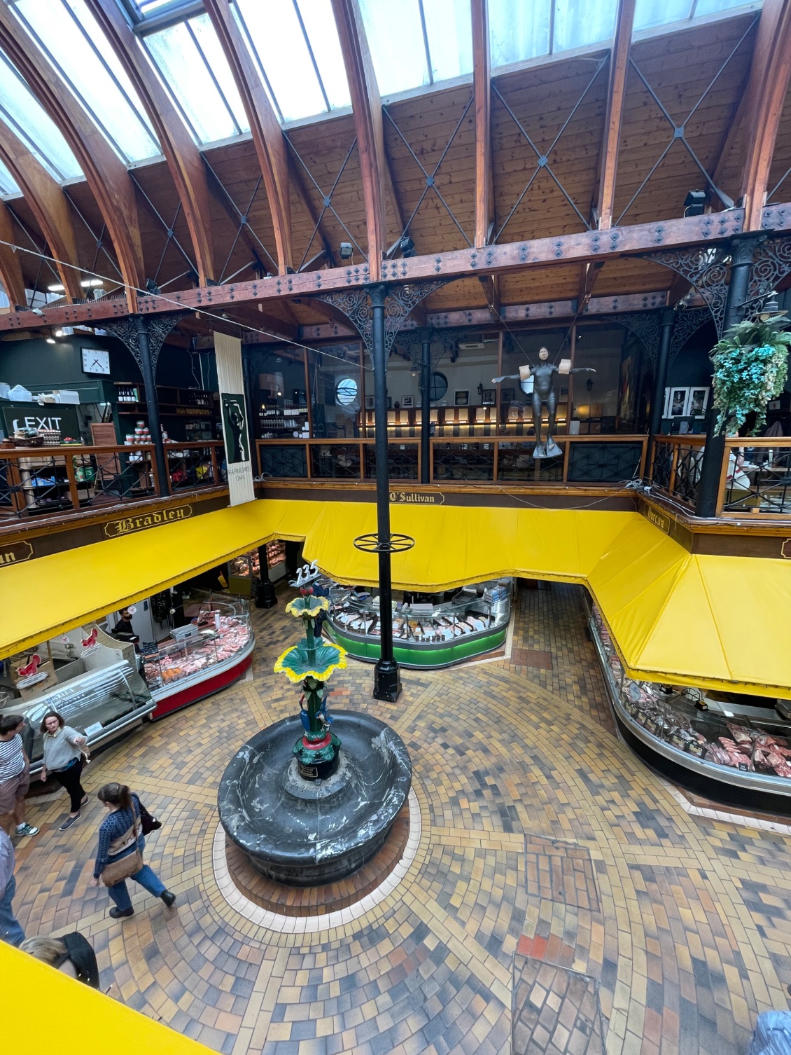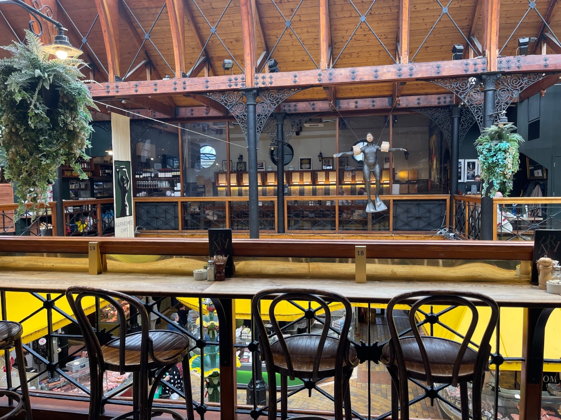 Je me rends directement à L’English Market. À l’étage, le Farmgate Café vient d’ouvrir. Il est à peine huit heures trente. Nous sommes seulement trois clients. Les garçons prennent nos commandes en toute sérénité. L’un d’entre eux, le plus âgé, prend le temps de discuter avec moi et résume : « Ce marché alimentaire est le lieu de prédilection pour trouver les produits locaux dans la ville de Cork. Il a ouvert pour la première fois en 1788. Vous pouvez acheter des aliments traditionnels de Cork tels que le drisheen (boudin) et les tripes. »