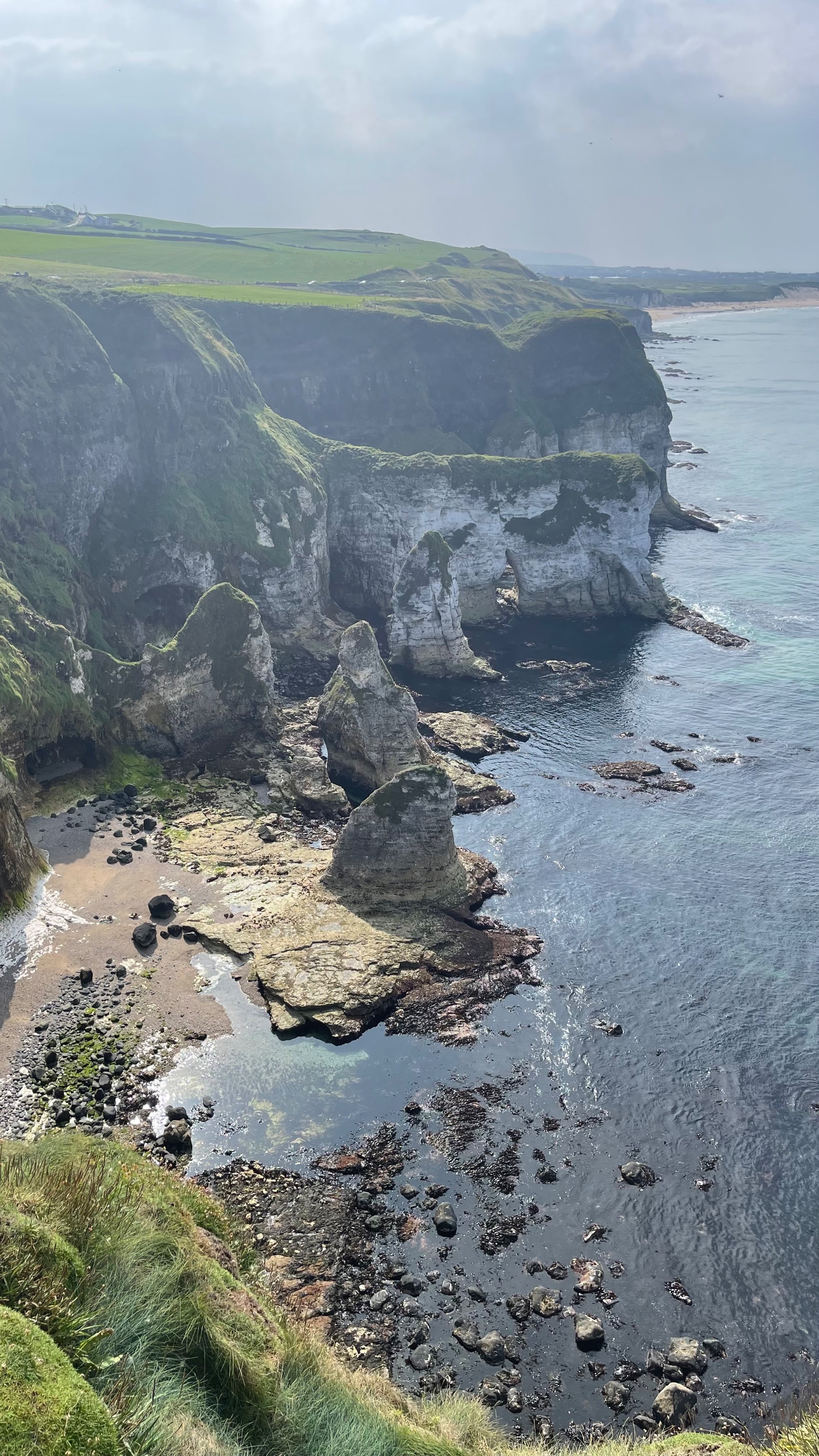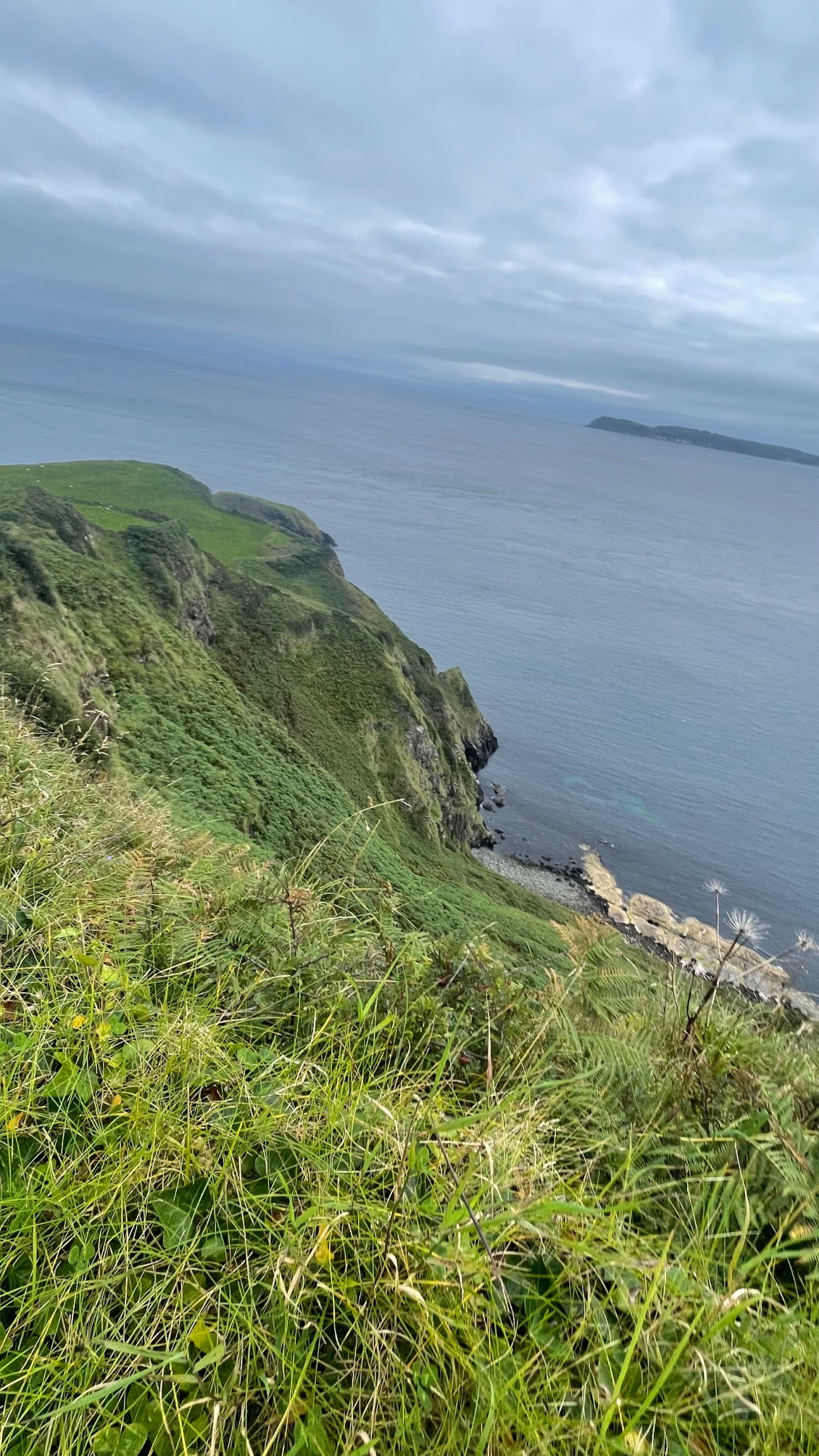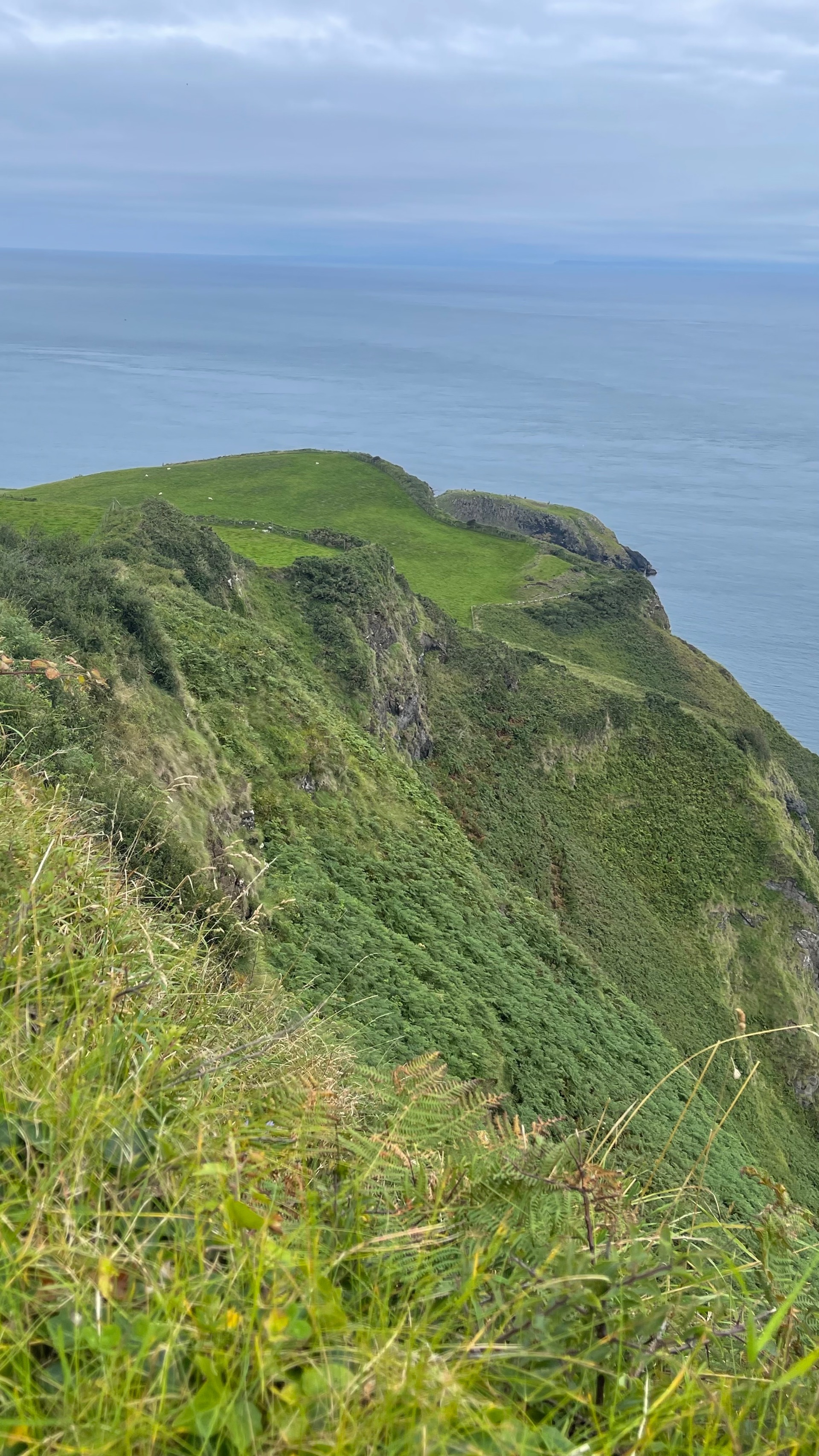 Je longe la côte, soit au niveau de la mer soit en la surplombant. Quelques pentes à pied puis vite descendues et j’arrive à Ballycastle.