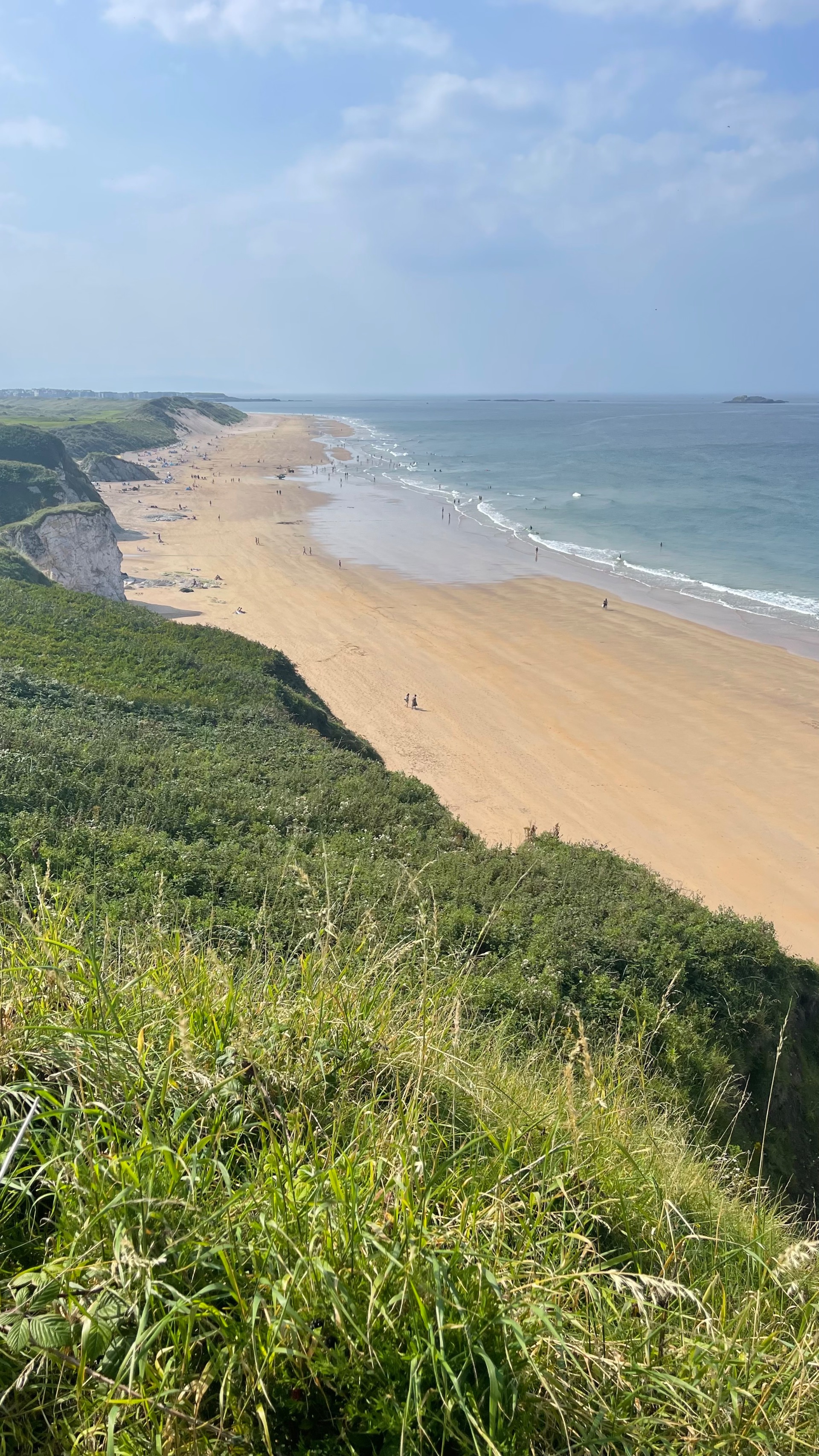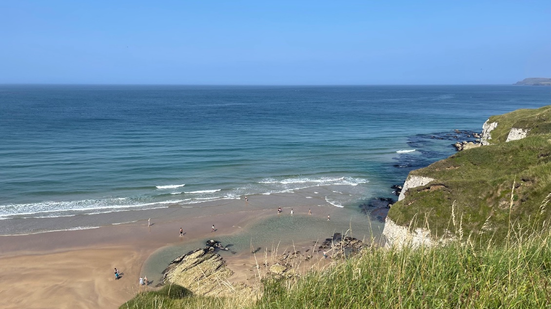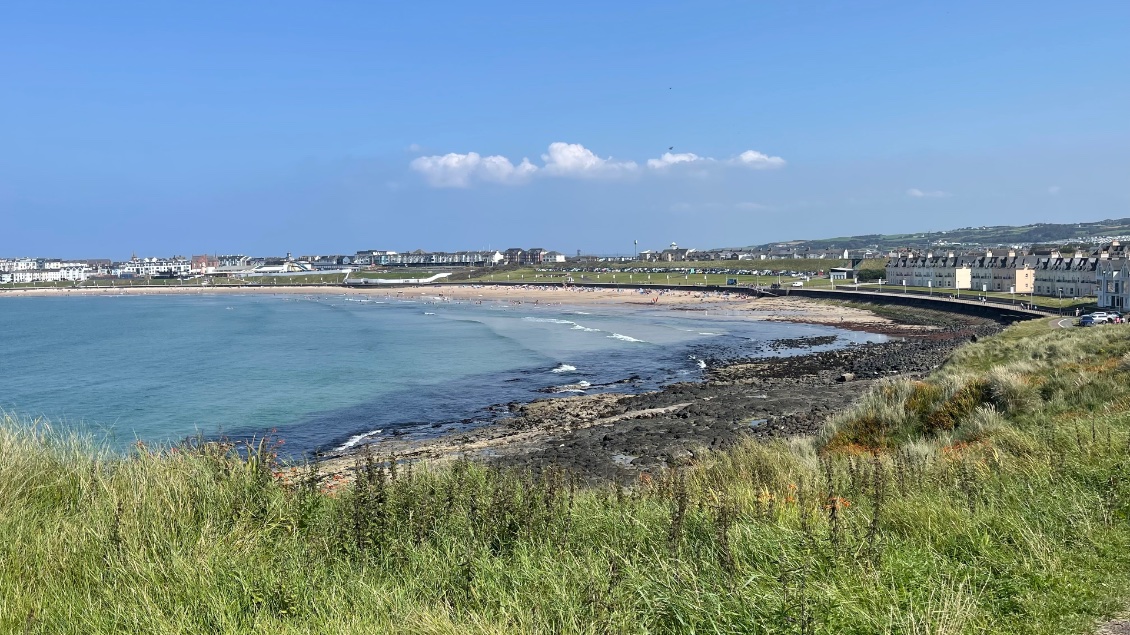 Dès la descente du ferry, à Magilligan-Point j’aperçois une vaste plage. Elle accueille les familles et les promeneurs. Le soleil est là, faisant scintiller le sable doré. La mer d’un bleu turquoise appelle à la baignade.