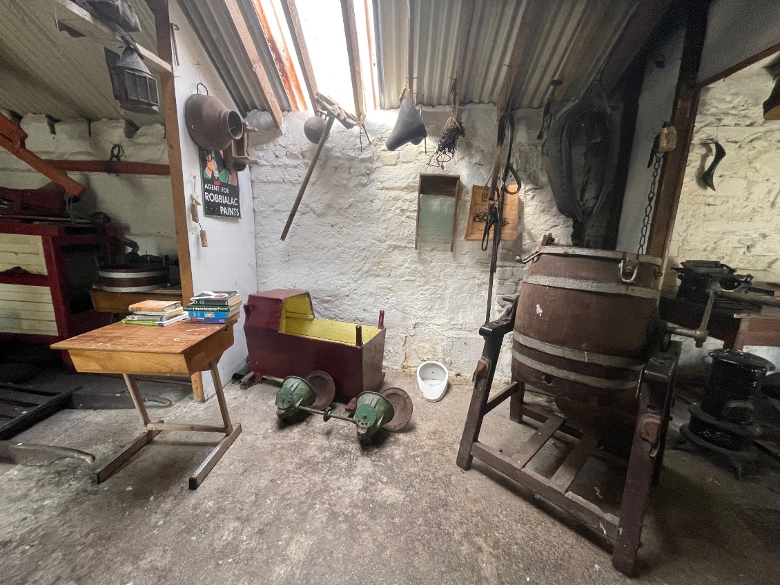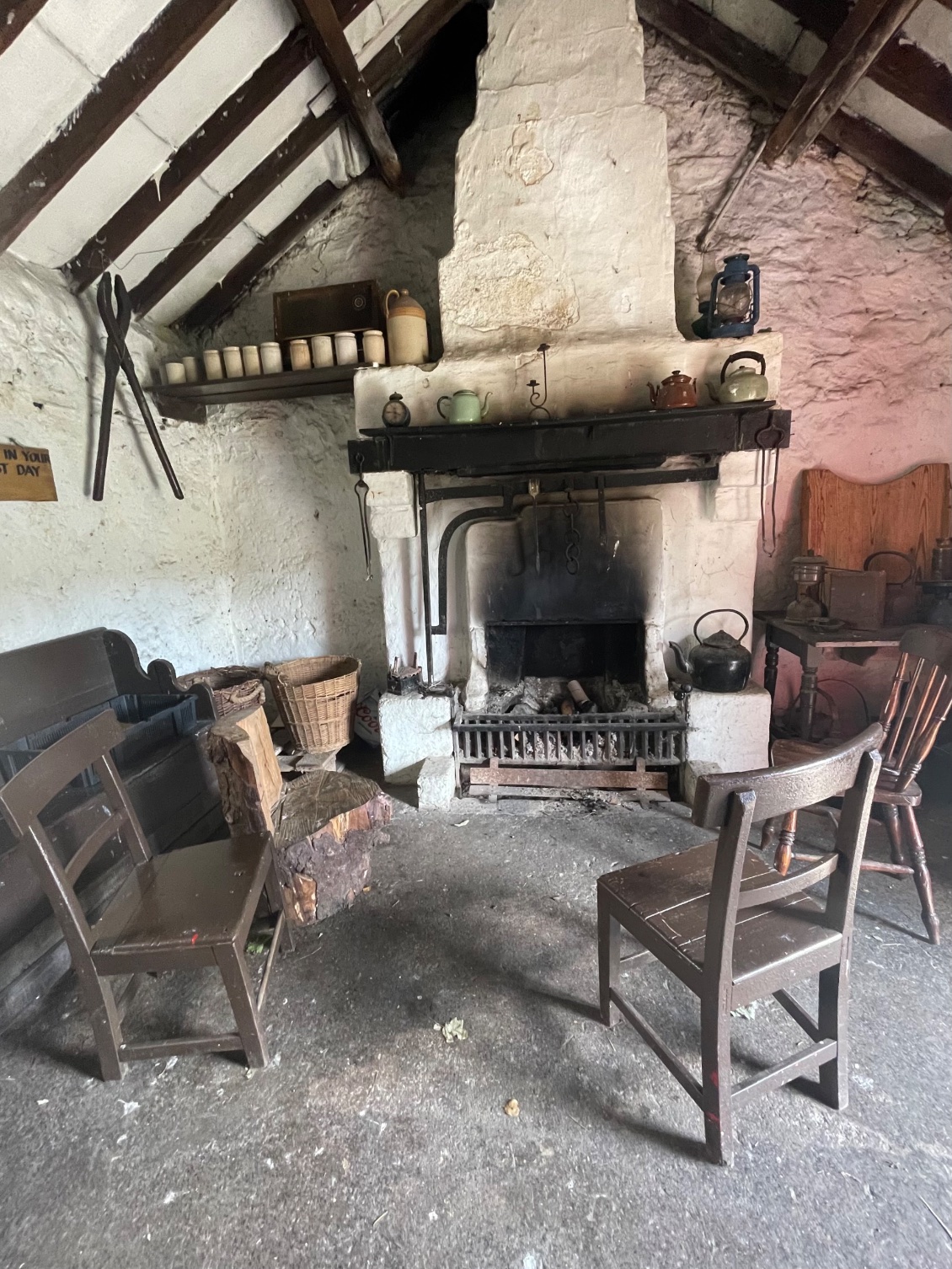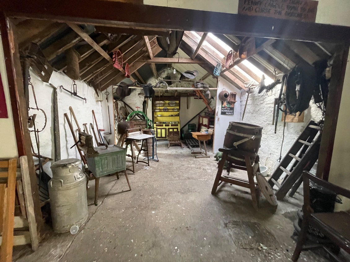 Le cottage-musée, logis traditionnel, abrite une vaste collection d'équipements et d'ustensiles agricoles traditionnels irlandais. J’y trouve également une cheminée et des meubles d'antan que je n’ose pas utiliser de crainte qu’ils ne s’effondrent.