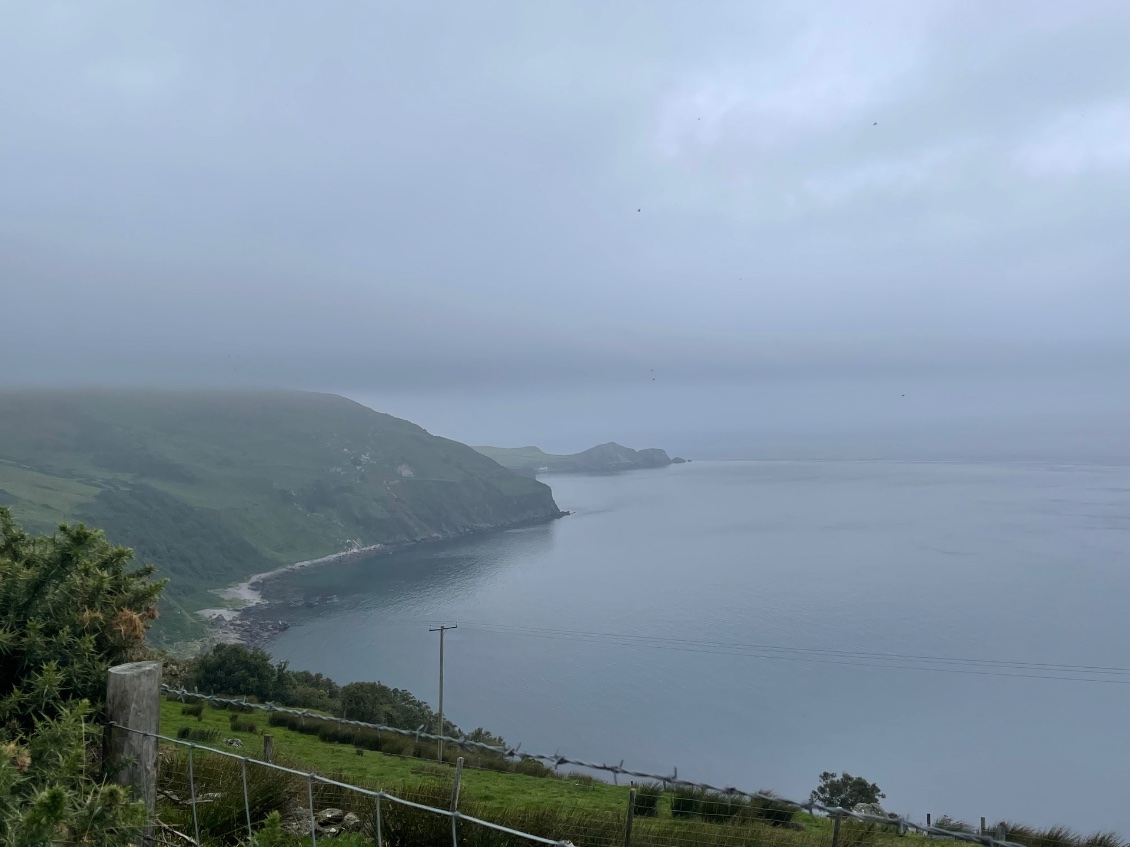 Le brouillard m’isole dans mon coin de camping. J’ai l’impression d’être seule au monde. Pourtant, à quelques mètres, Enea se prépare aussi à partir avec ses trois filles. Elles vivent en Écosse et rendent visite au grand-père paternel vivant en pleine campagne du côté de Limerick, sur la côte ouest de la République d’Irlande.