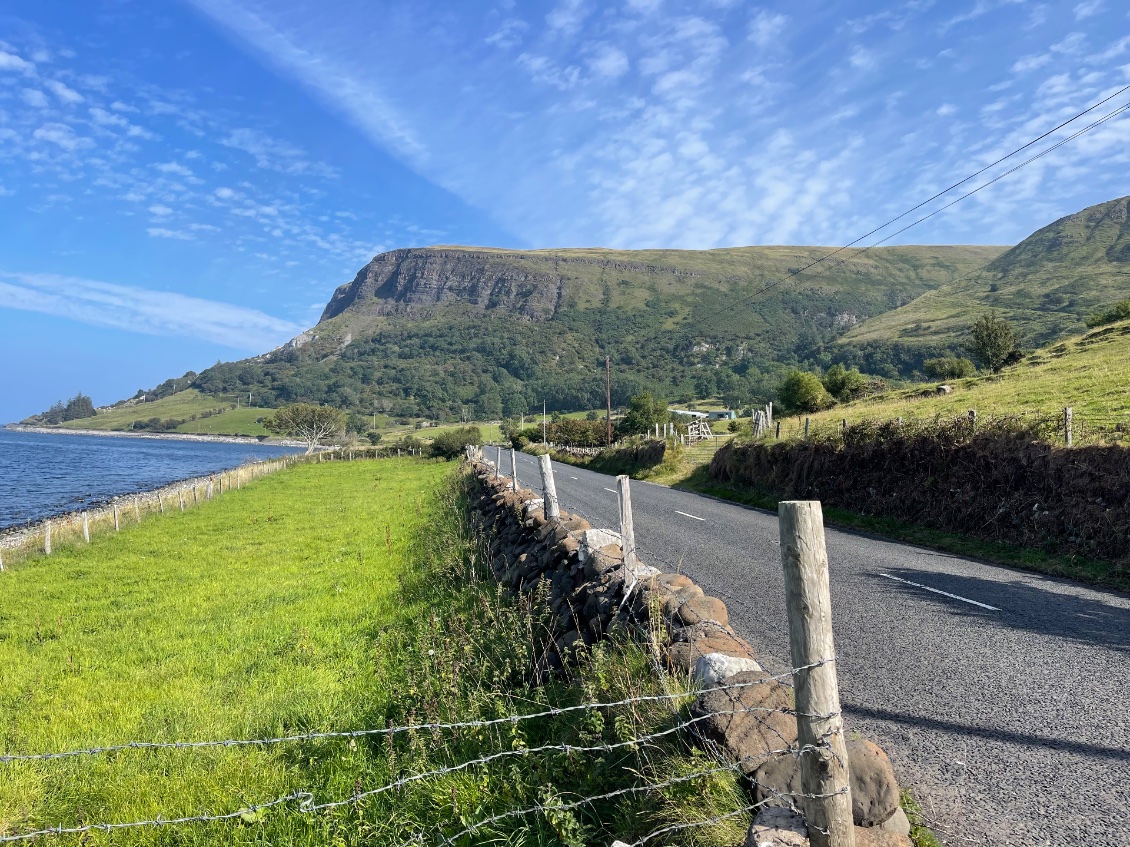 Je vais revenir quelques kilomètres sur mes pas car des dames en vacances à Castlerock m’ont conseillé, photos à l’appui, de passer par les Glens d’Antrim, qui sont tout simplement les montagnes d'Antrim. Elles comprennent neuf montagnes (les glens) qui rayonnent depuis le plateau d'Antrim jusqu'à l’océan.