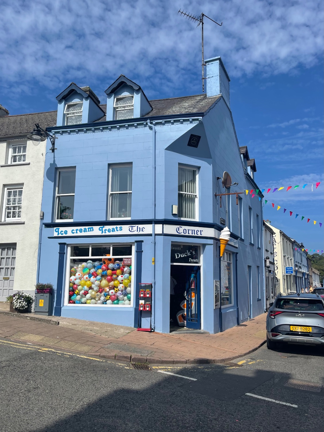 J’arrive à Busmhills. De nombreuses personnes sont assises où elles peuvent, sur des bancs pour les mieux lotis, sur les rebords des jardinières ou des fenêtres pour les autres. Ils dégustent des glaces. Je fais, moi aussi, une halte chez le glacier et savoure cette délicieuse douceur sucrée.