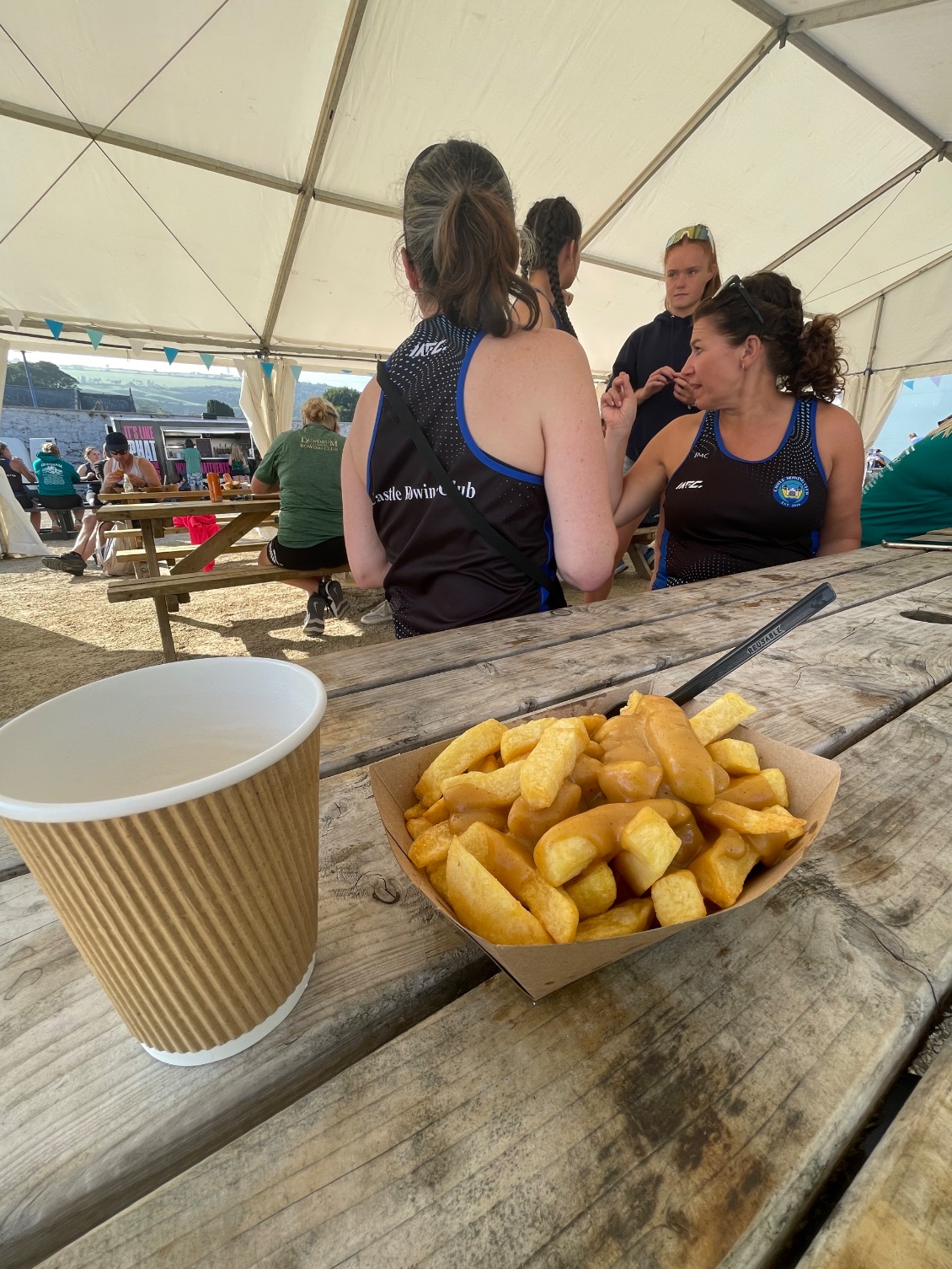 Il est dix-huit heures. À Glenmar, je m’arrête. La fête bat son plein. Je m’achète un en-cas et m’installe sous un chapiteau à une table au milieu des autochtones. Mon voisin m’explique : « C’est la fête de l’aviron qui regroupe des équipes de toute l’Irlande. Ma fille a concouru avec ses amies. »
