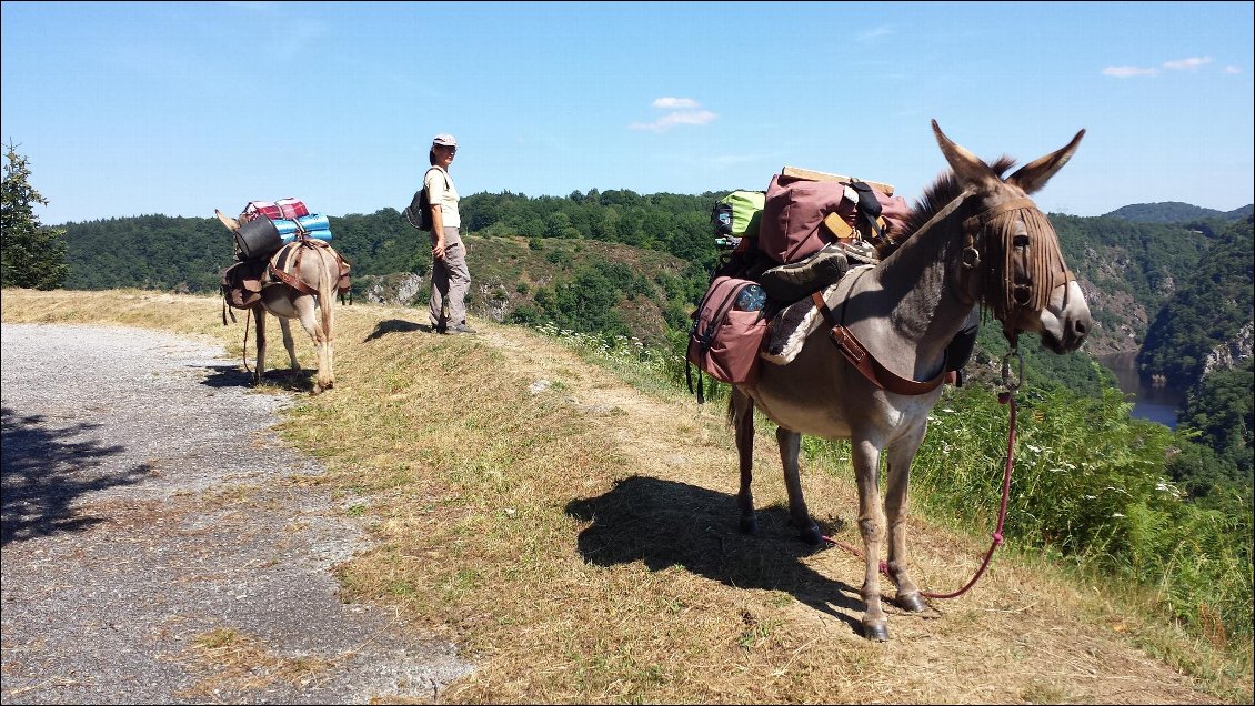 La Dordogne de villages en barrages est donc une randonnée de 150 kms qui ne cesse de descendre et monter pour franchir tous les affluents qui se jettent dans les gorges profondes et boisées de la Dordogne:la Diège, la Triouzoune,la Luzège,le Doustre et nombreux autres petits torrents dévalant les pentes sauvages. Nous avons dû, avec les ânesses, utiliser plusieurs déviations par les plateaux, certains cours d'eau étant infranchissables pour elles à cause de passerelles trop étroites ou à claire-voie, doublant parfois le nombre de kilomètres de l'étape.