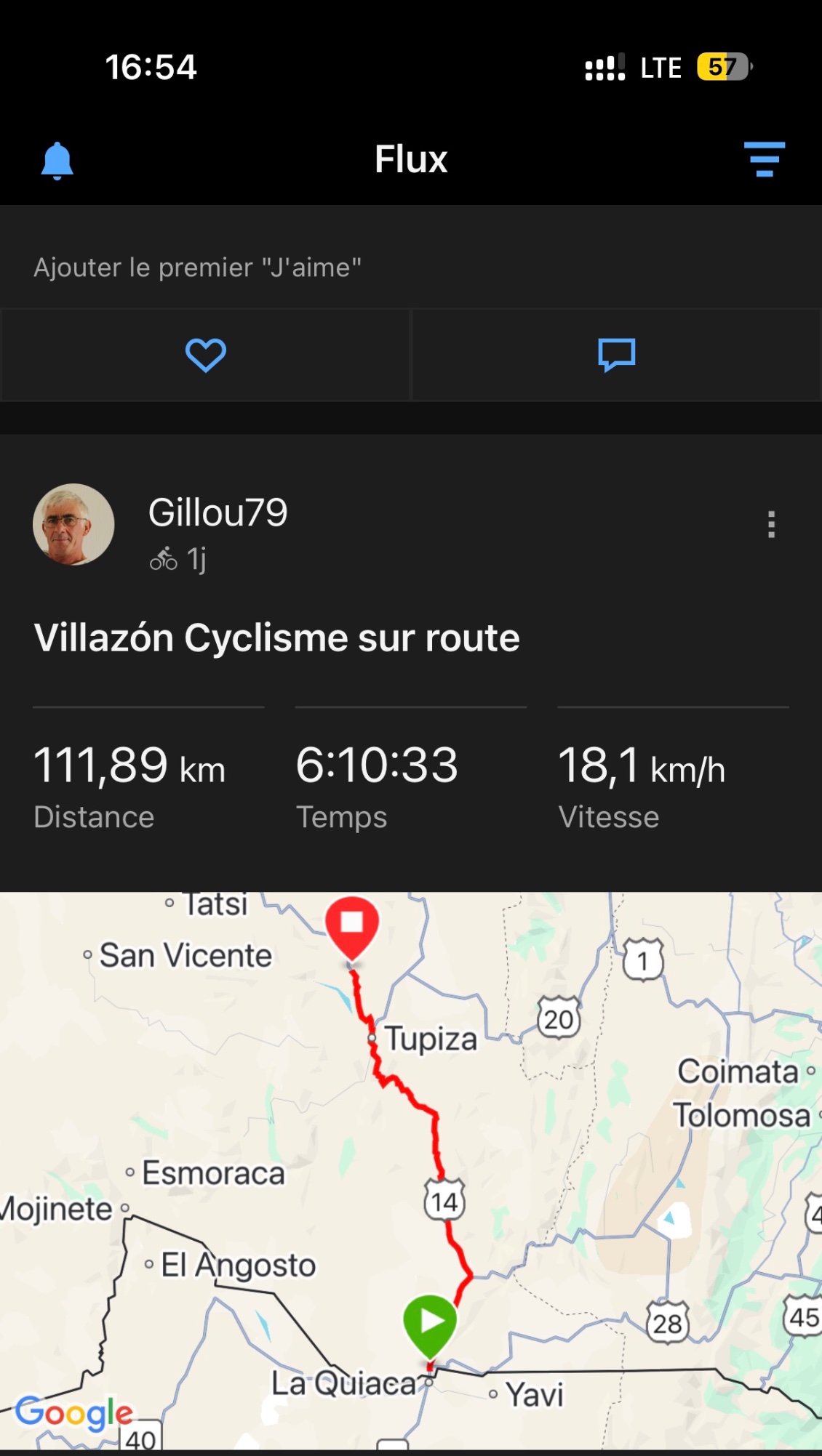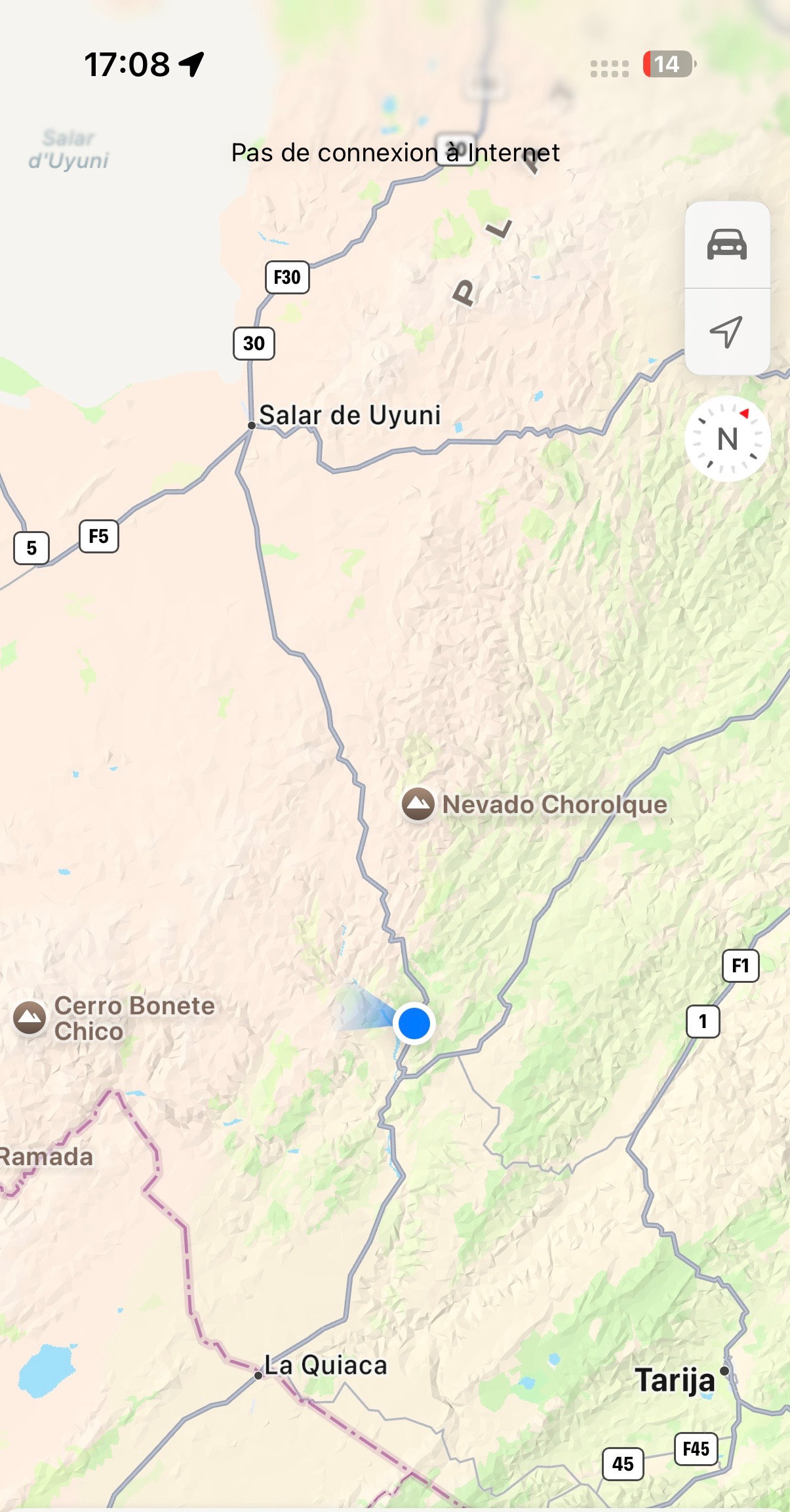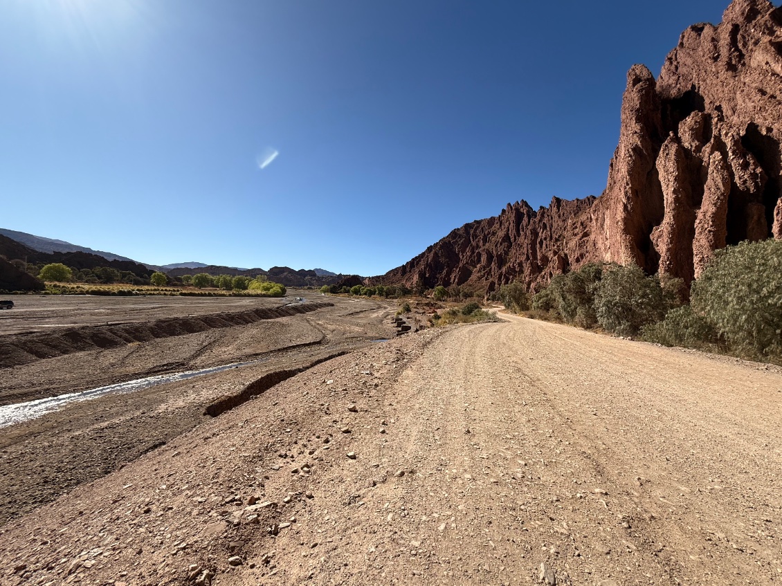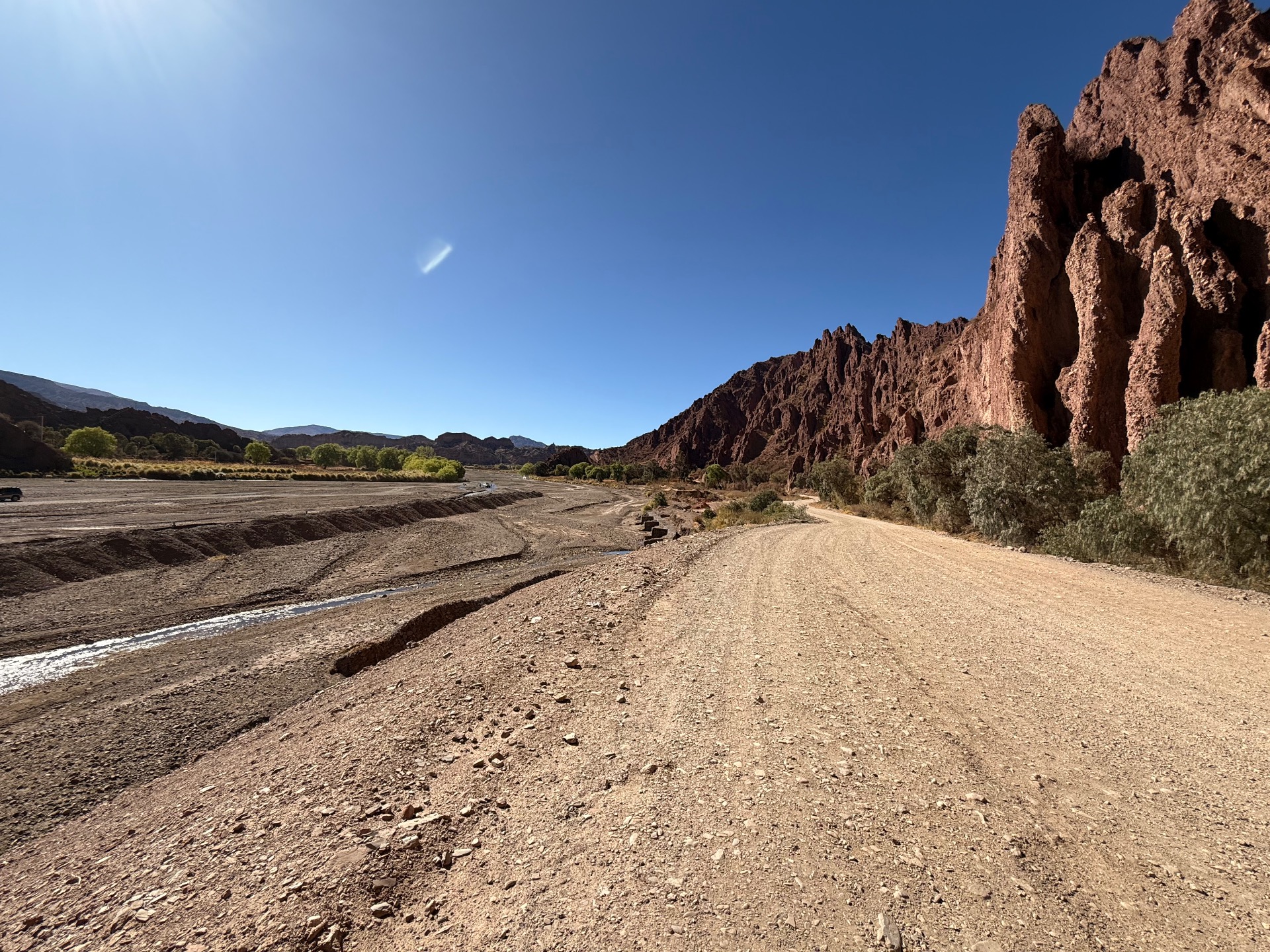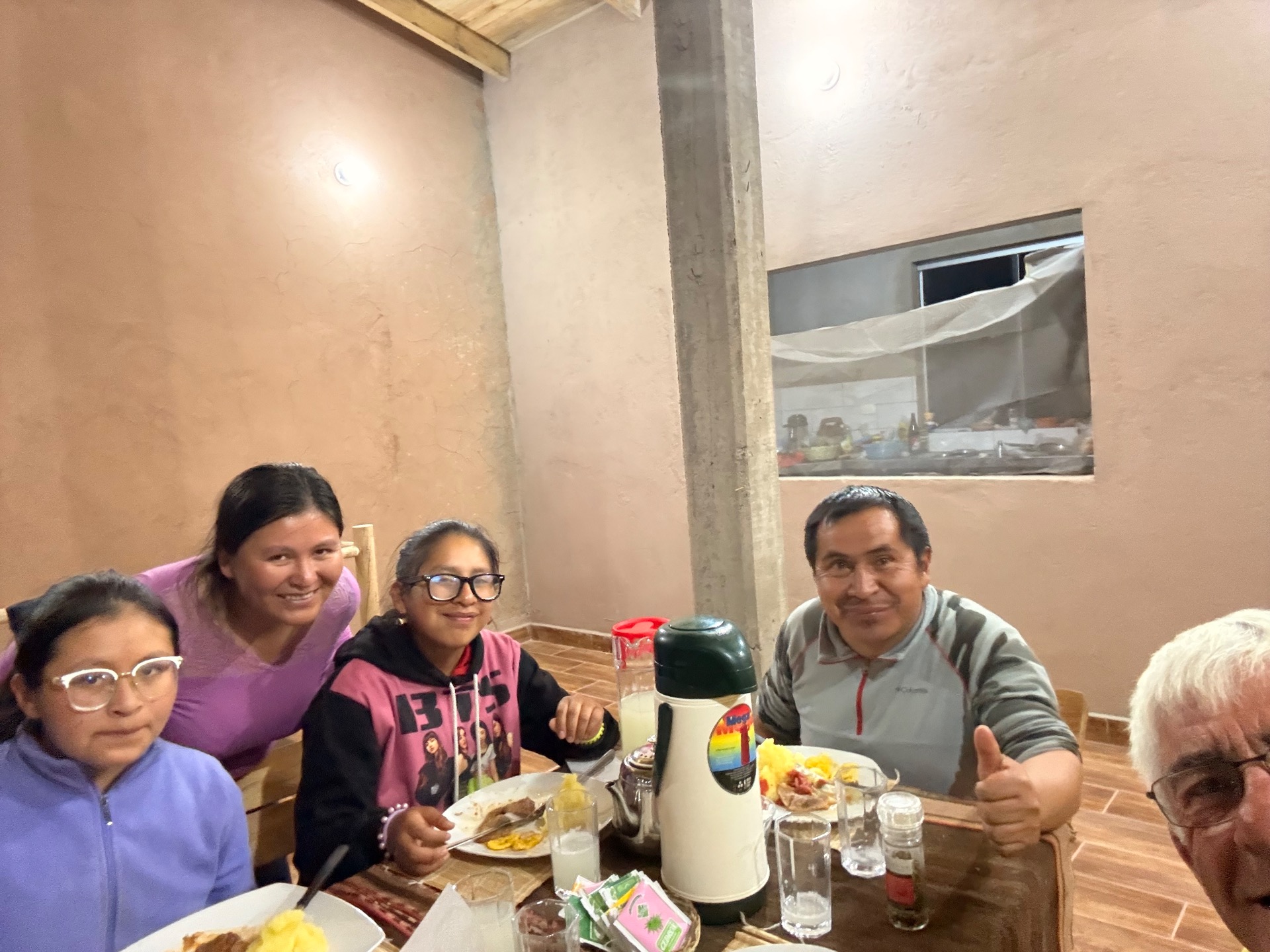 Aujourd’hui j’ai roulé mes premiers kilomètres en Bolivie, de Villazón jusqu’à Tupiza et un peu après. Les paysages ont déjà changé, l’air aussi, et moi je pédalais avec le petit frisson de la découverte d’un nouveau pays. Après 110 kms environ, j’ai atteint mon hébergement, et là, belle surprise : un couple avec leurs enfants est en train d’y construire un hôtel déjà bien avancé. J’ai eu la chance d’y être accueilli comme l’un de leurs premiers hôtes, dans une chambre simple mais incroyablement reposante. Et pour couronner le tout, ils m’ont invité à partager leur dîner en famille. Une arrivée qui m’a réchauffé le cœur et donné envie de continuer cette route bolivienne avec le sourire
