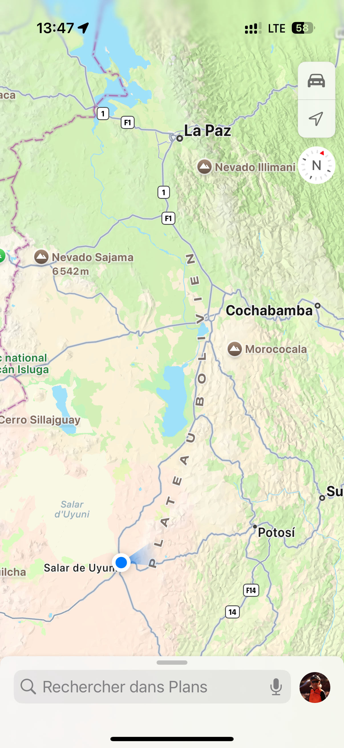Aujourd’hui en quittant Atucha pour rejoindre Uyuni, j’ai vraiment senti que je changeais de décor. Le paysage devient de plus en plus aride, presque désertique, et je croise désormais plus de lamas que d’arbres ! On sent que je rentre dans un “salar mood” : les grands espaces blancs et secs se profilent, et l’air a ce parfum de bout du monde. Bref, je pédale en plein décor de carte postale, version sauvage. 🚴♂️🦙✨